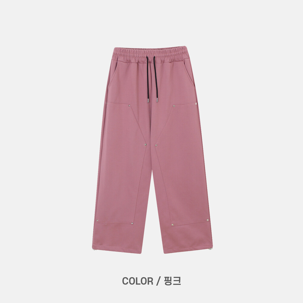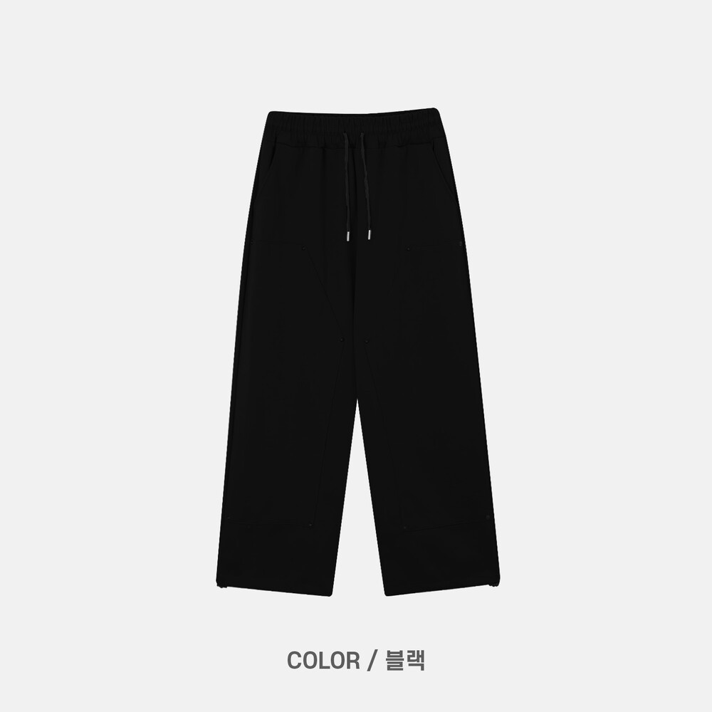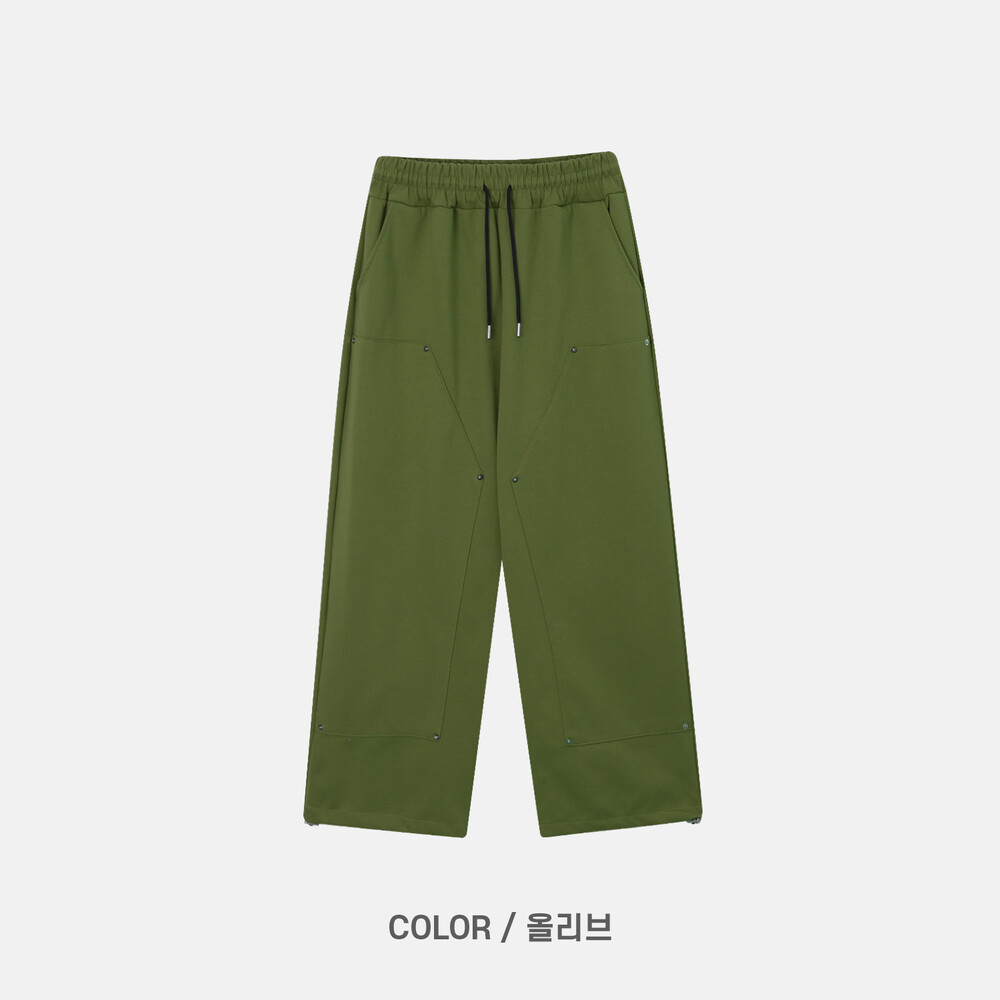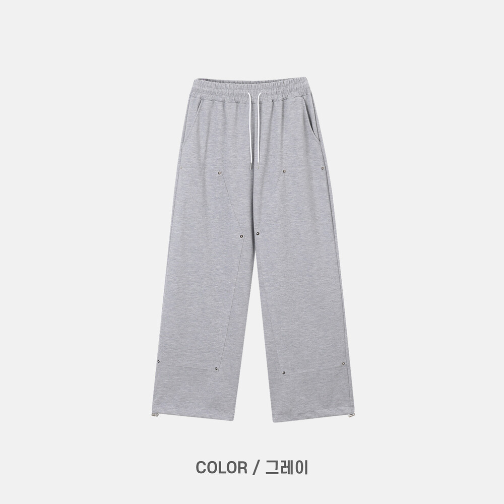깔끔한 스웻팬츠 무드에 더블니 디테일이 들어가 조금 더 트렌디한 디자인입니다