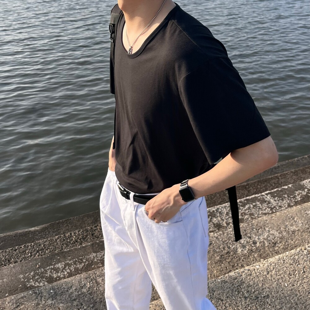 스판 퍼펙트 U넥 티셔츠 (2color)