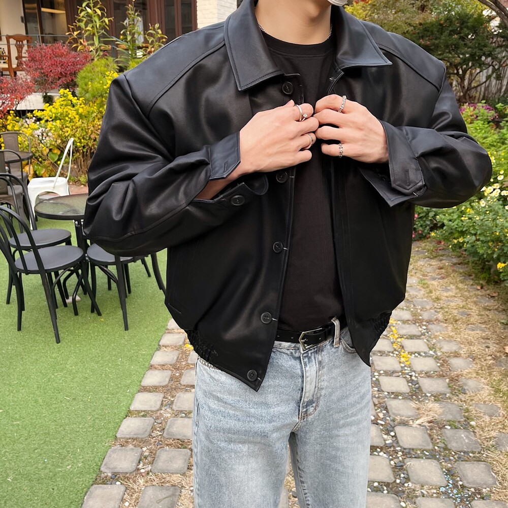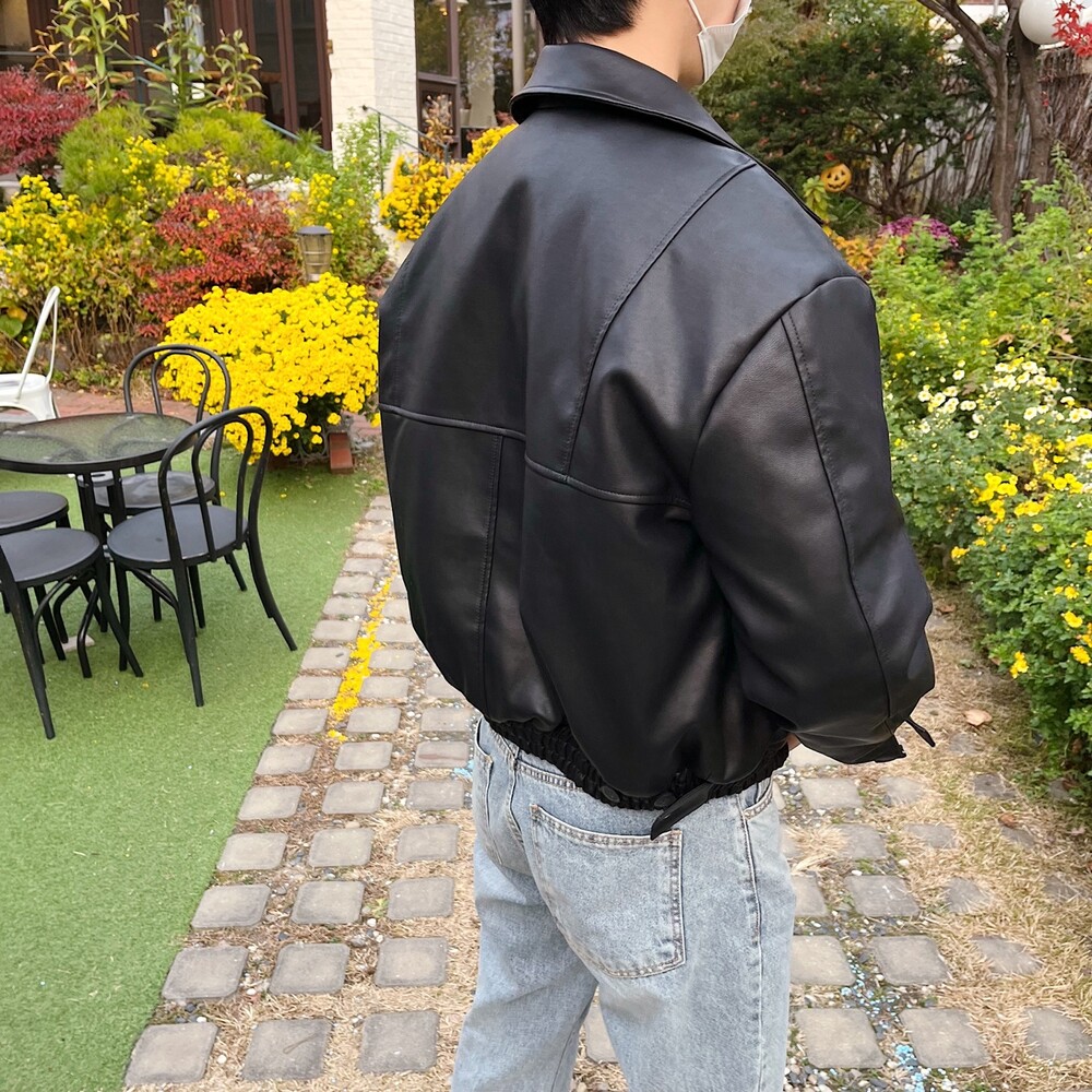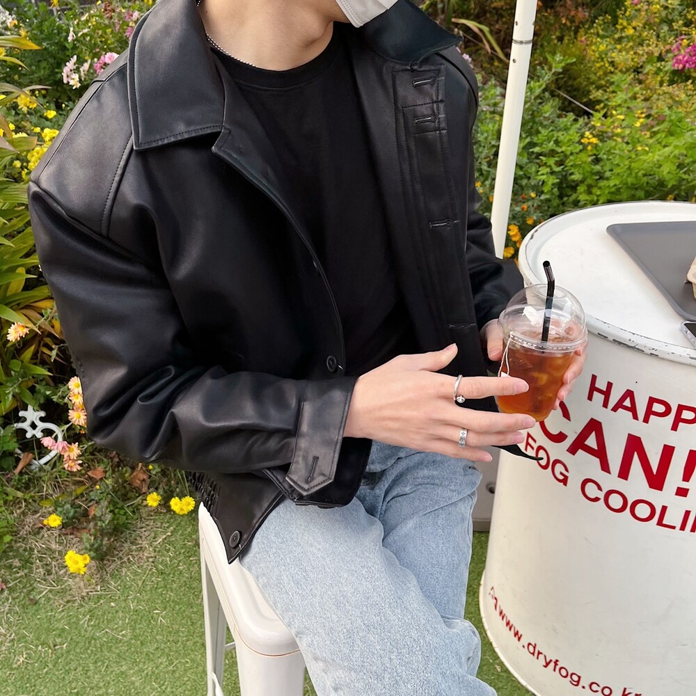 크롭 레더 자켓
