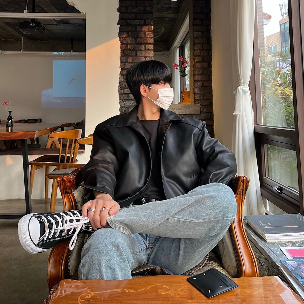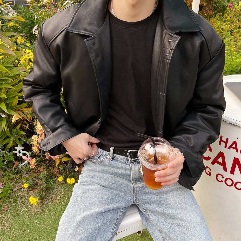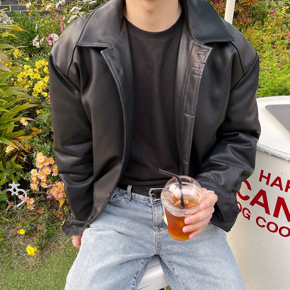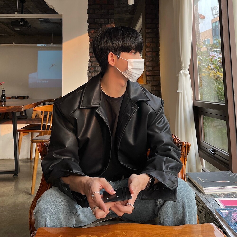 크롭 레더 자켓