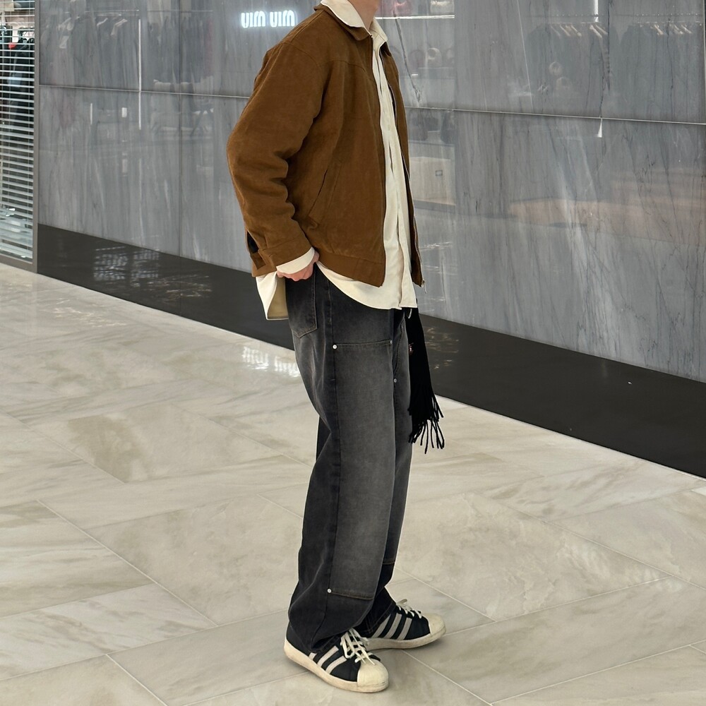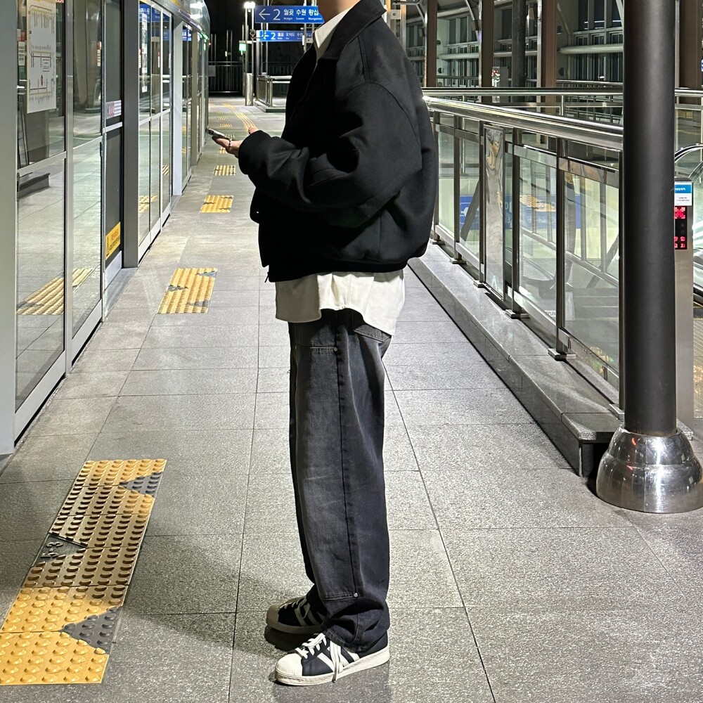 슬레이브 더블니 세미와이드 팬츠