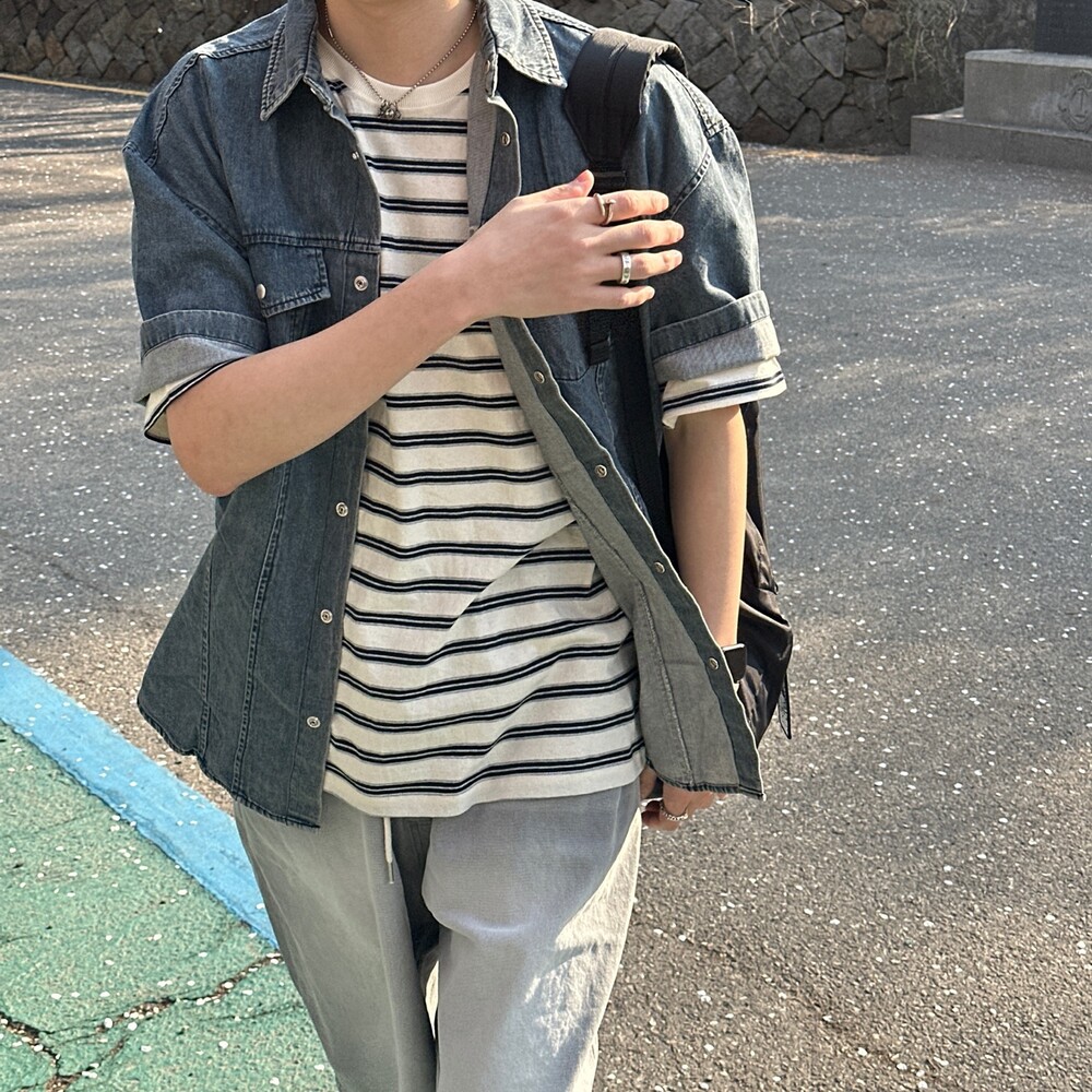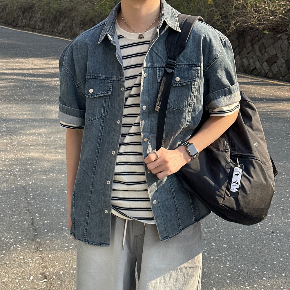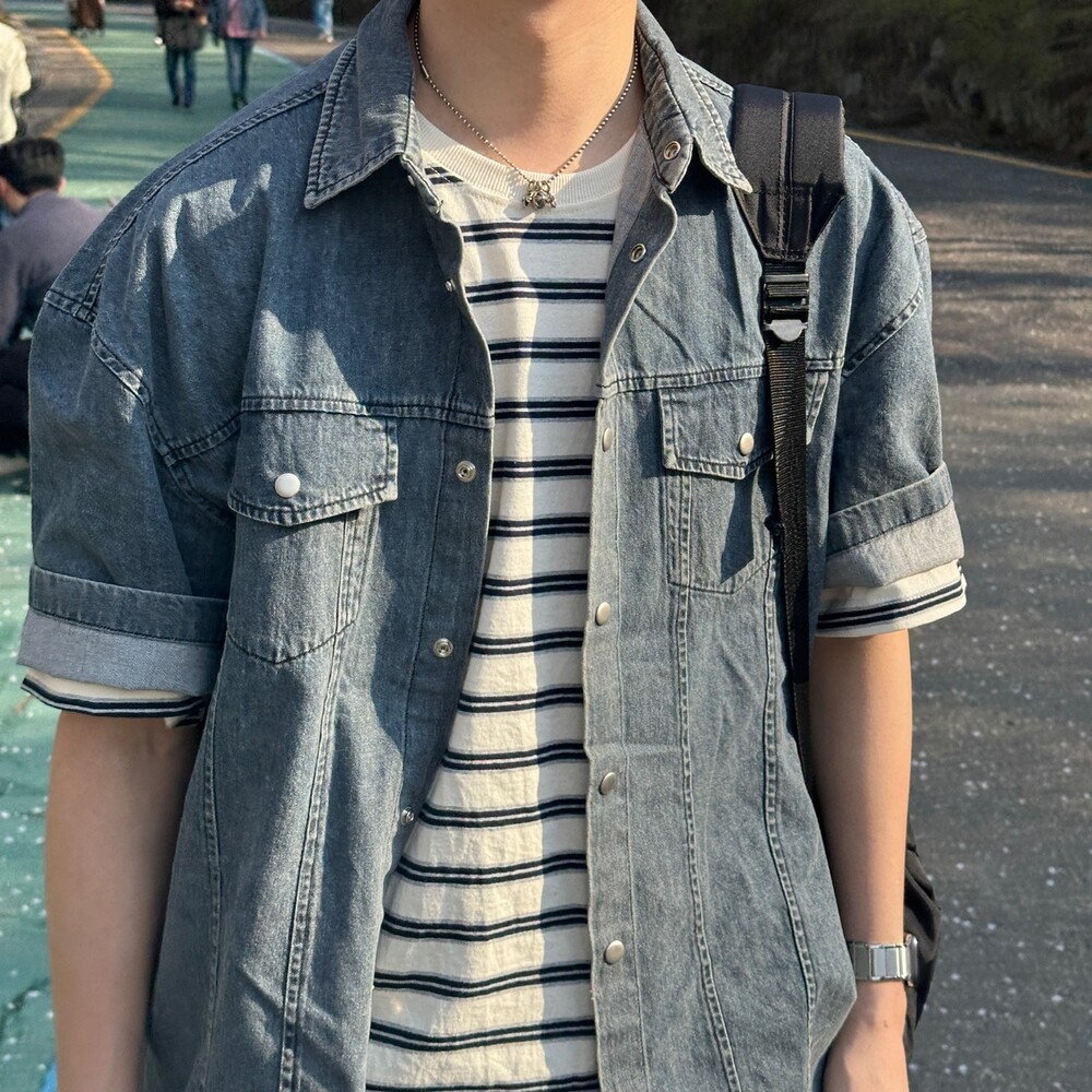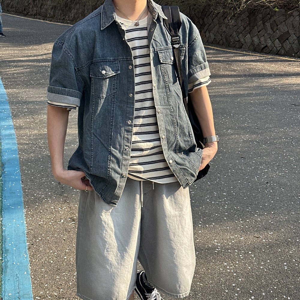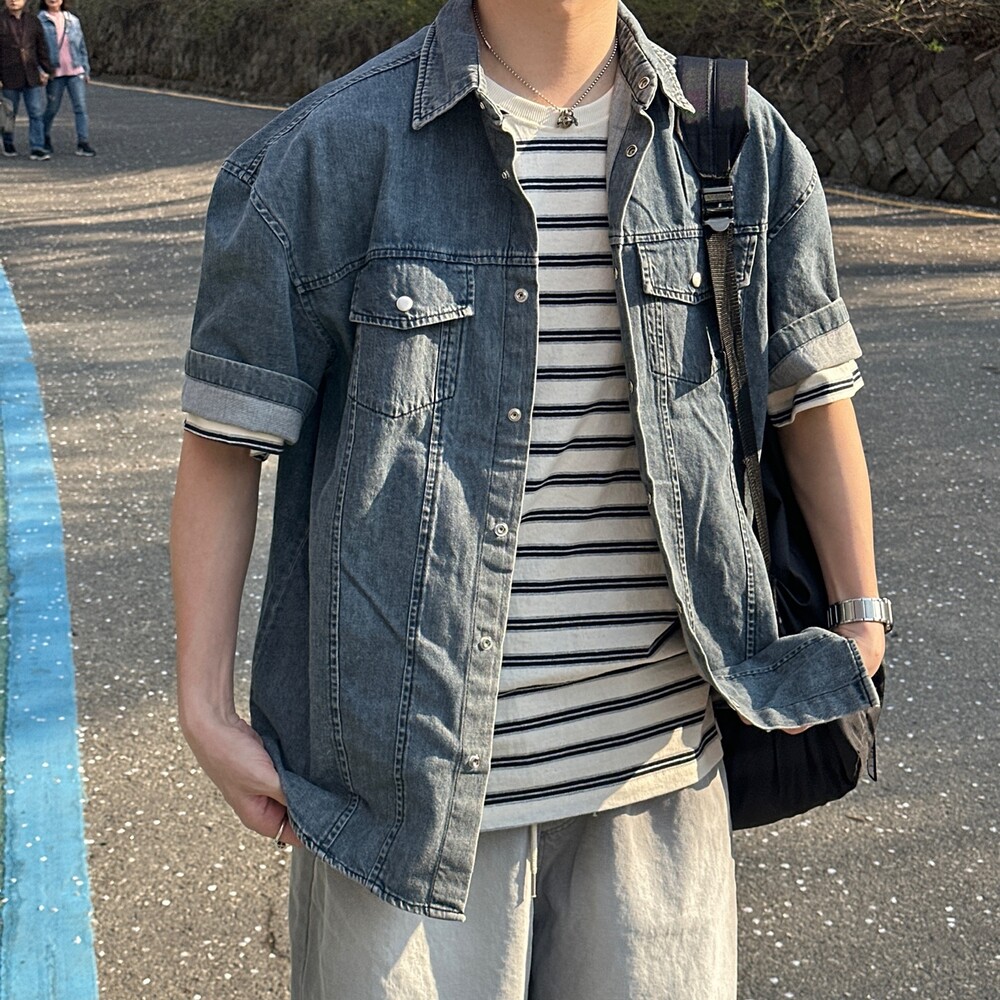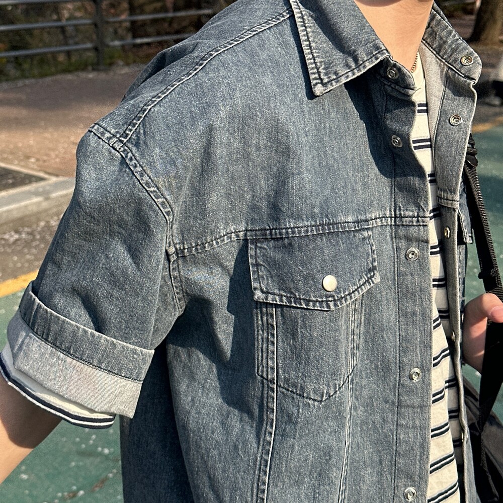 빈 반팔 데님셔츠 (2color)