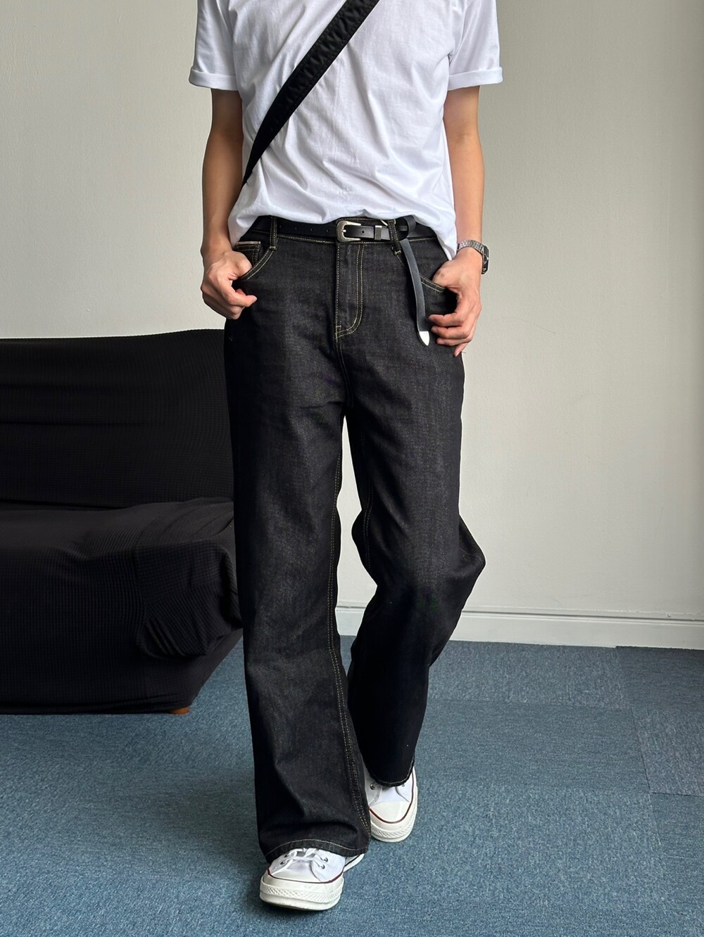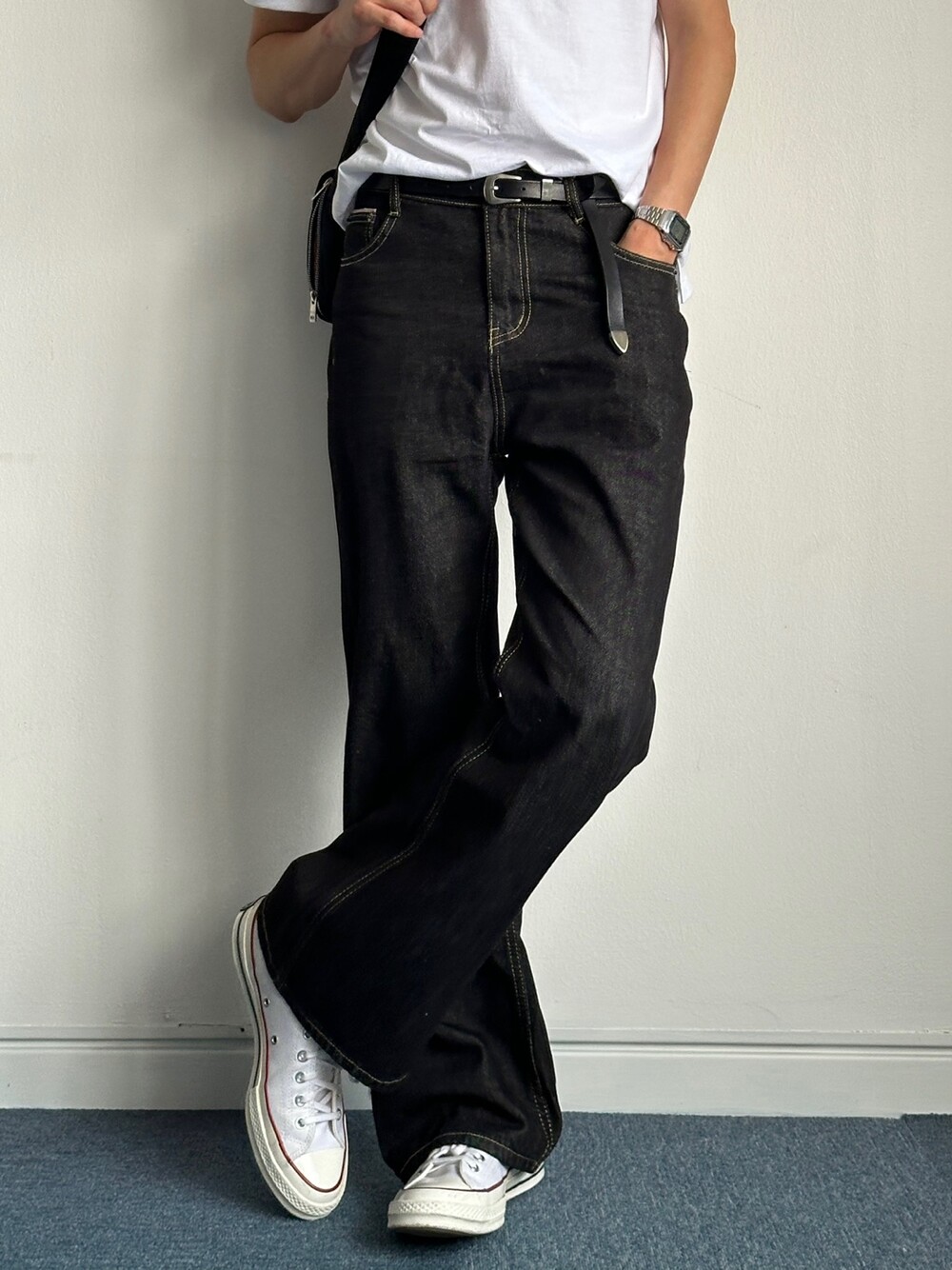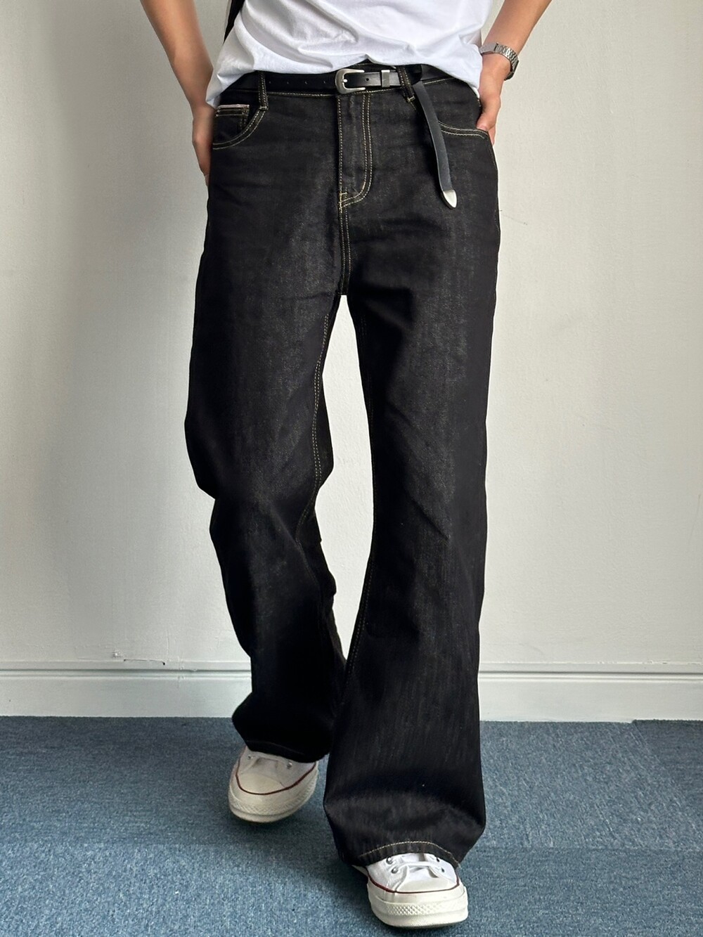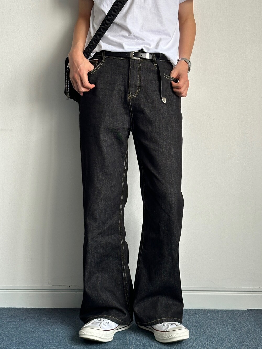 세미한 부츠컷 라인을 가진 생지팬츠입니다 !