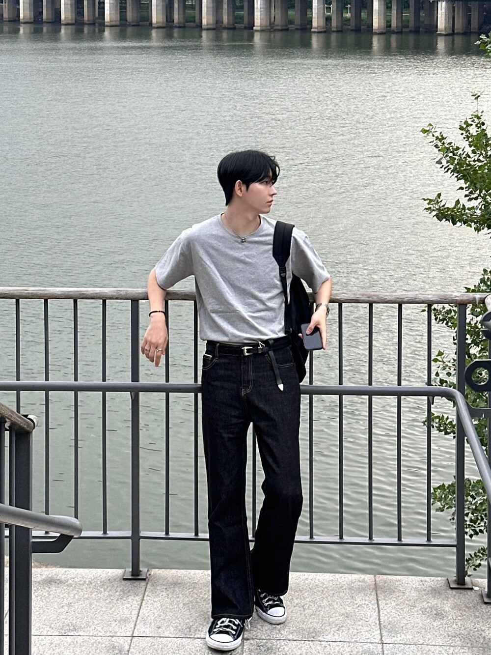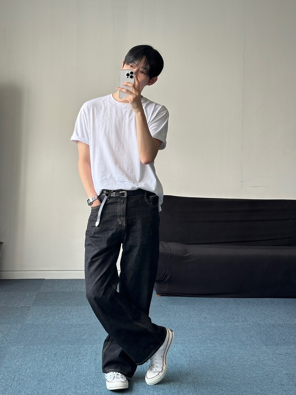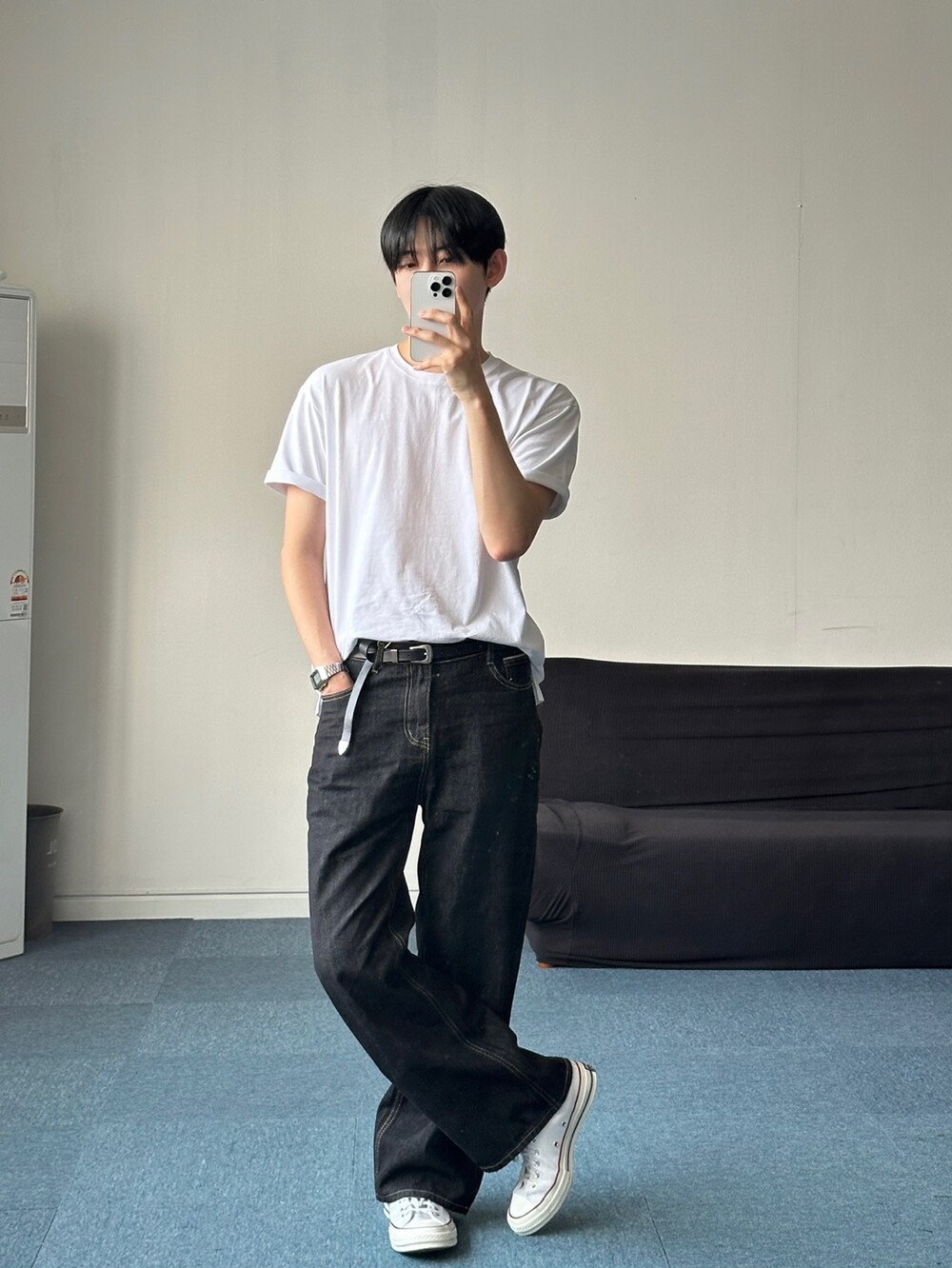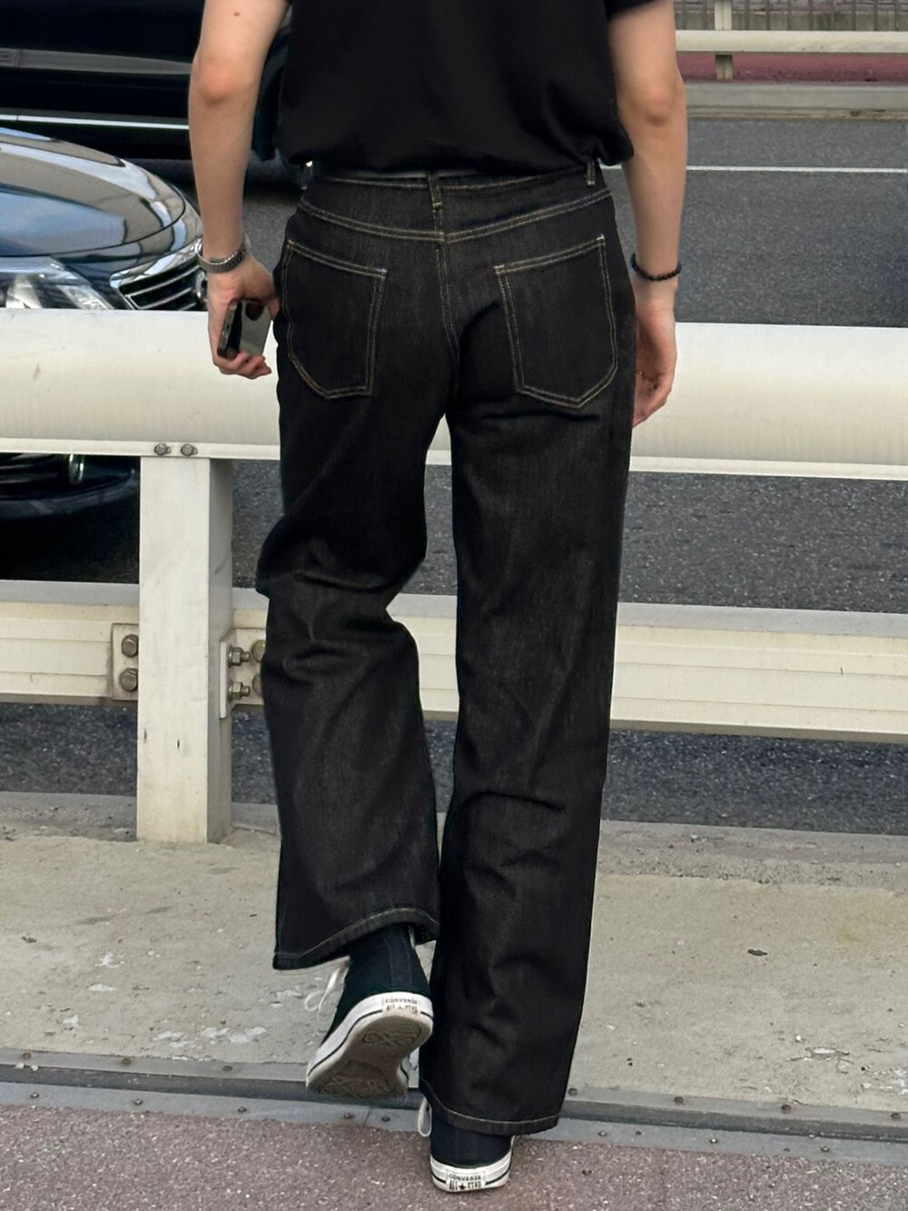 세미한 부츠컷 라인을 가진 생지팬츠입니다 !