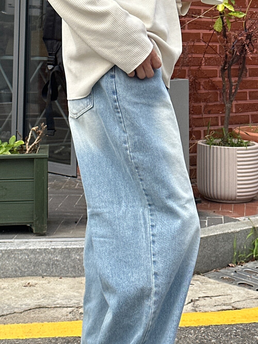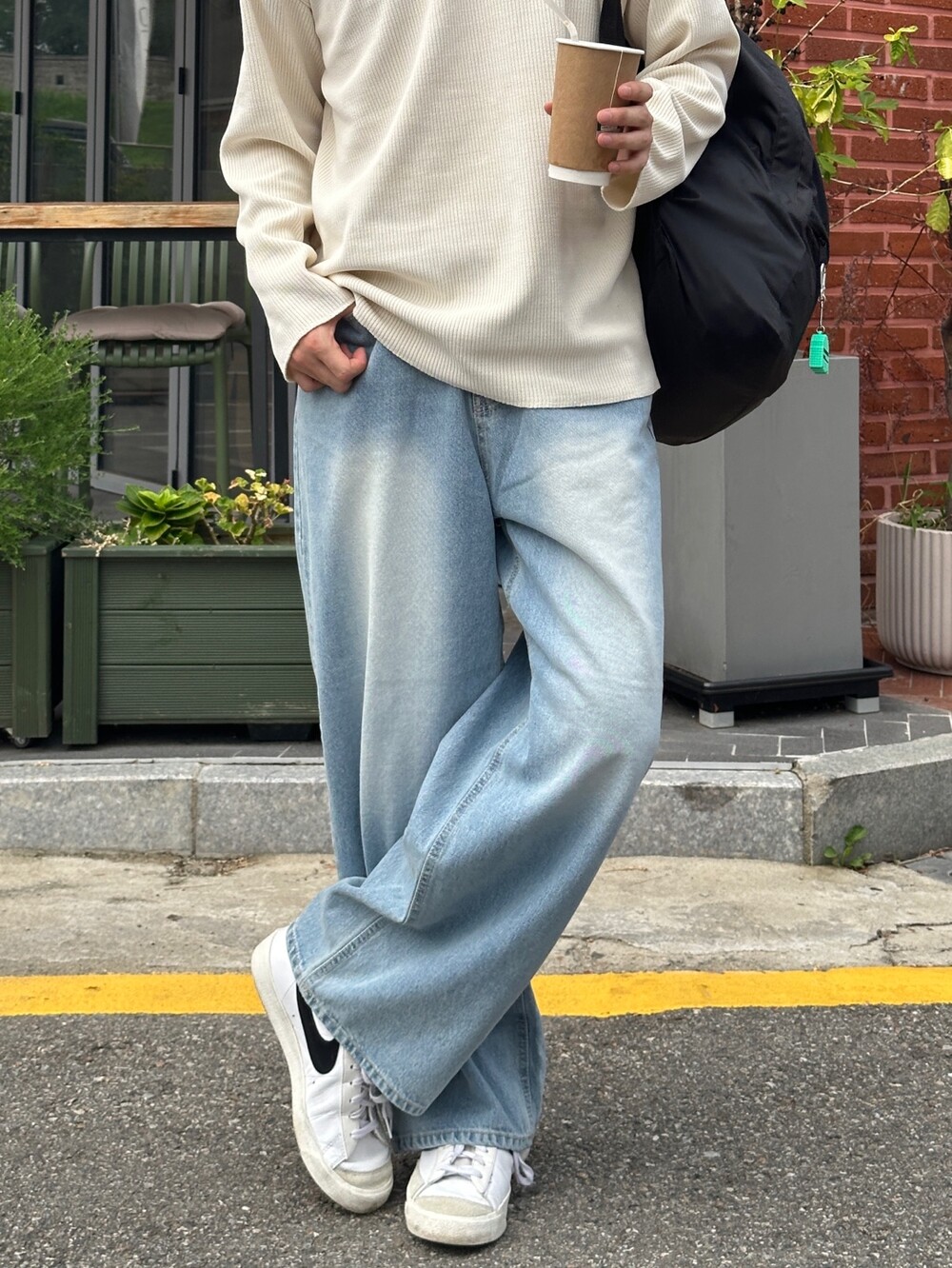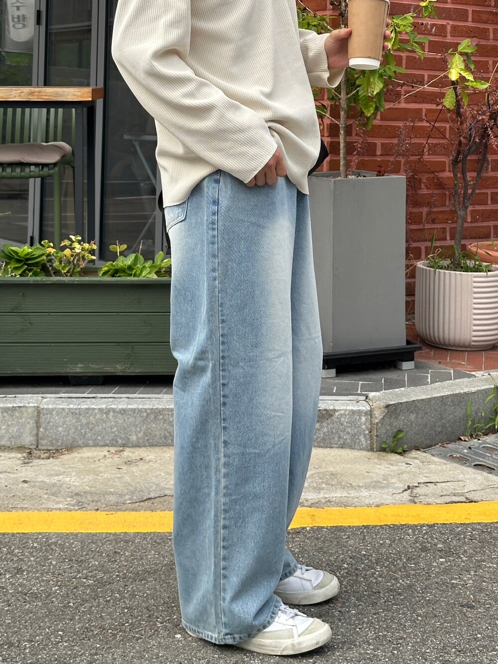 와이드한 실루엣이 특징인 팬츠입니다 색감이 진하게 너무 잘 빠져서