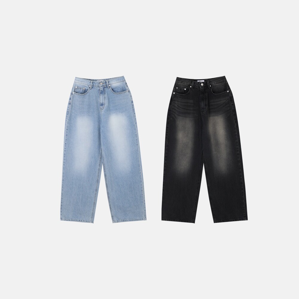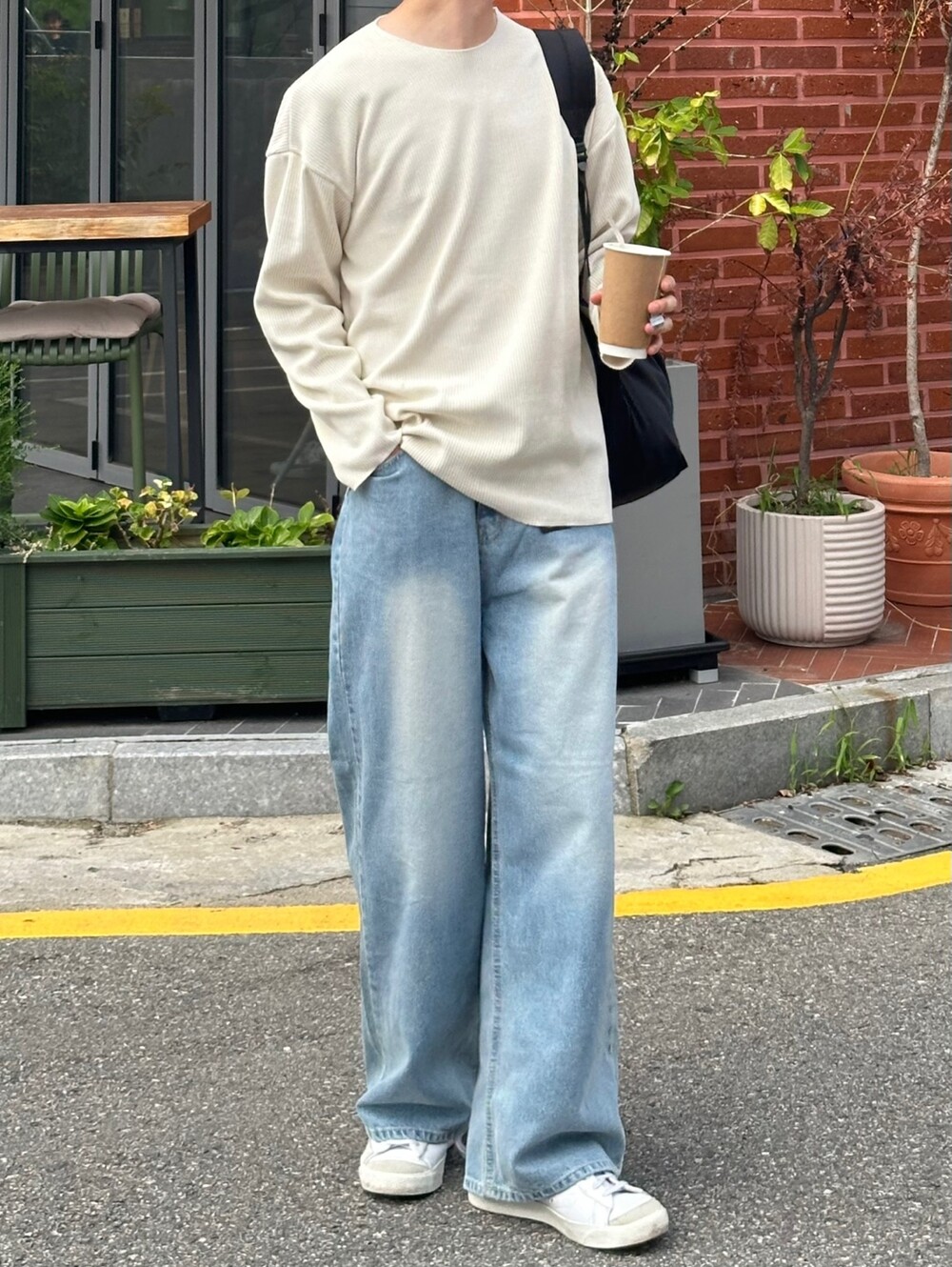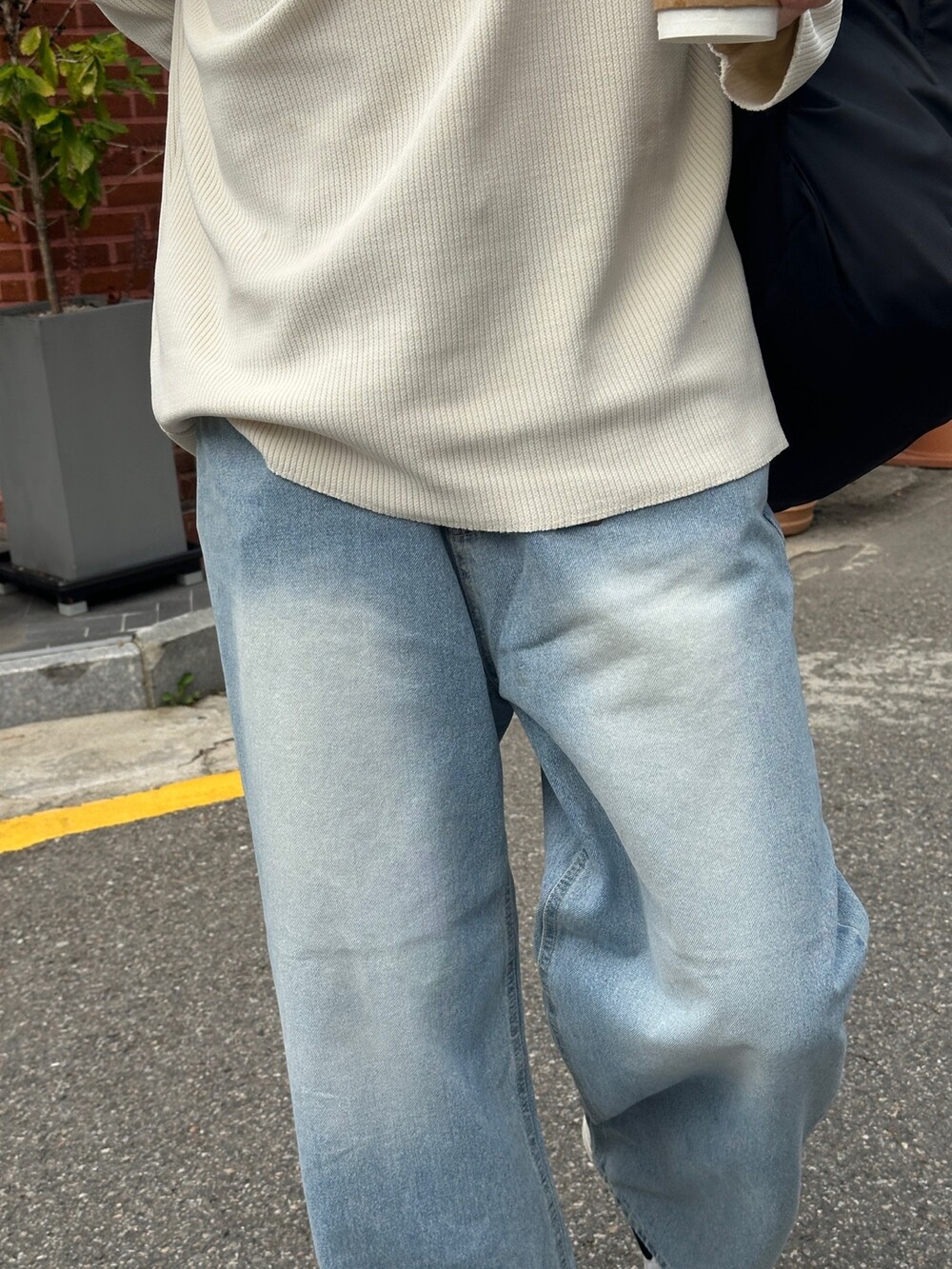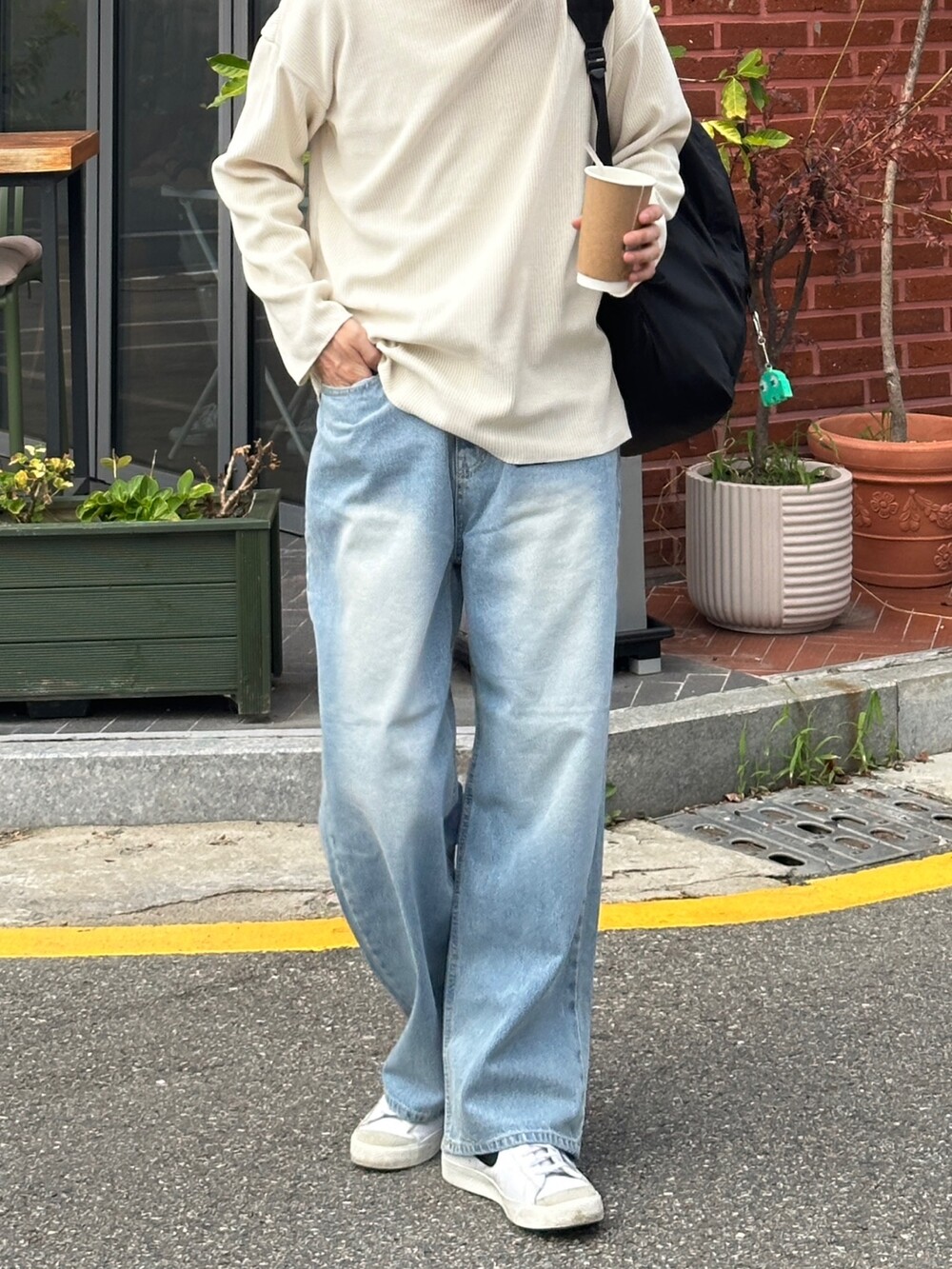 와이드한 실루엣이 특징인 팬츠입니다 색감이 진하게 너무 잘 빠져서