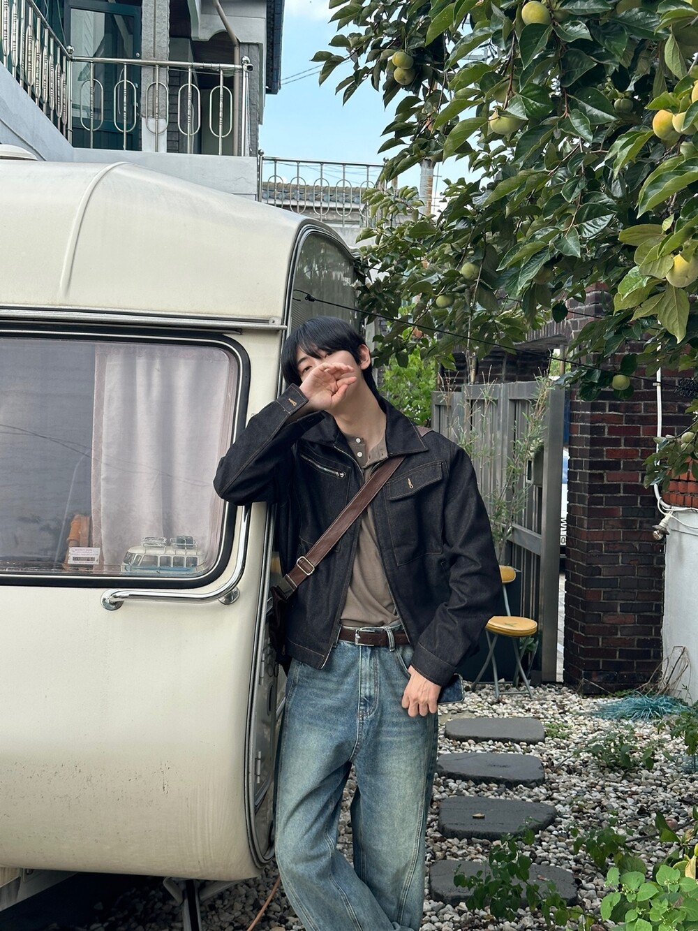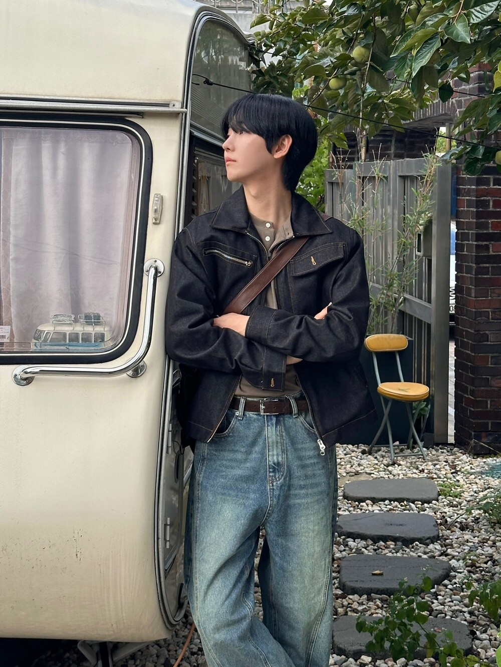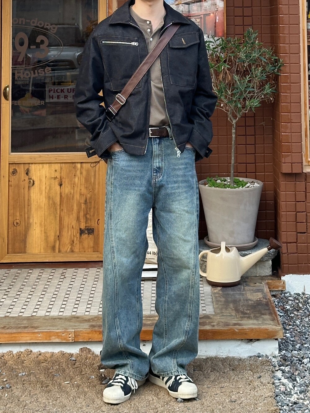 크롭한 기장의 생지 자켓입니다 !