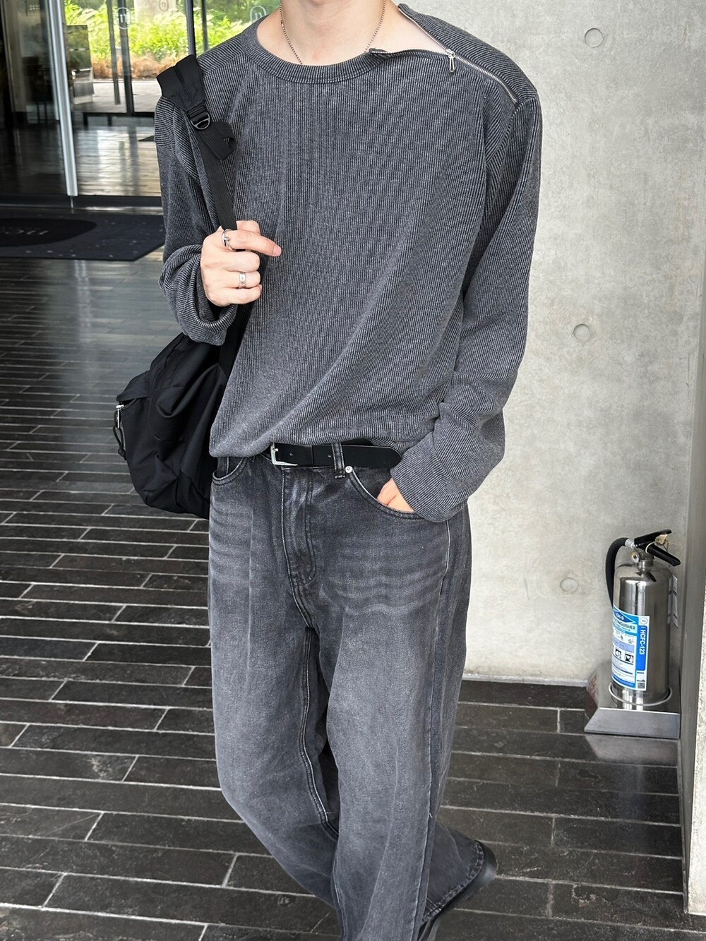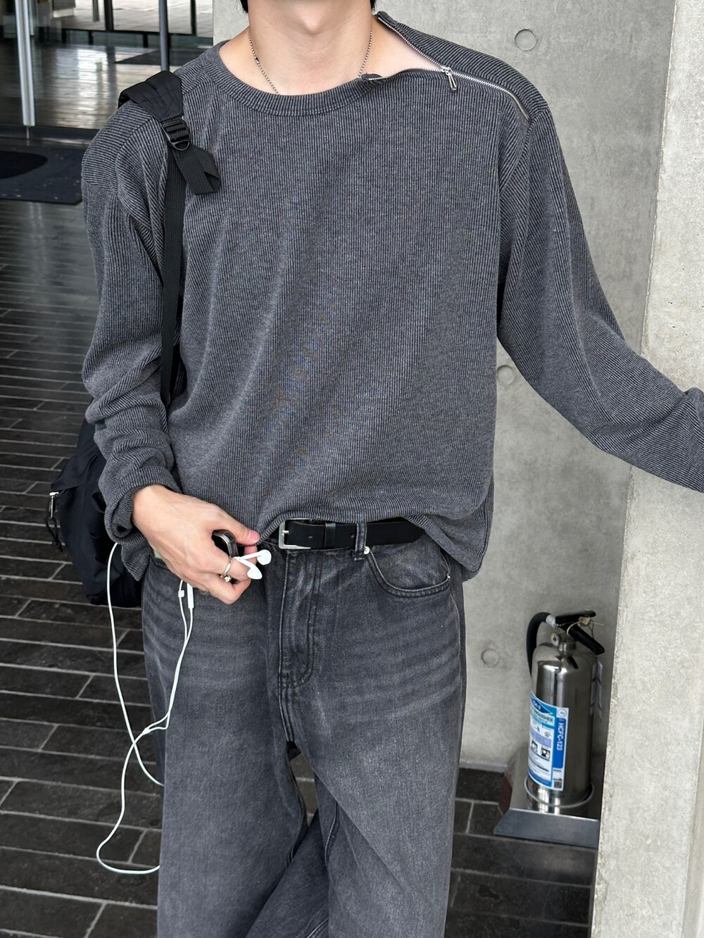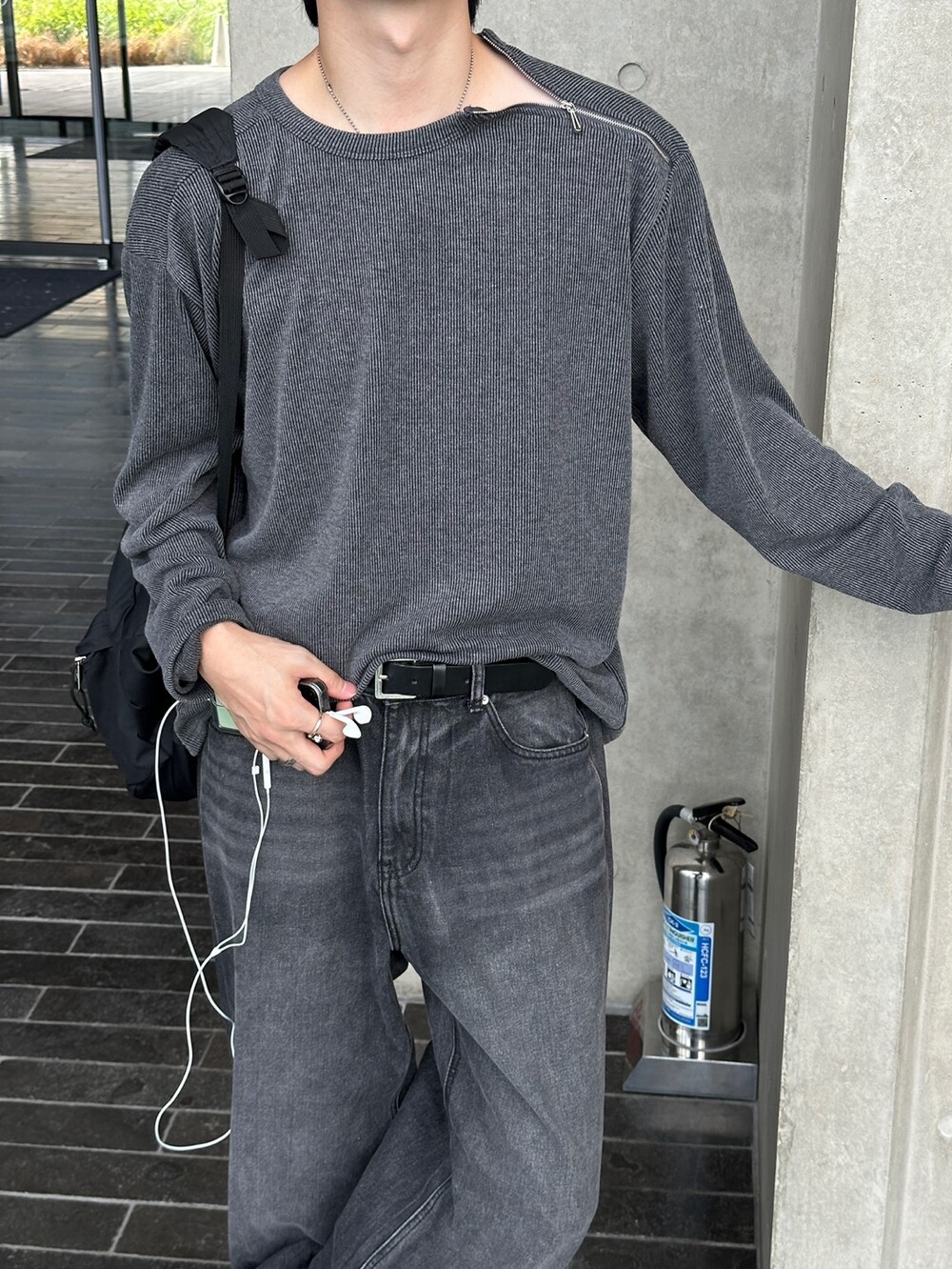 깔끔하고 섹시한 무드를 가진 사선 지퍼가 너무 매력적인 티셔츠입니다 :)