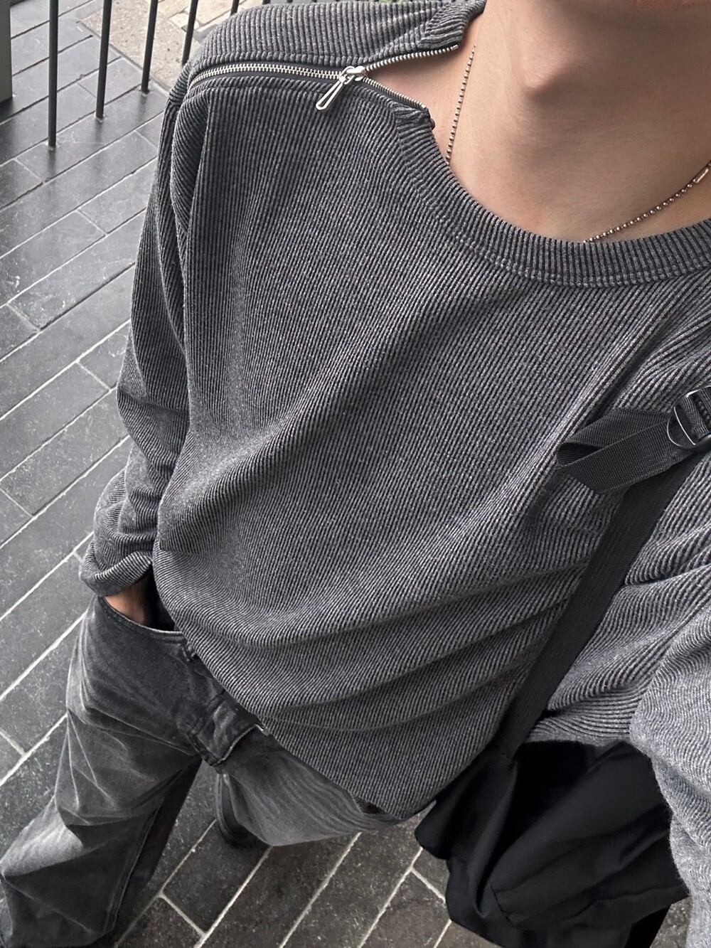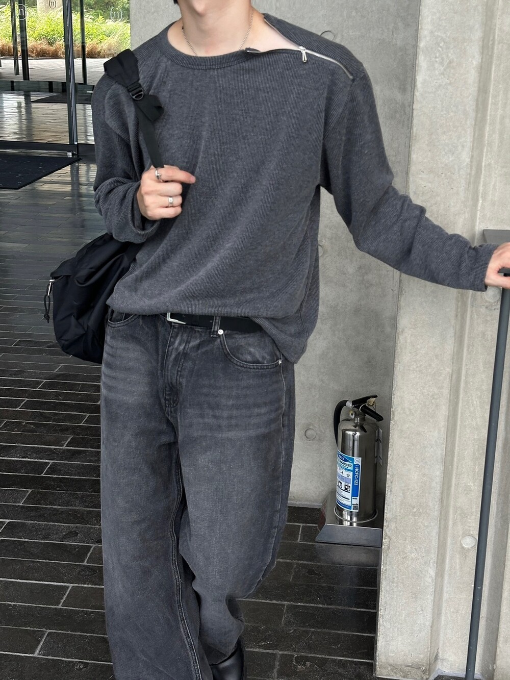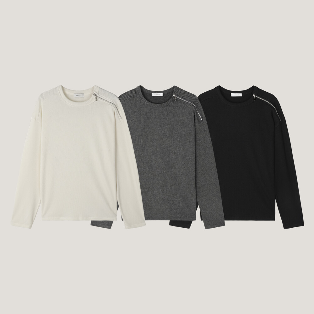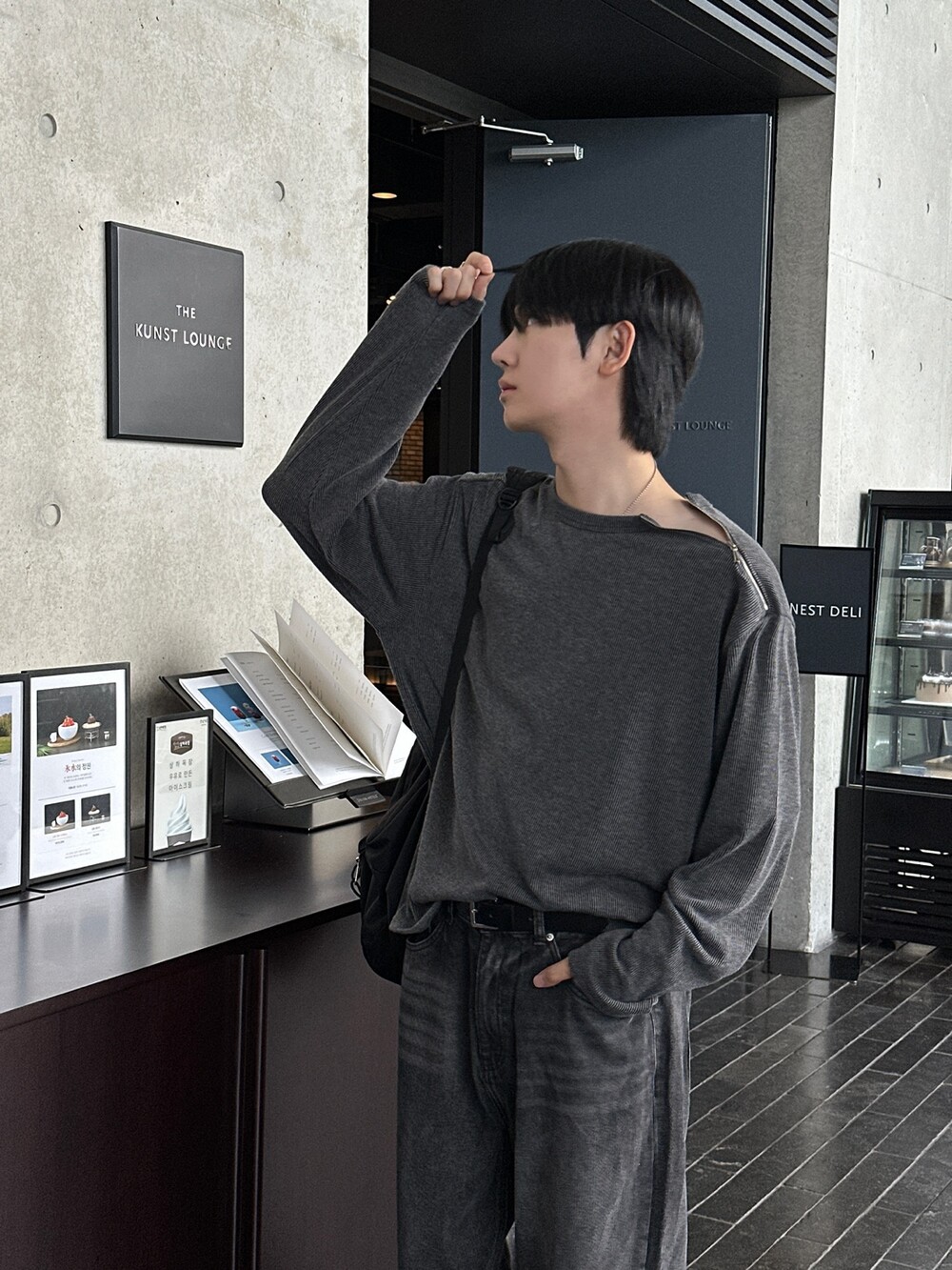 깔끔하고 섹시한 무드를 가진 사선 지퍼가 너무 매력적인 티셔츠입니다 :)