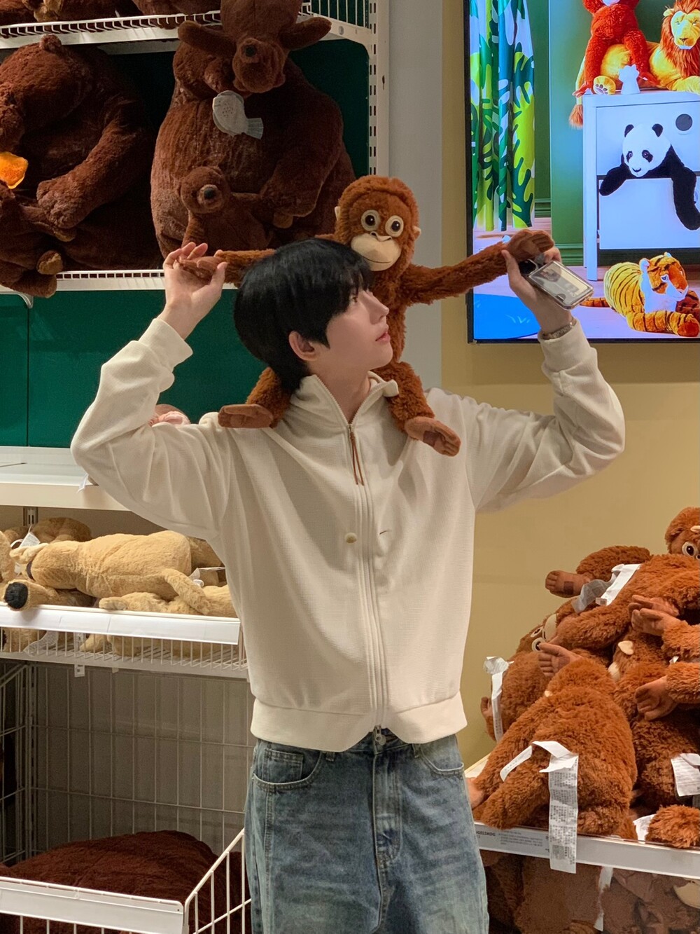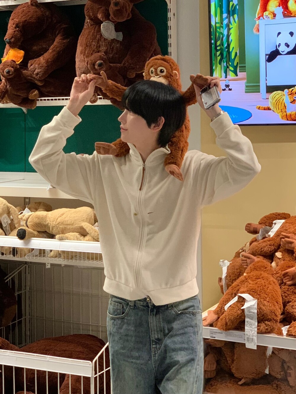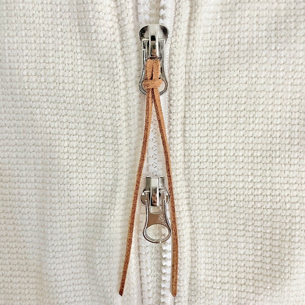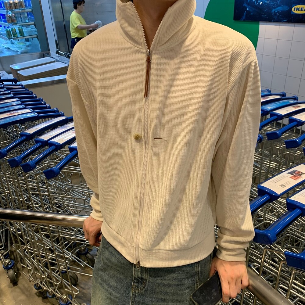 루즈한 핏감에 살짝 크롭한 기장감이 너무 매력있고 스웨이드 지퍼 장식도
