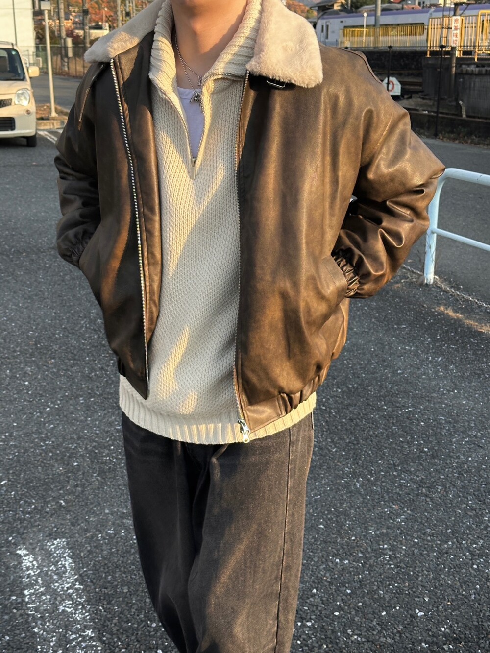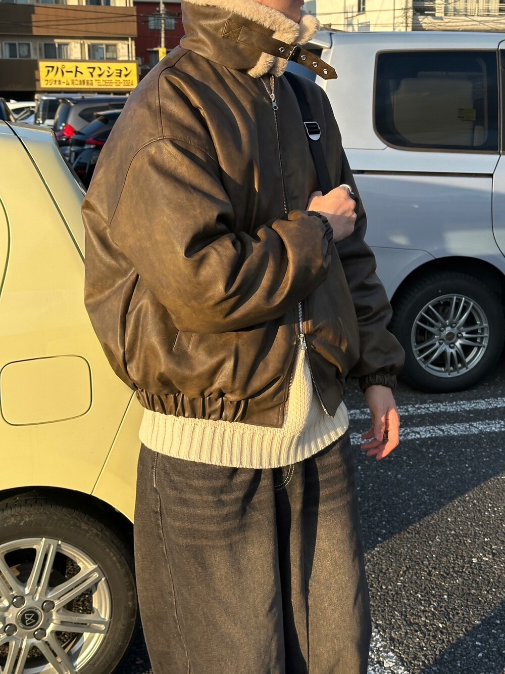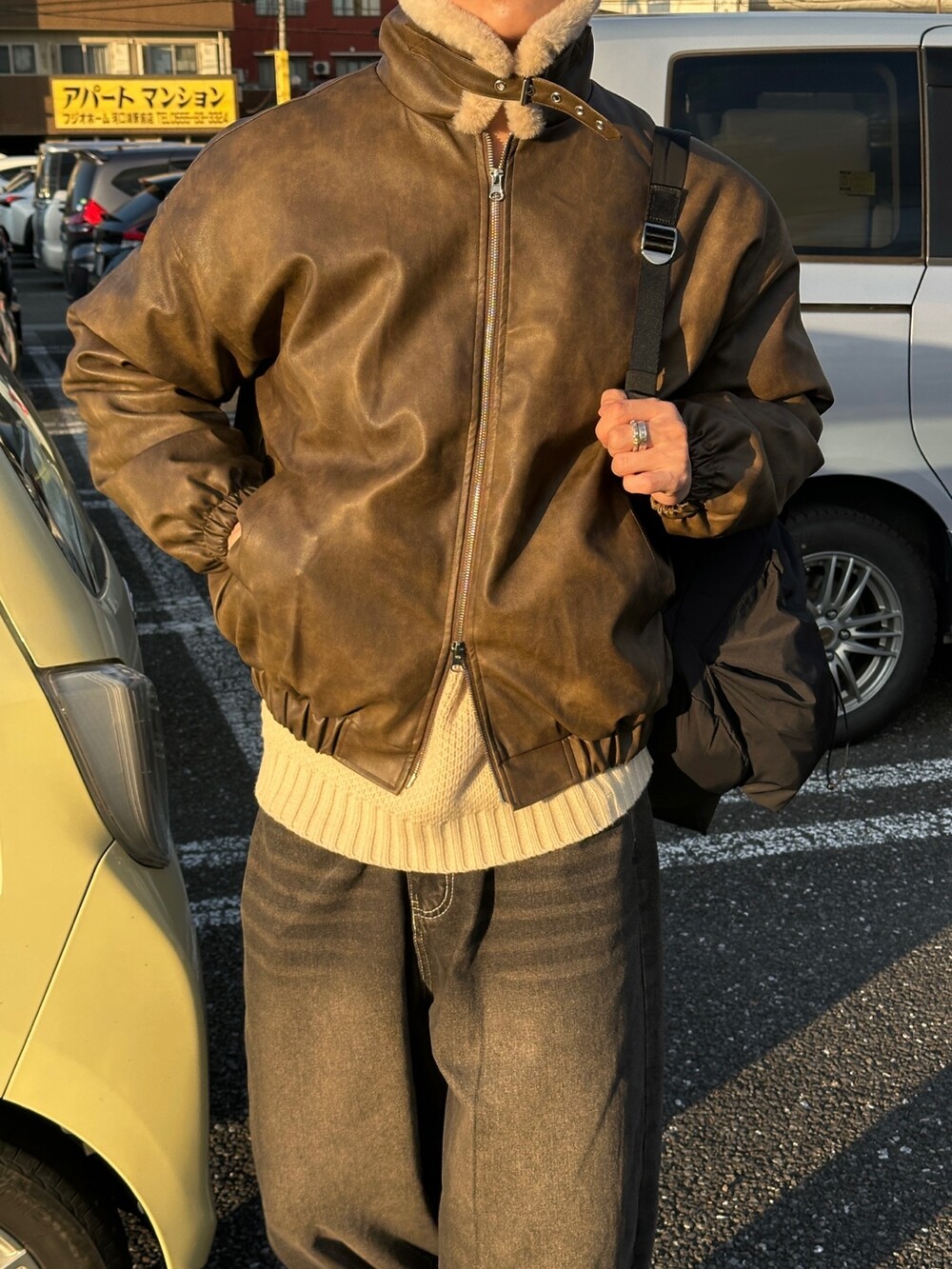 MA-1 크롭한 실루엣에 크랙 레더 원단의 디자인입니다 ㅠㅠ