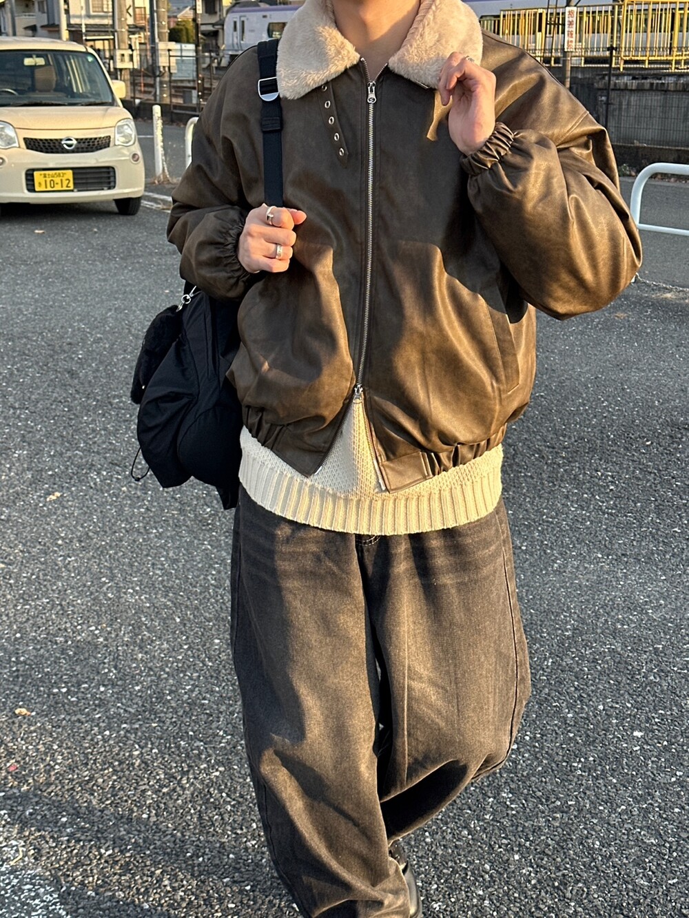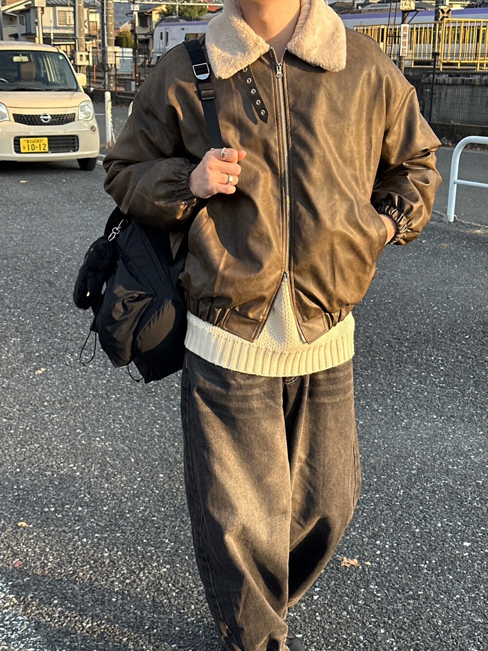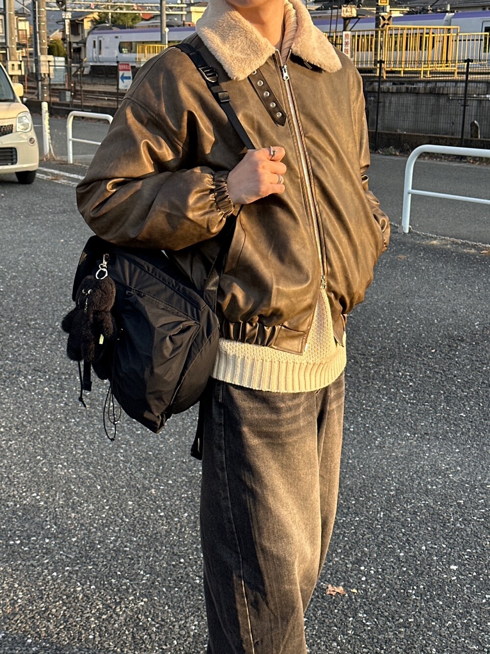 MA-1 크롭한 실루엣에 크랙 레더 원단의 디자인입니다 ㅠㅠ