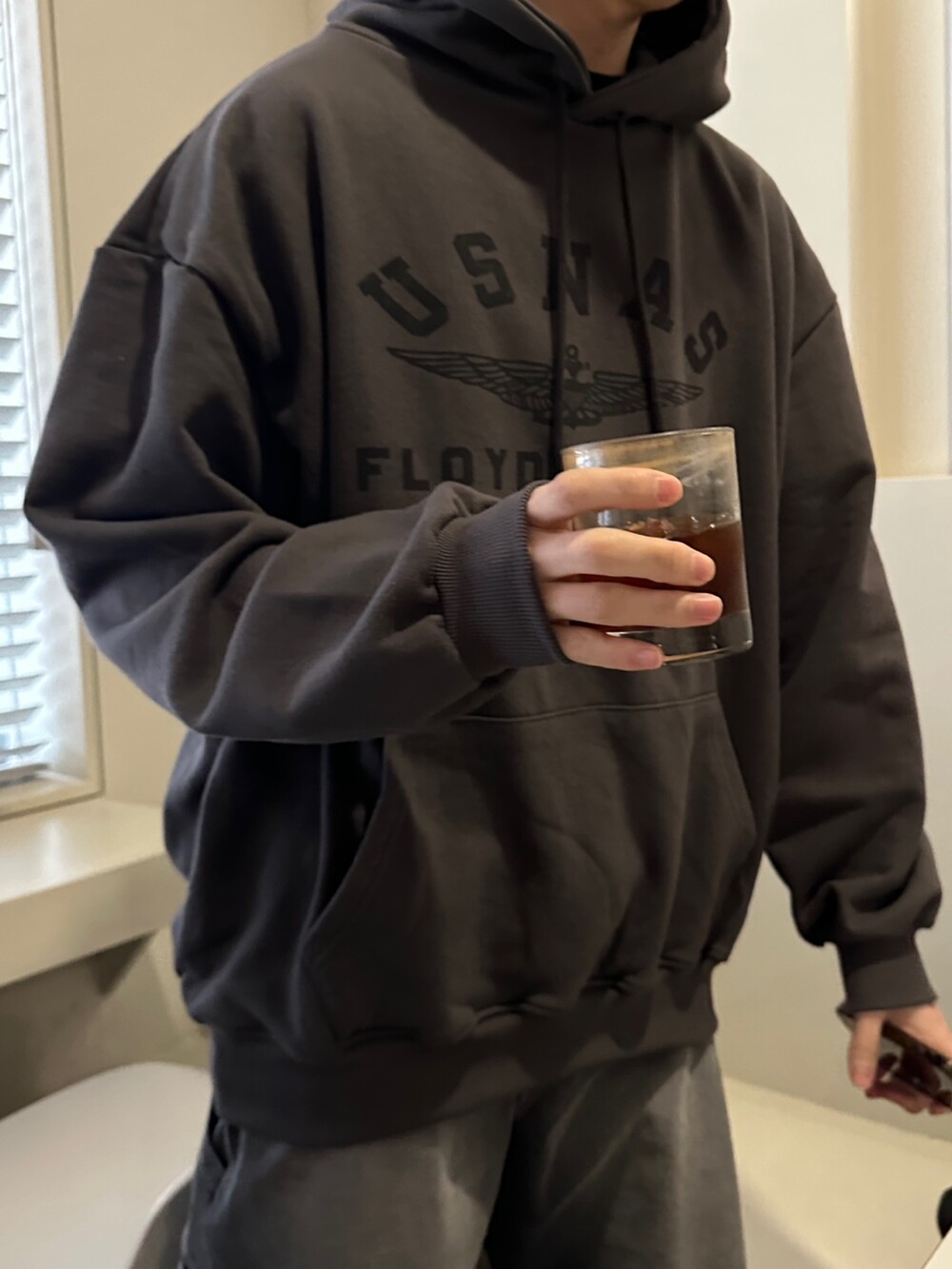 빈티지한 프린팅이 들어간 후드티입니다 :)