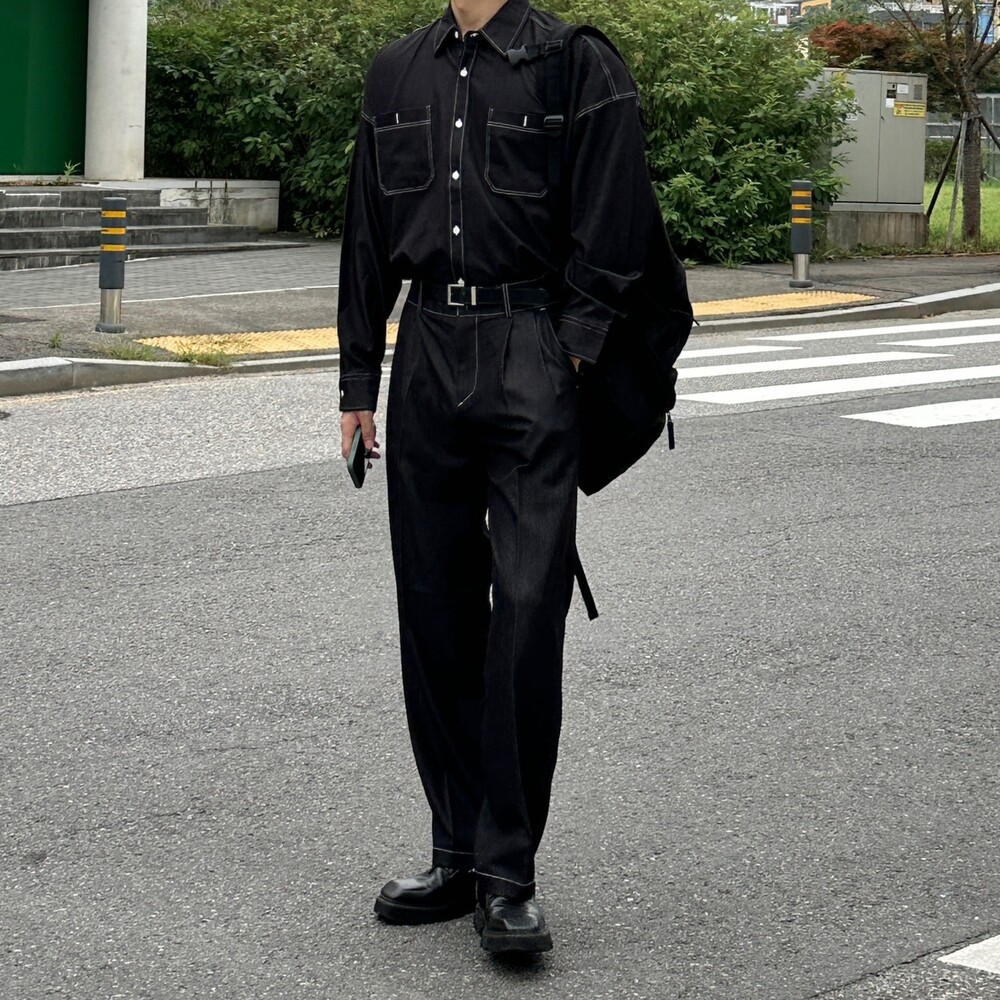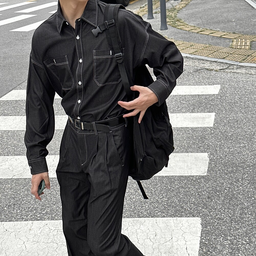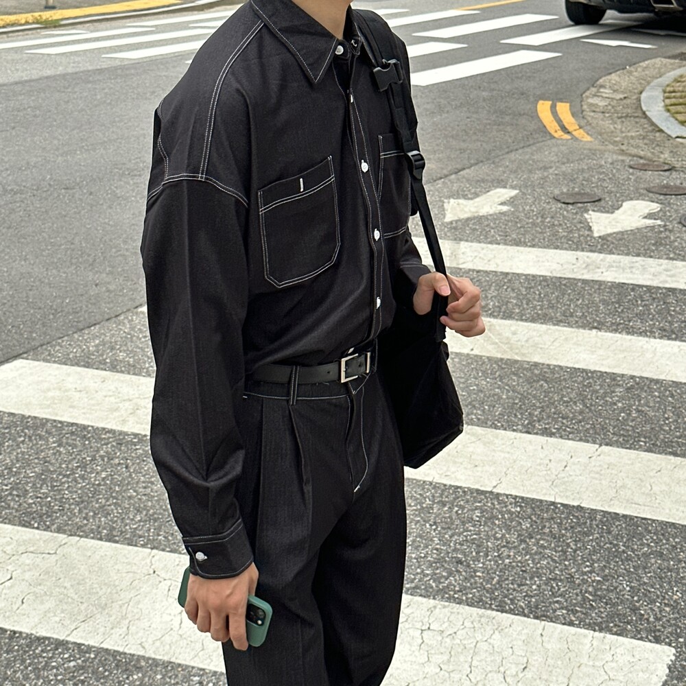 페이크 데님 셋업 셔츠 (2color)