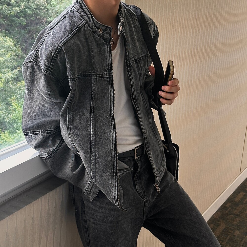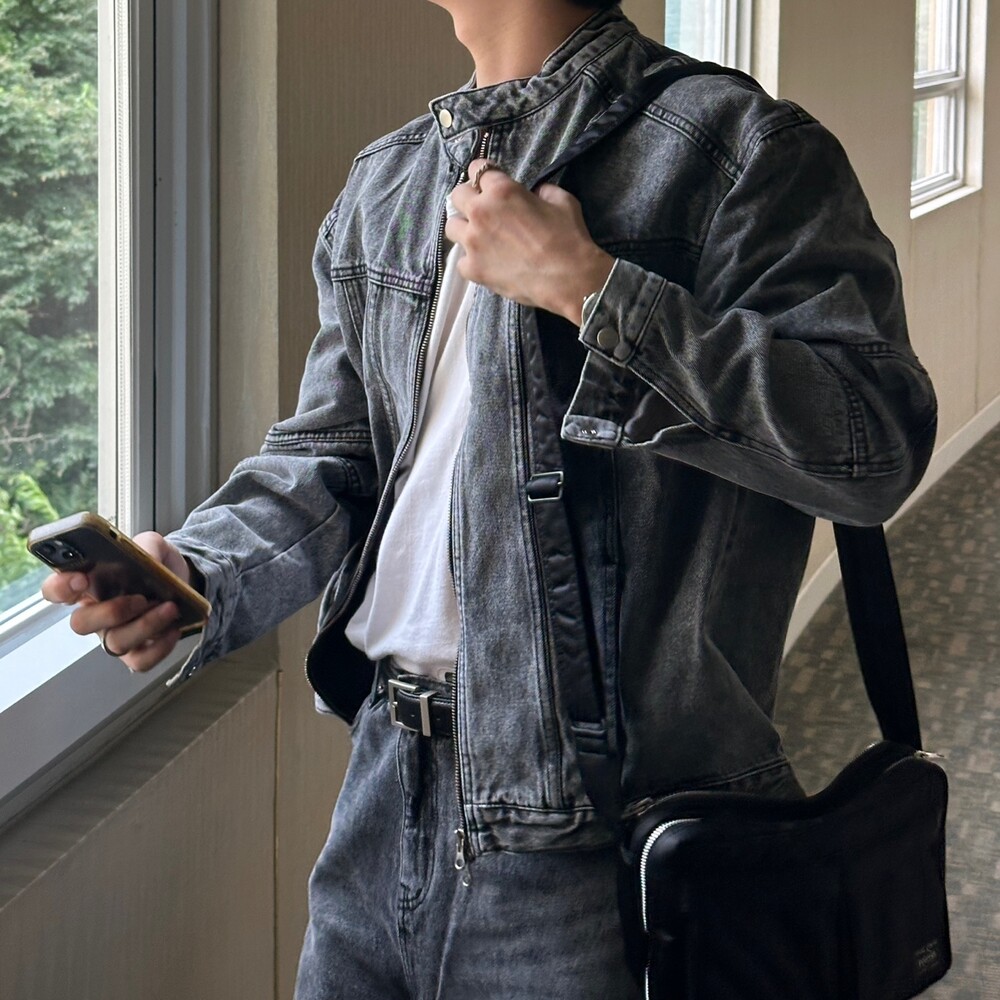 시크한 무드가 흠뻑 묻은 바이커 데님 자켓입니다