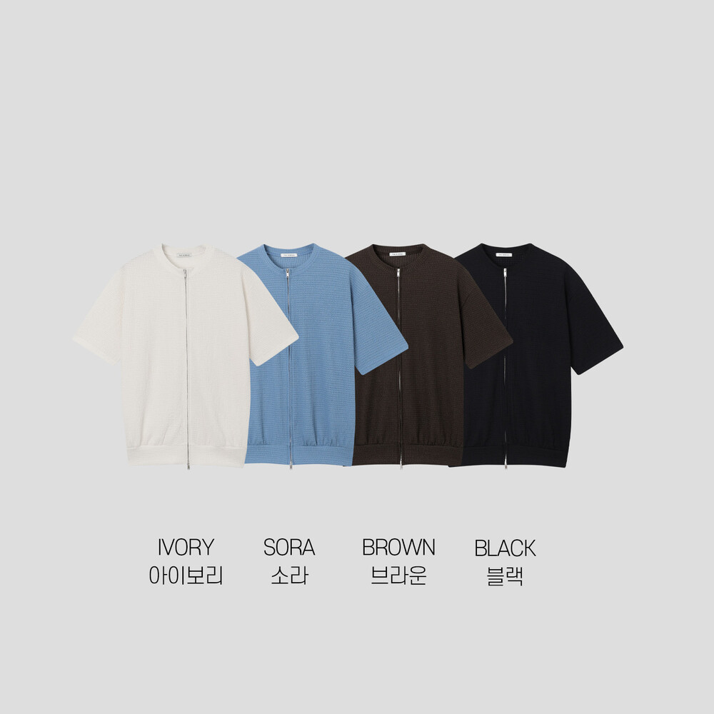실루엣 라운드 집업 반팔 가디건 (4color)
