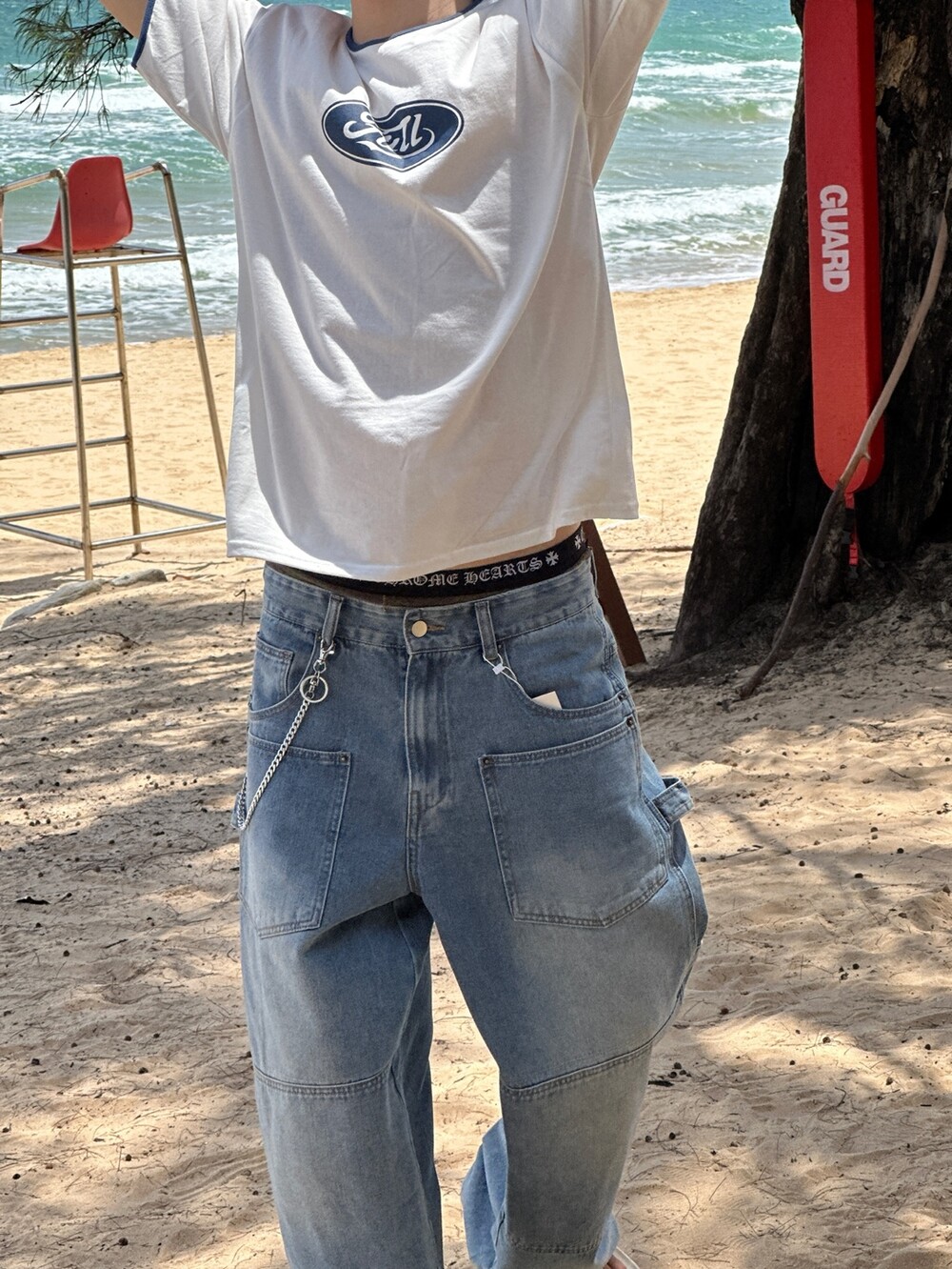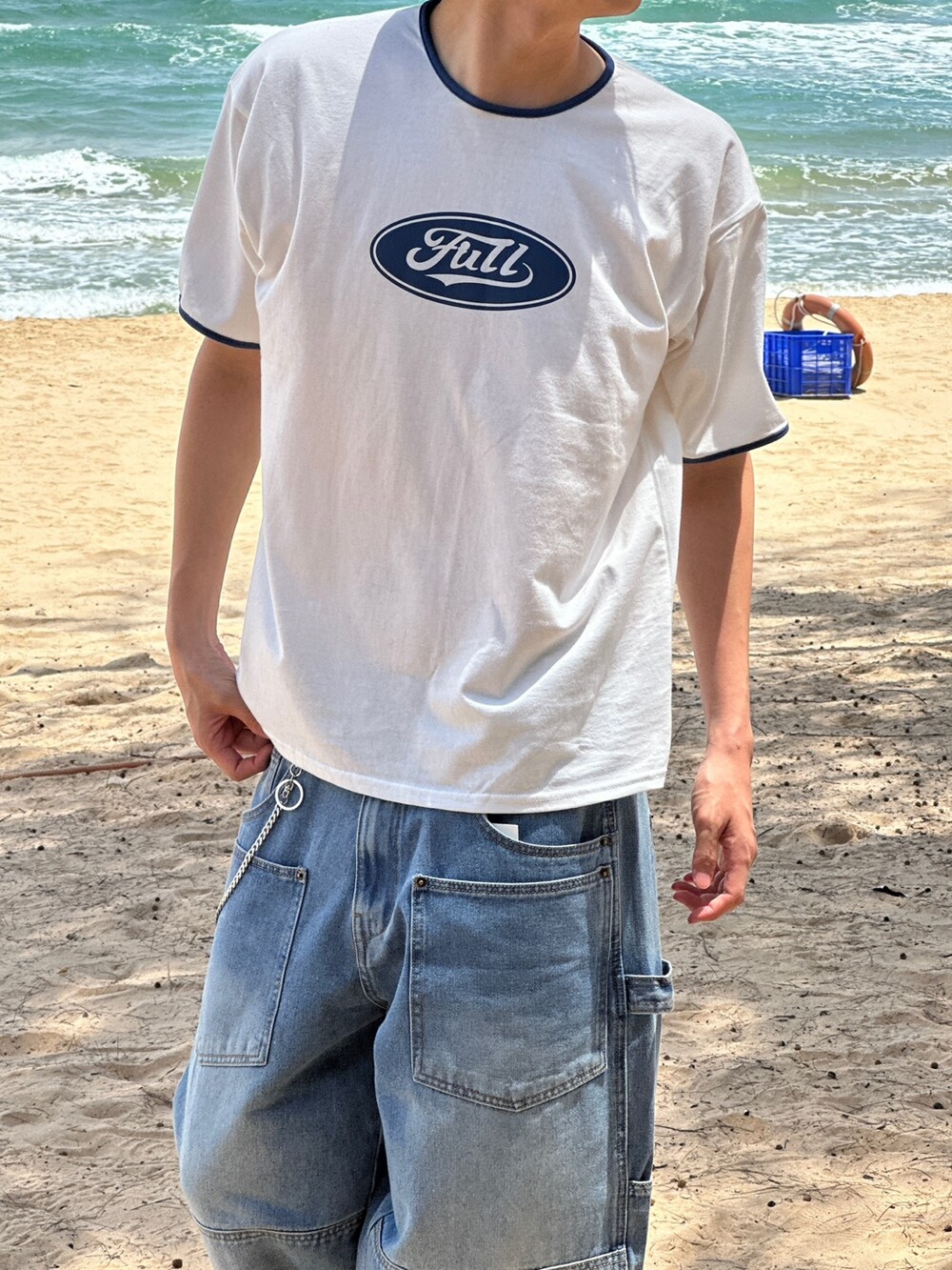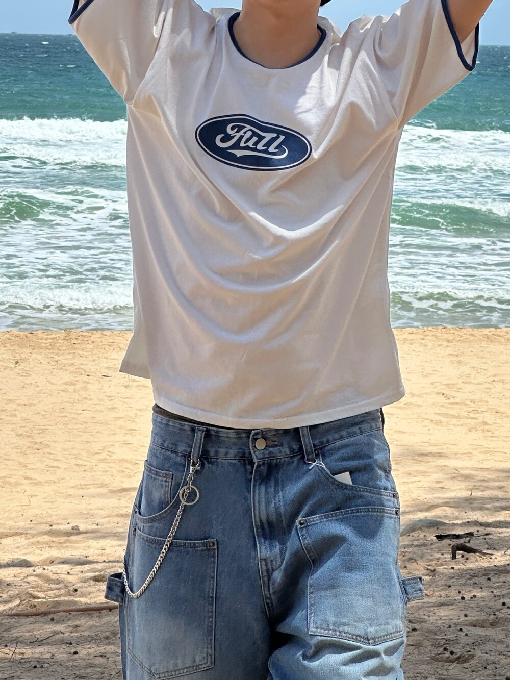 크롭한 기장감으로 키에 상관없이 착용하기 좋은 반팔티 입니다