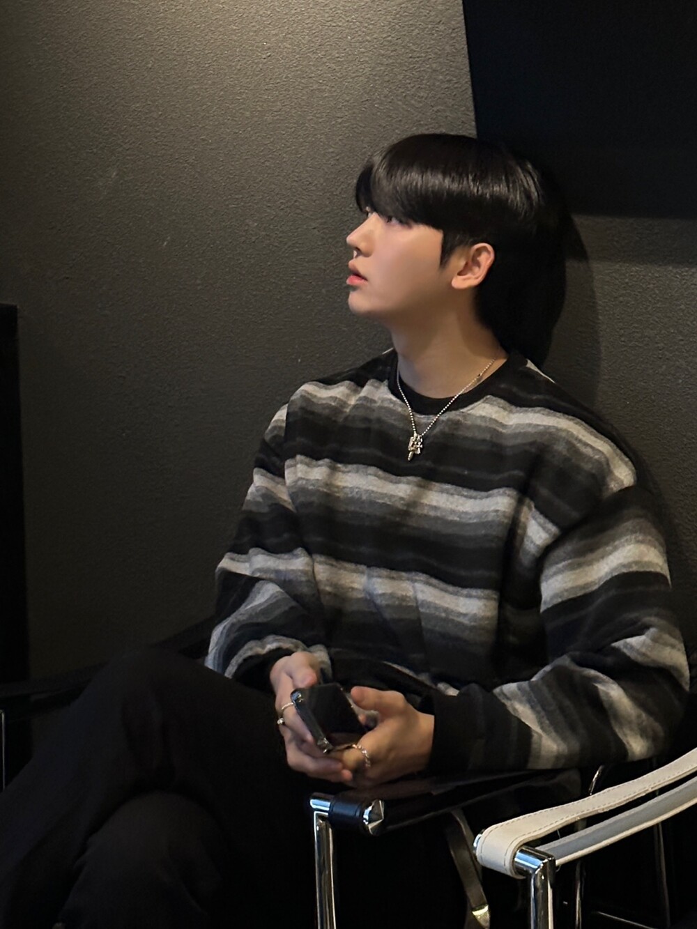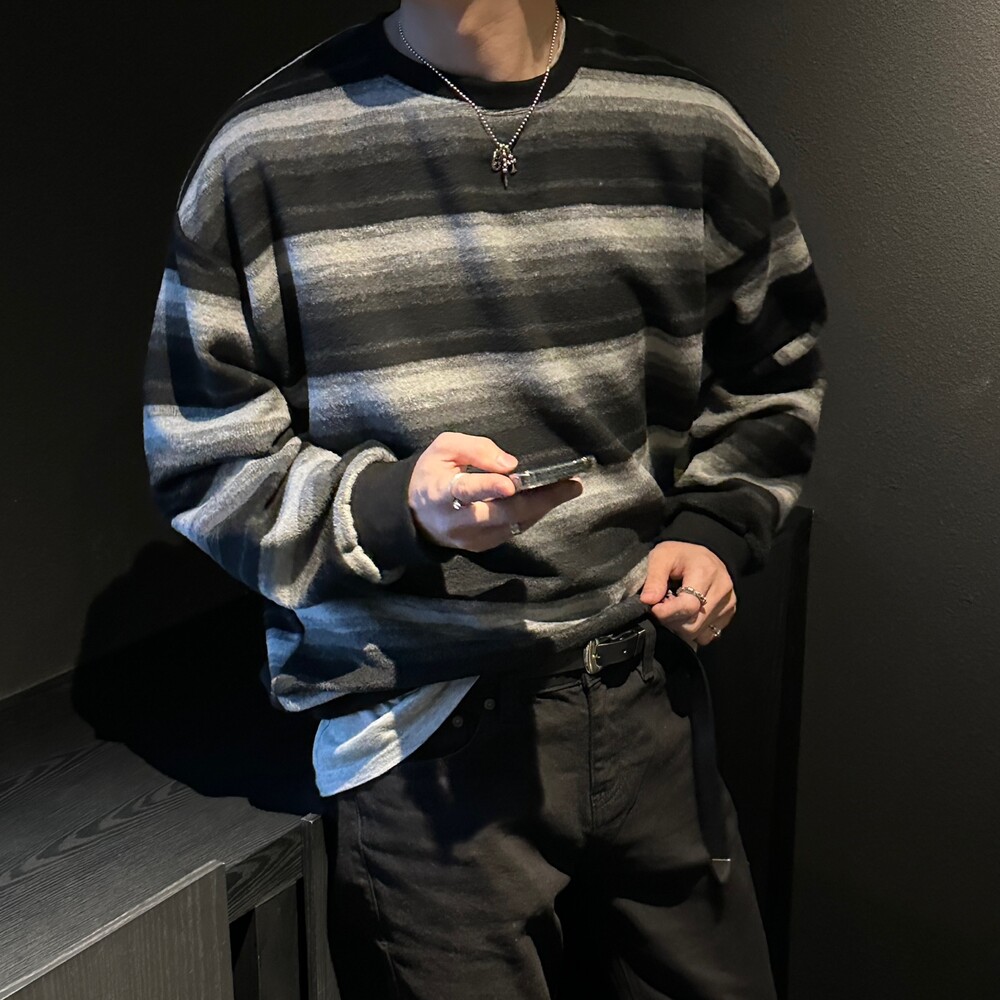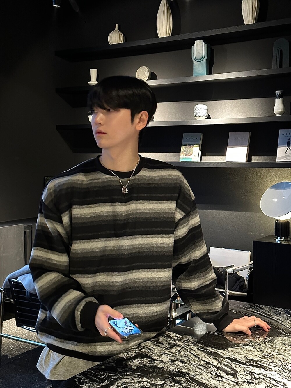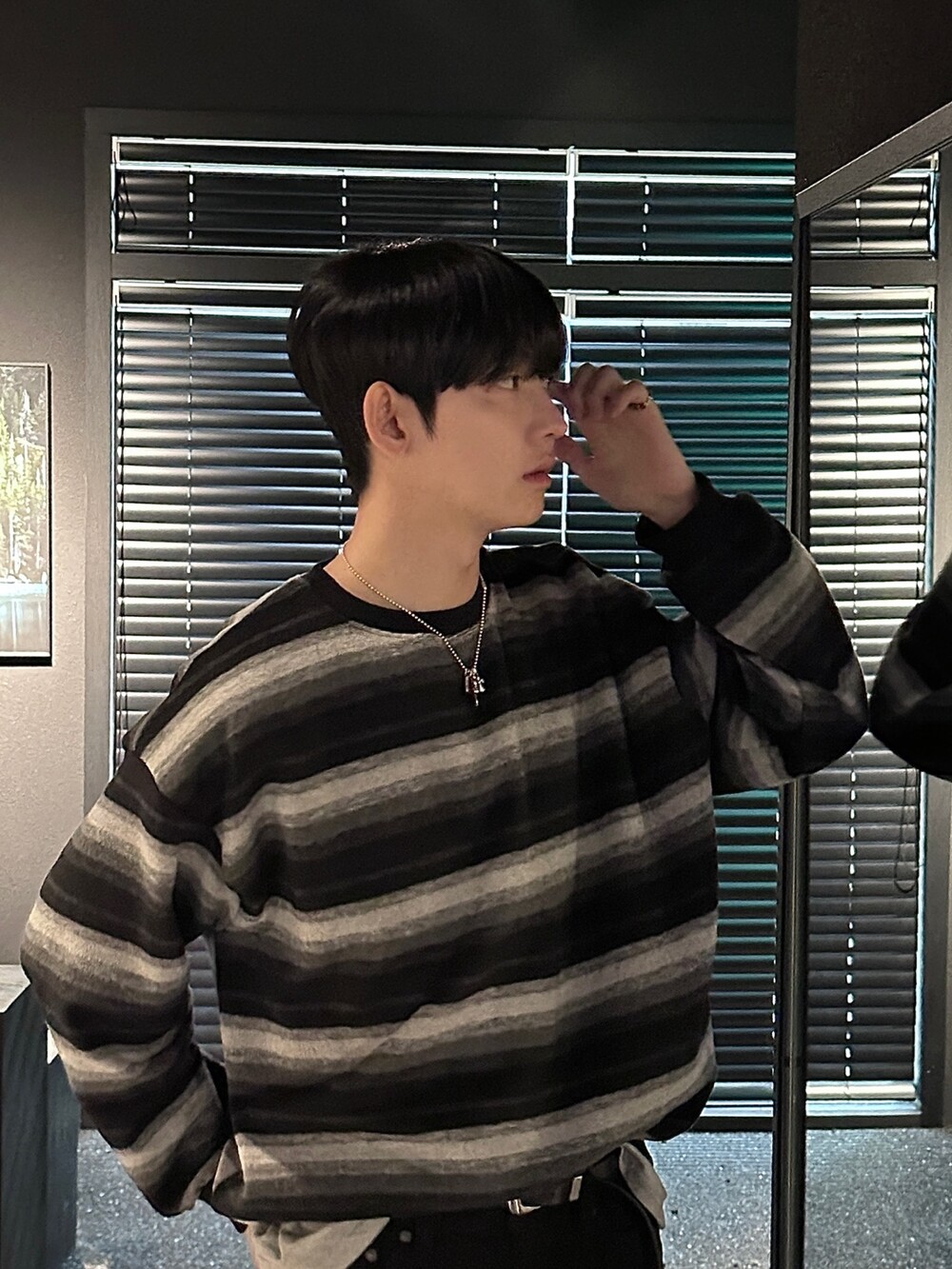 앙고라 모헤어 스트라이프 니트 맨투맨 (2color)