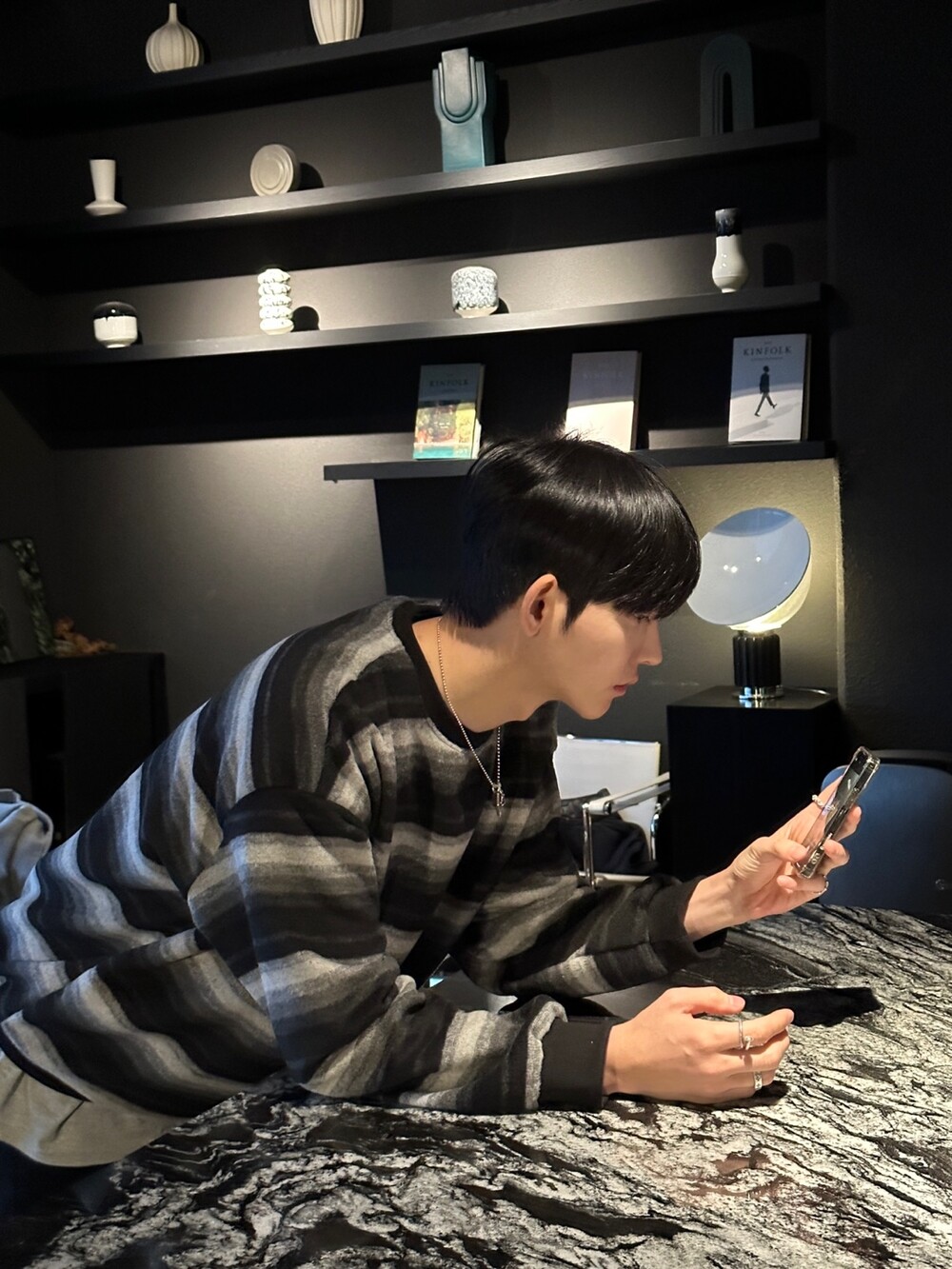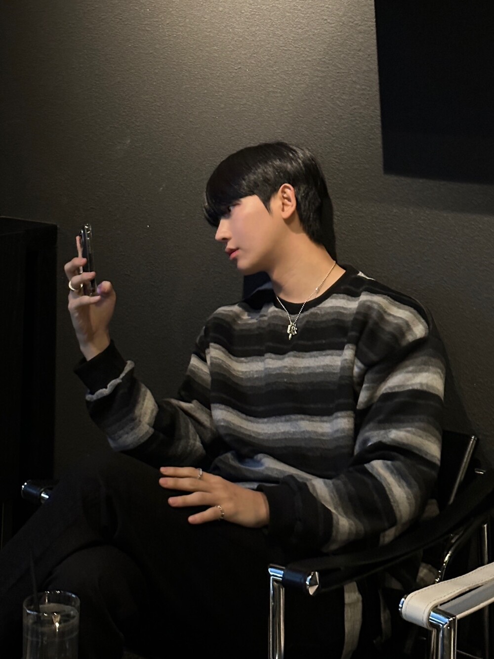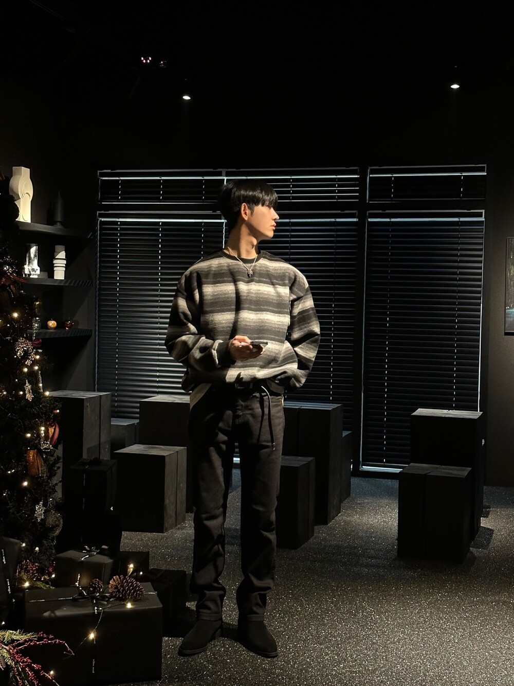 앙고라 모헤어 스트라이프 니트 맨투맨 (2color)