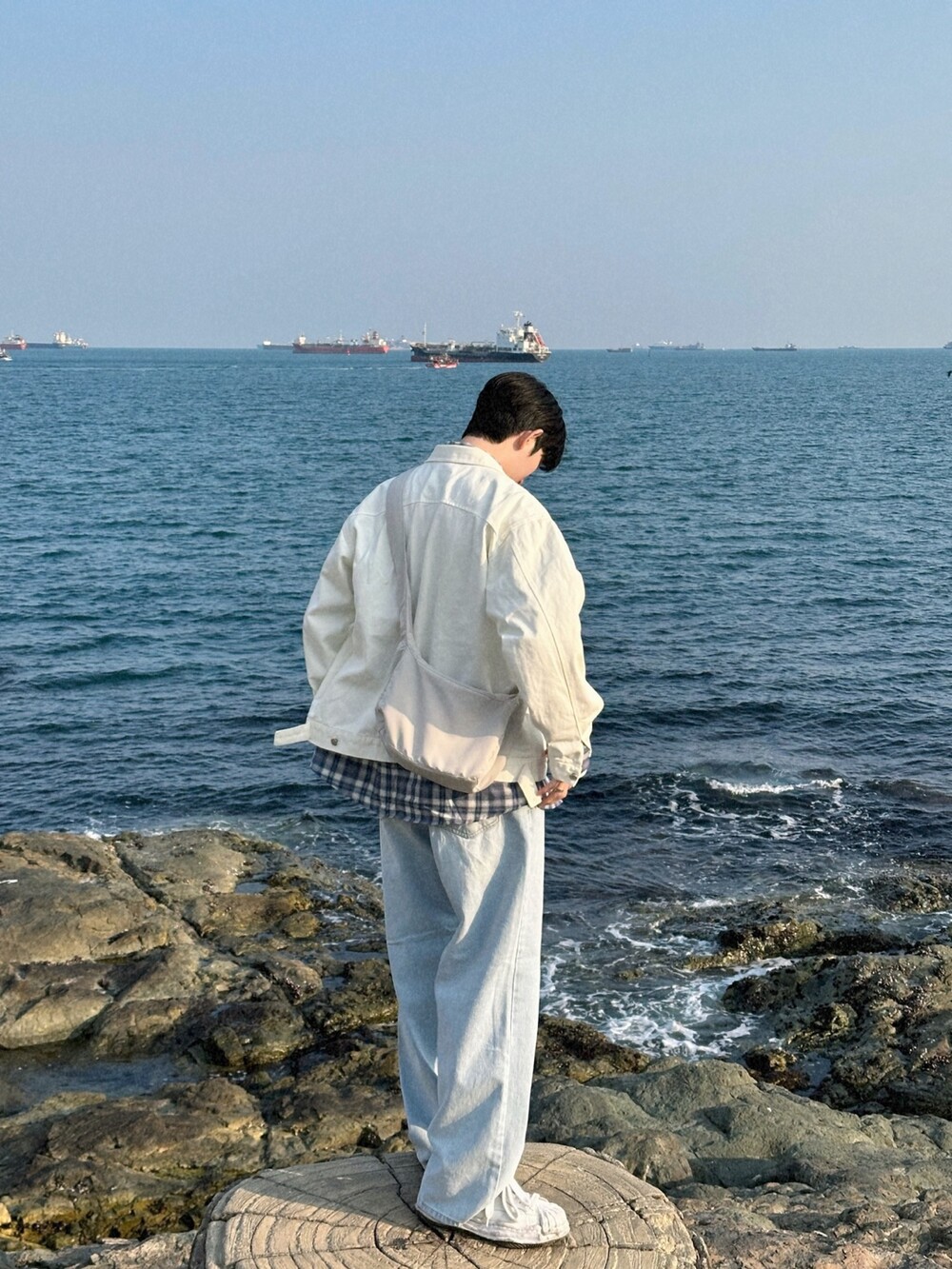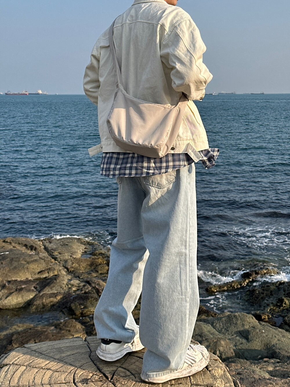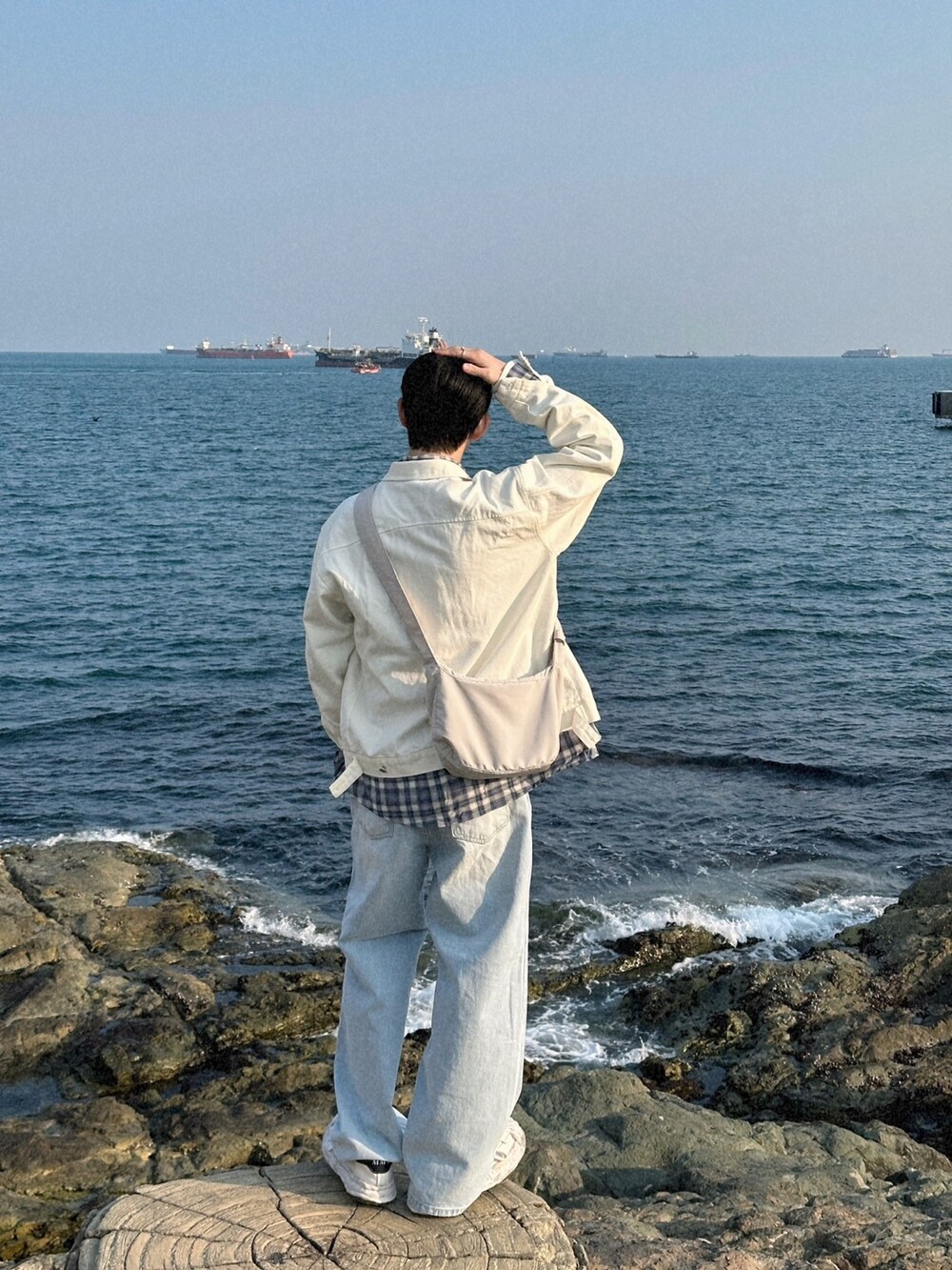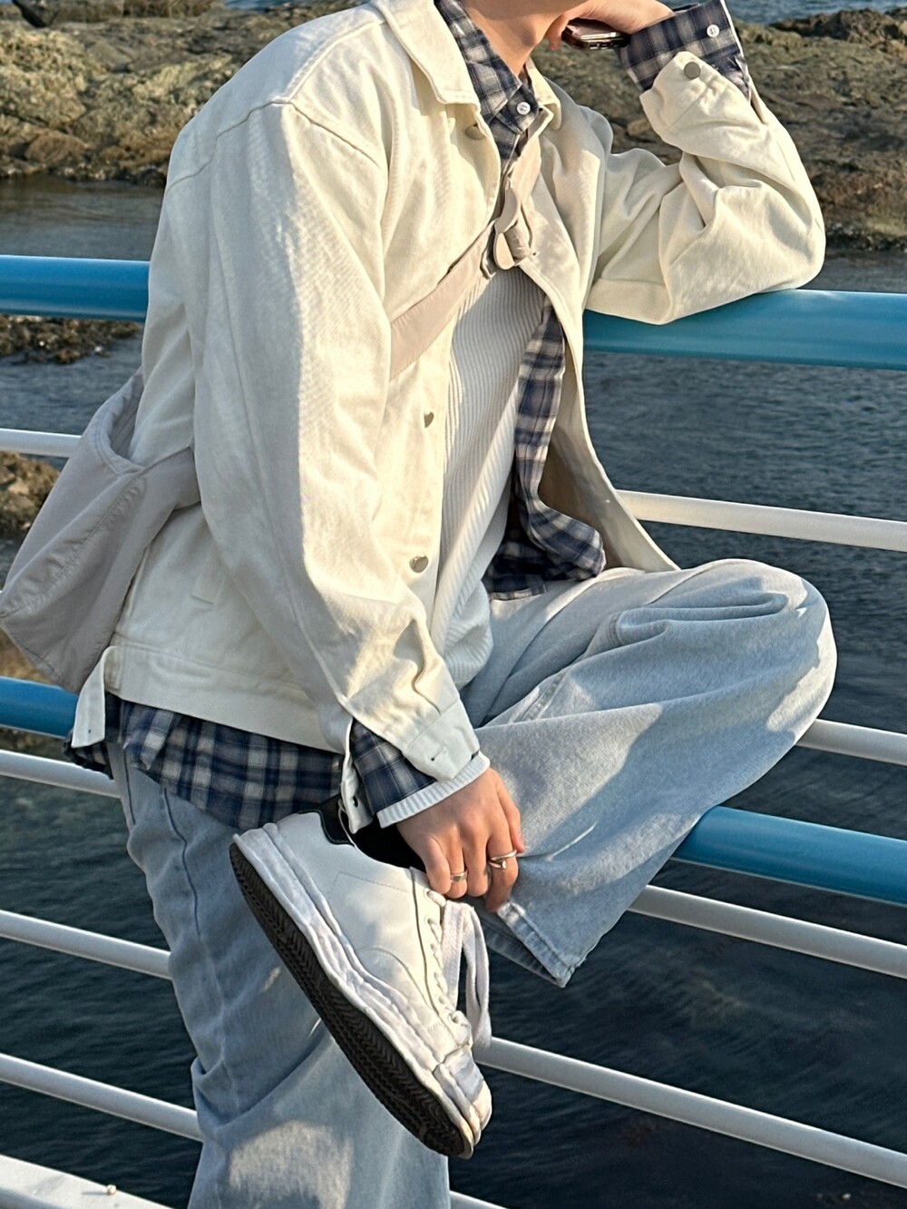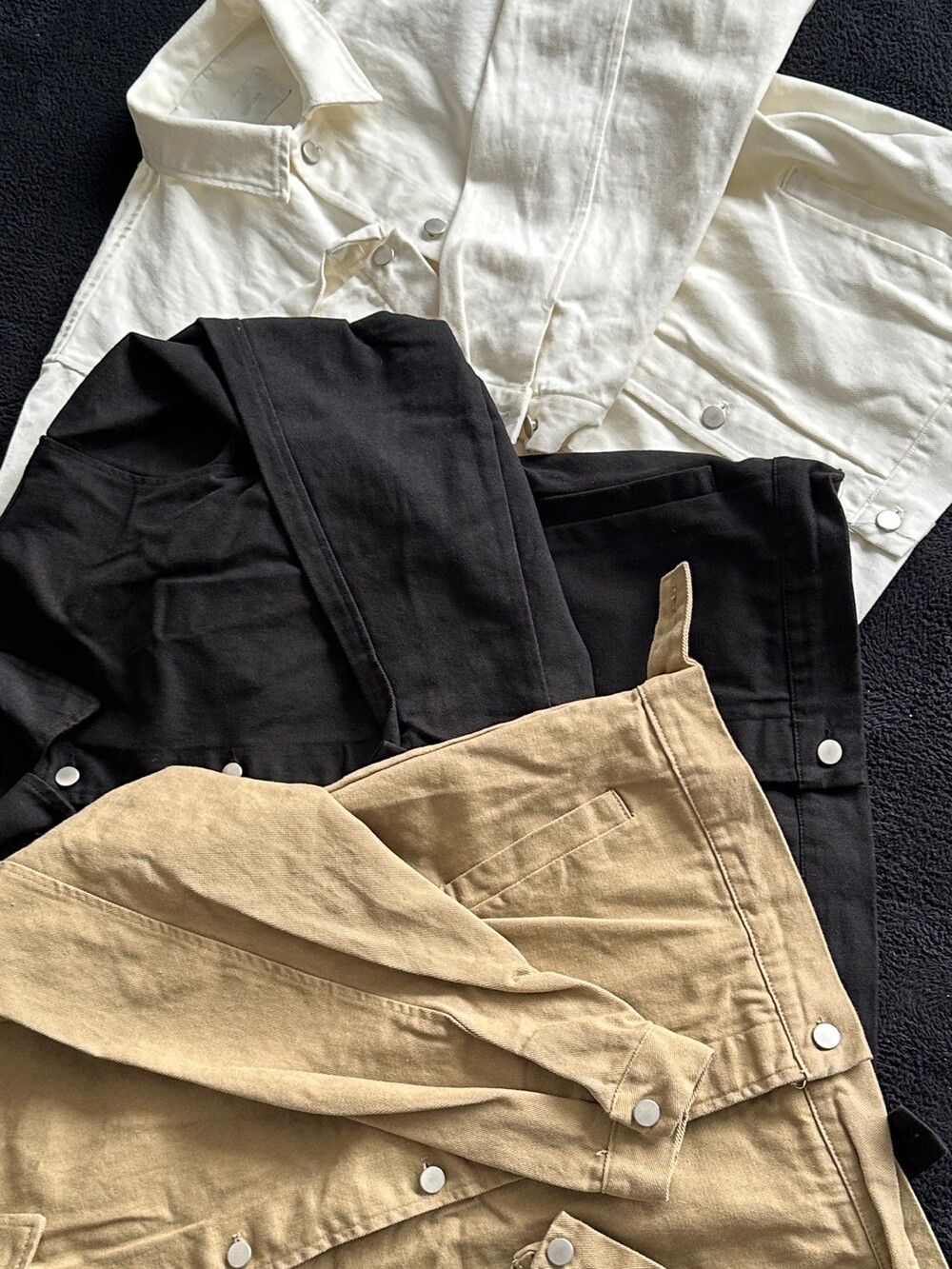 오버핏에 실버버튼으로 심플하게 포인트를 줬습니다