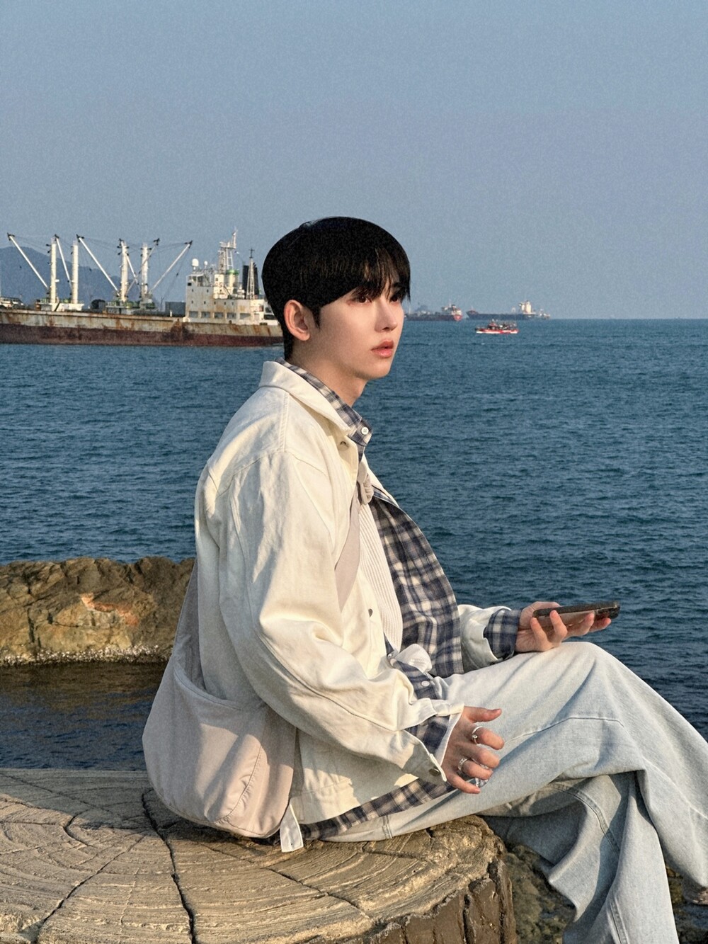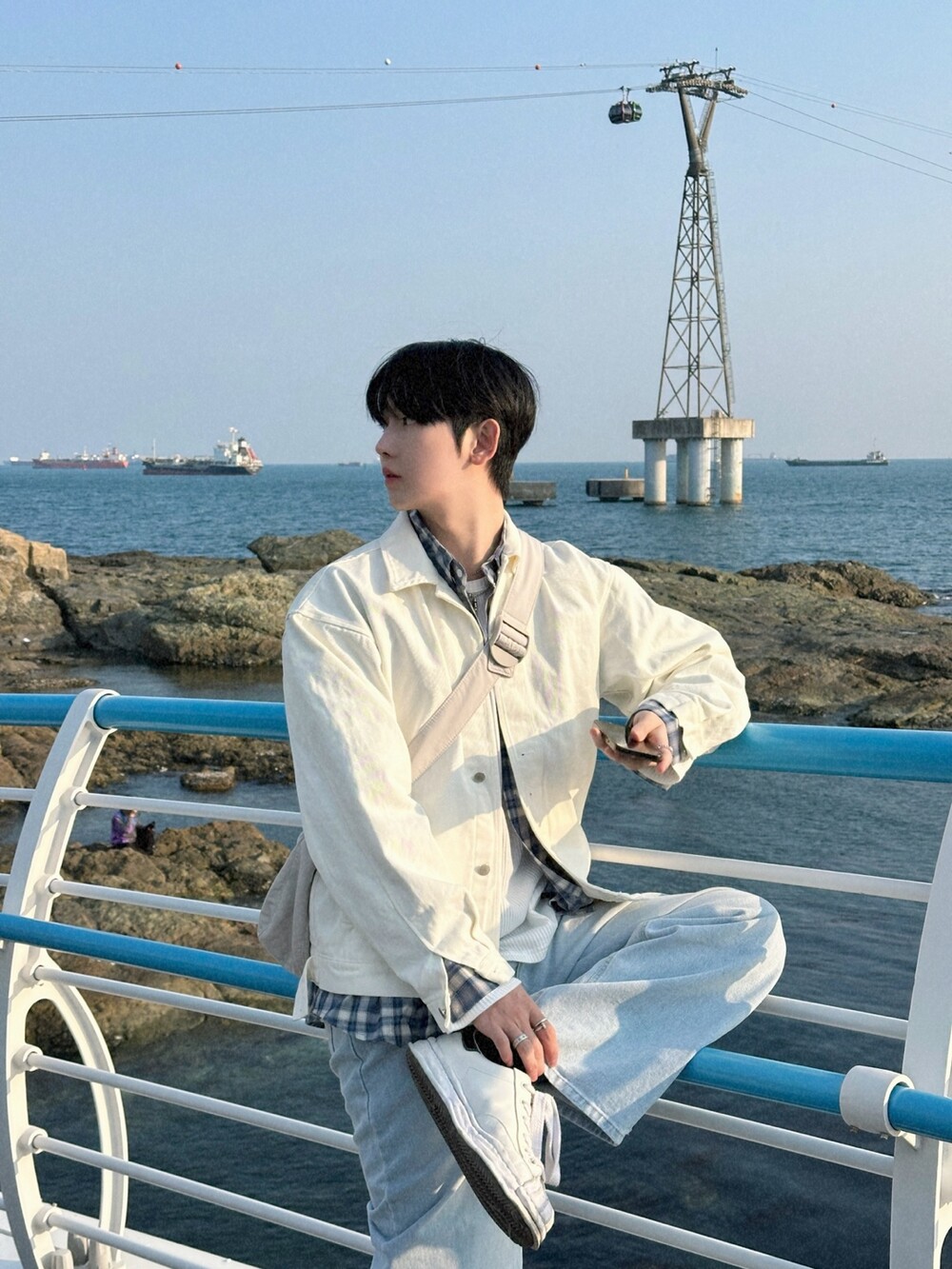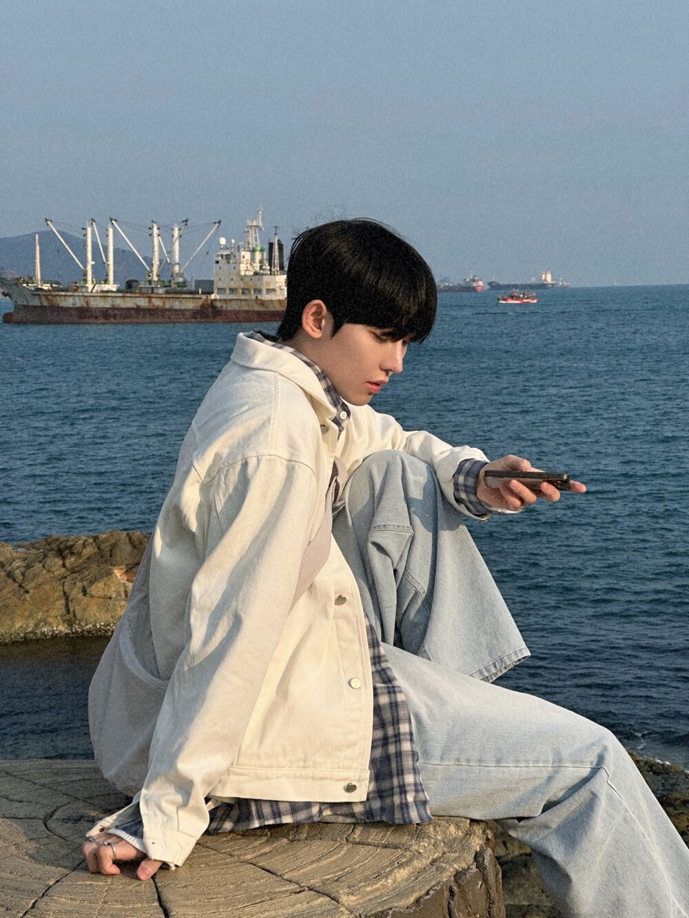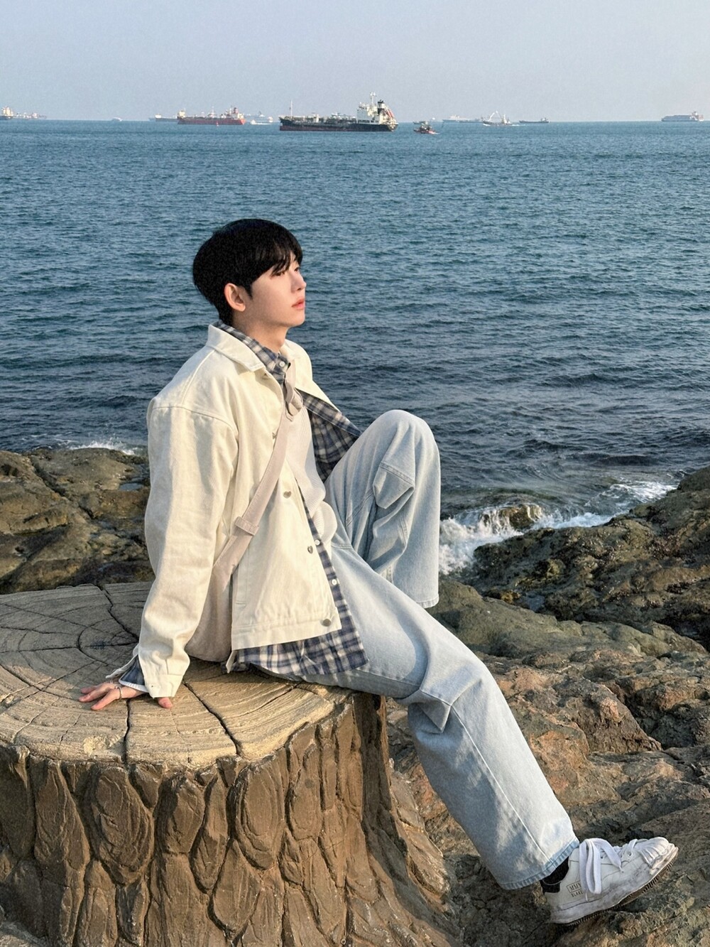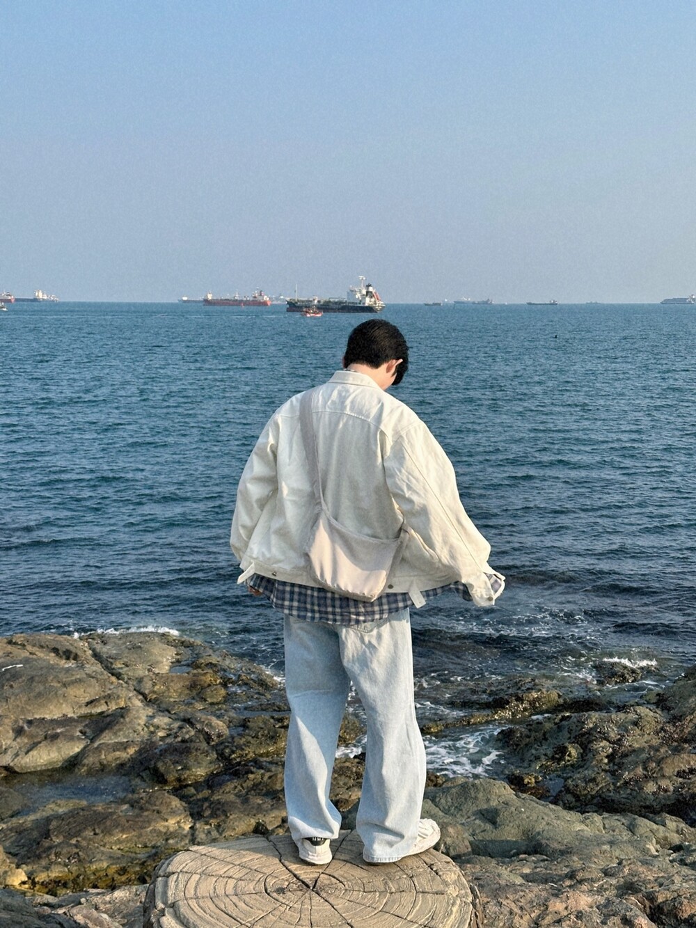 오버핏에 실버버튼으로 심플하게 포인트를 줬습니다