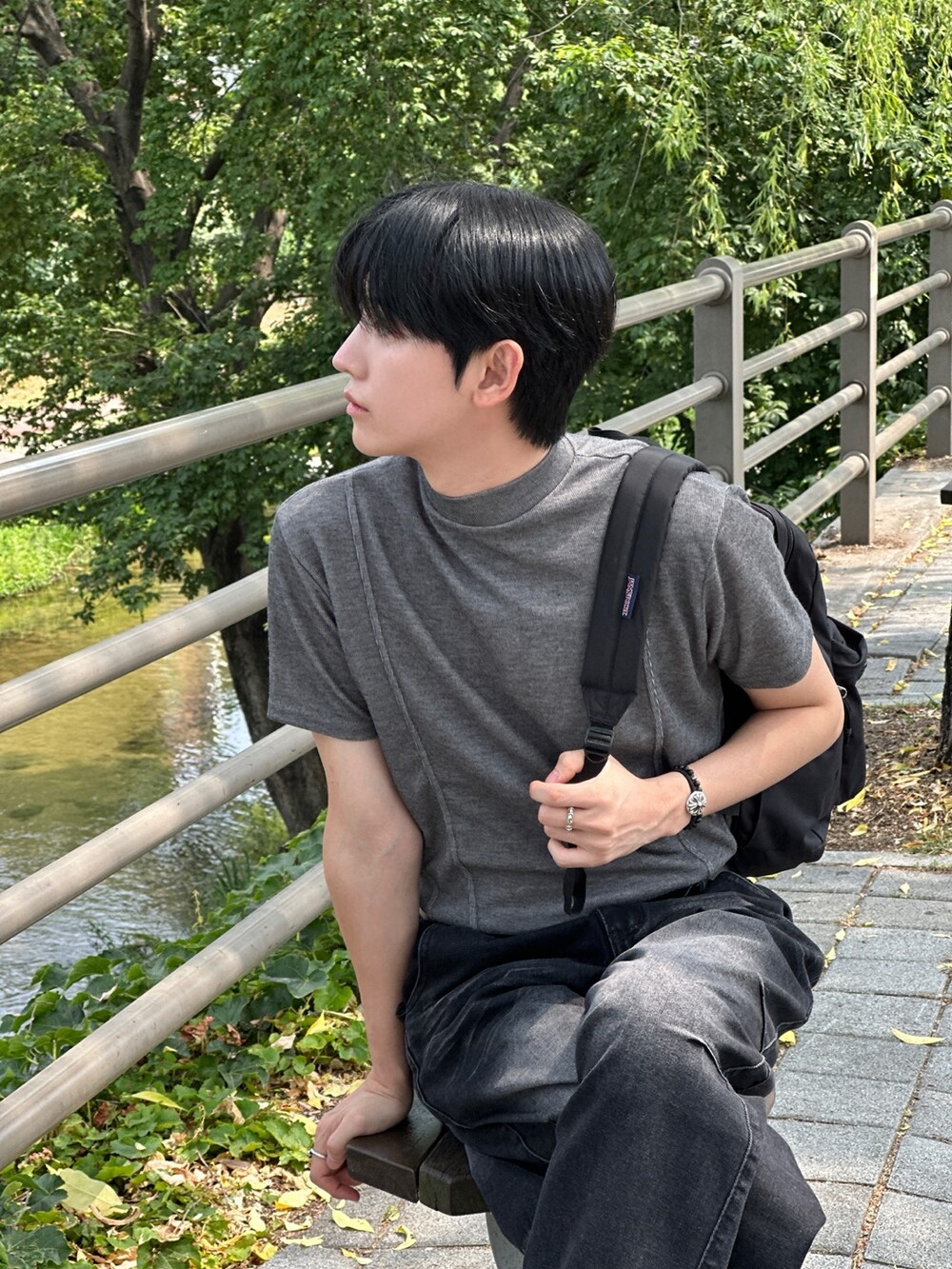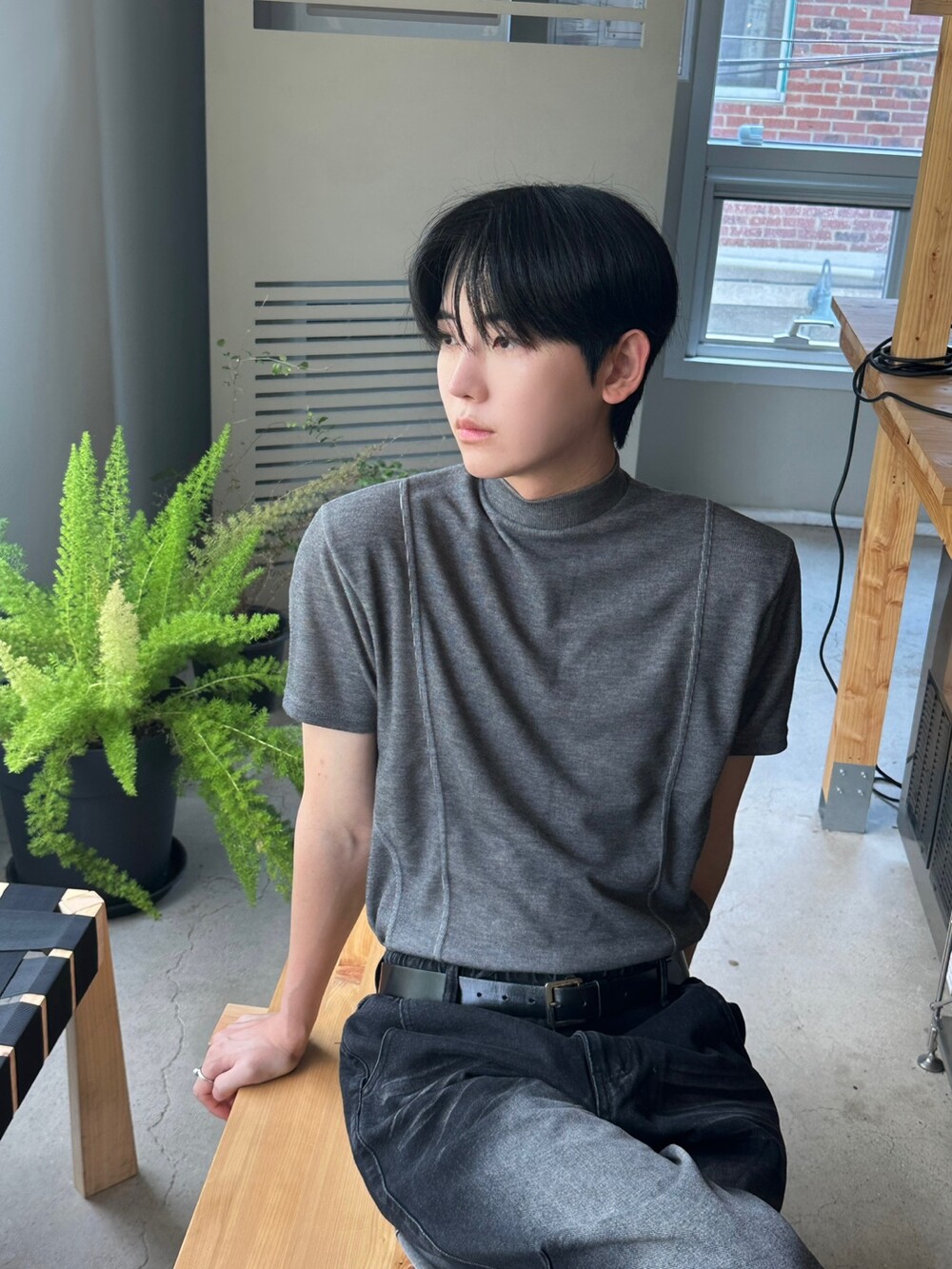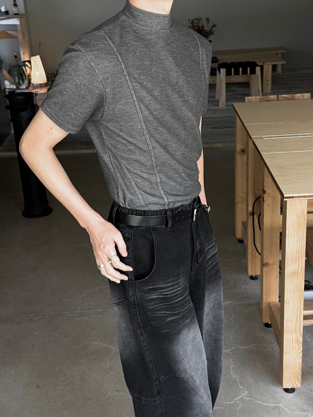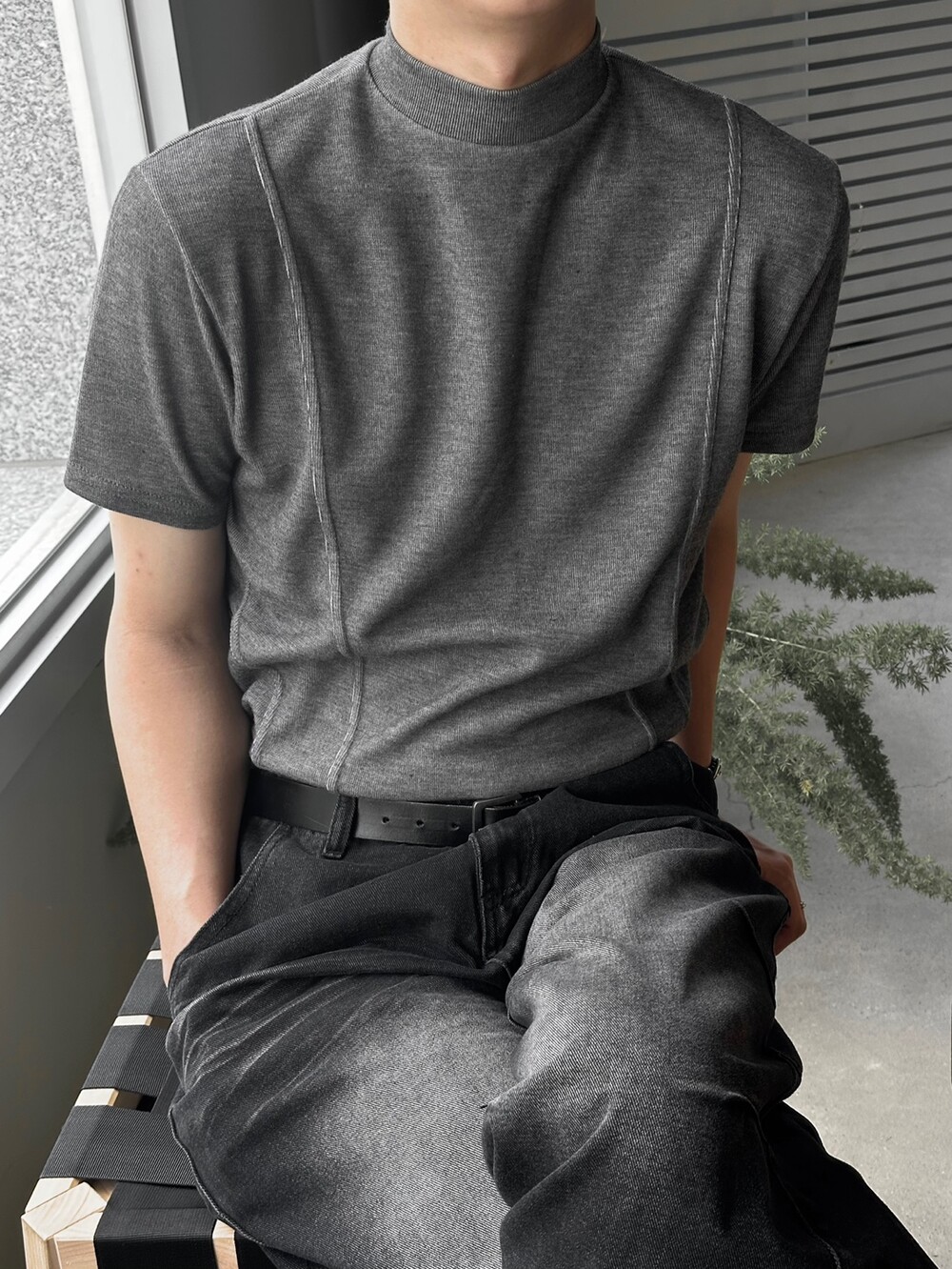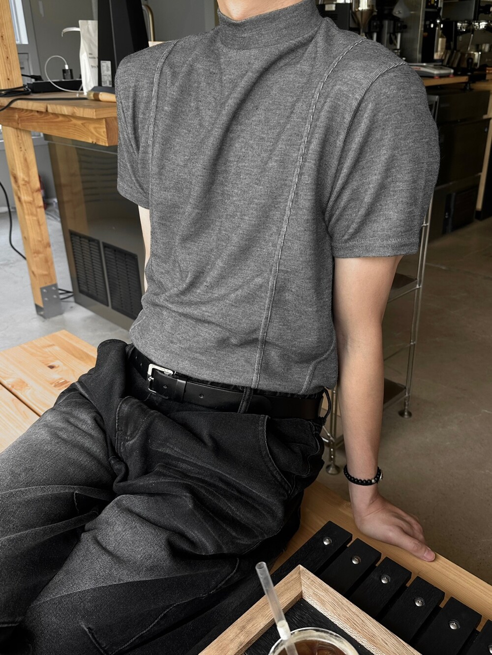 차분해보이는 무드를 주는 반목폴라 디테일에 밋밋하지 않게 앞판 절개포인트가 인상적인 티셔츠입니다 :)