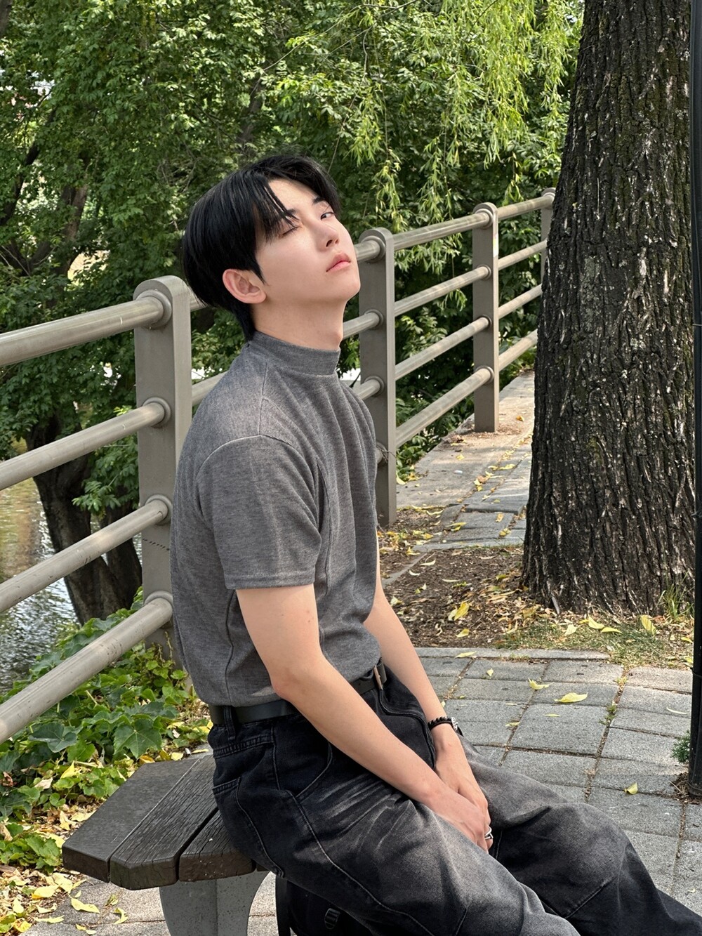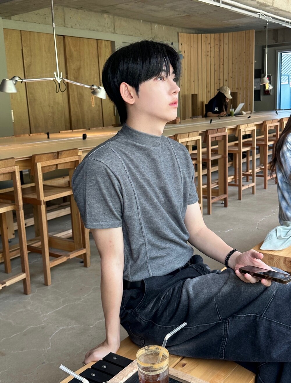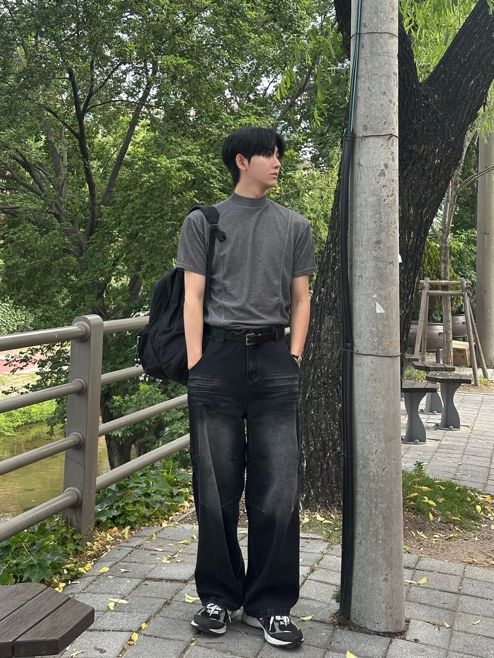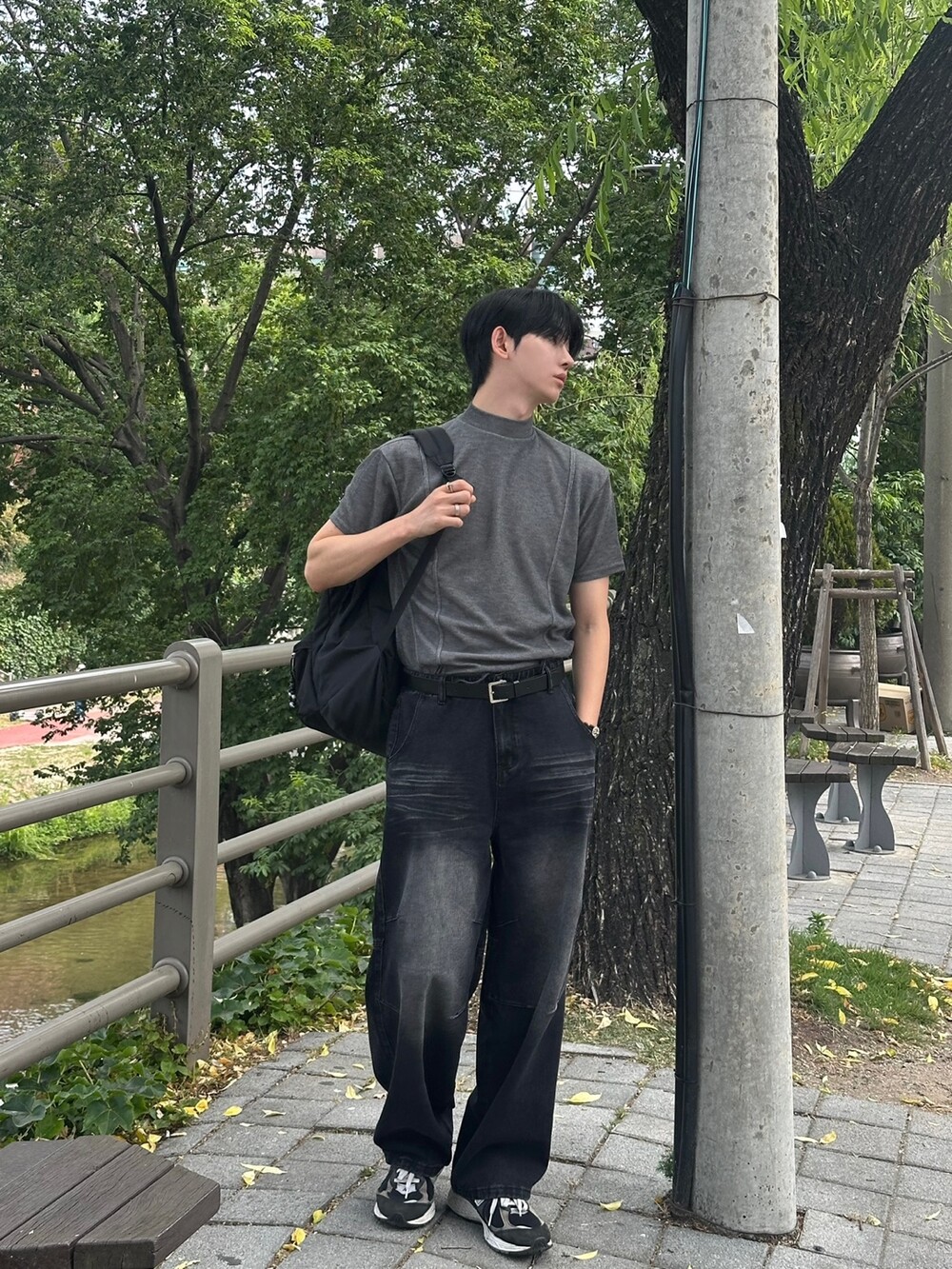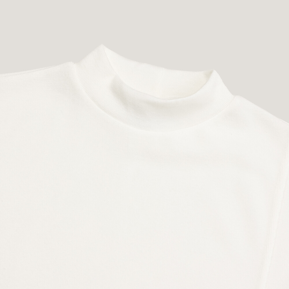 차분해보이는 무드를 주는 반목폴라 디테일에 밋밋하지 않게 앞판 절개포인트가 인상적인 티셔츠입니다 :)