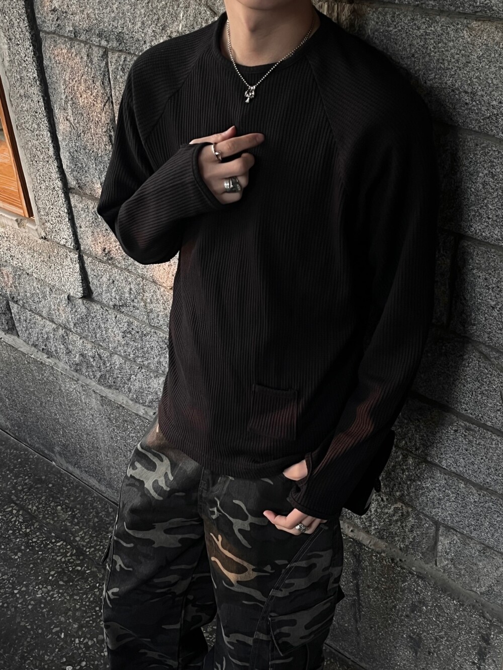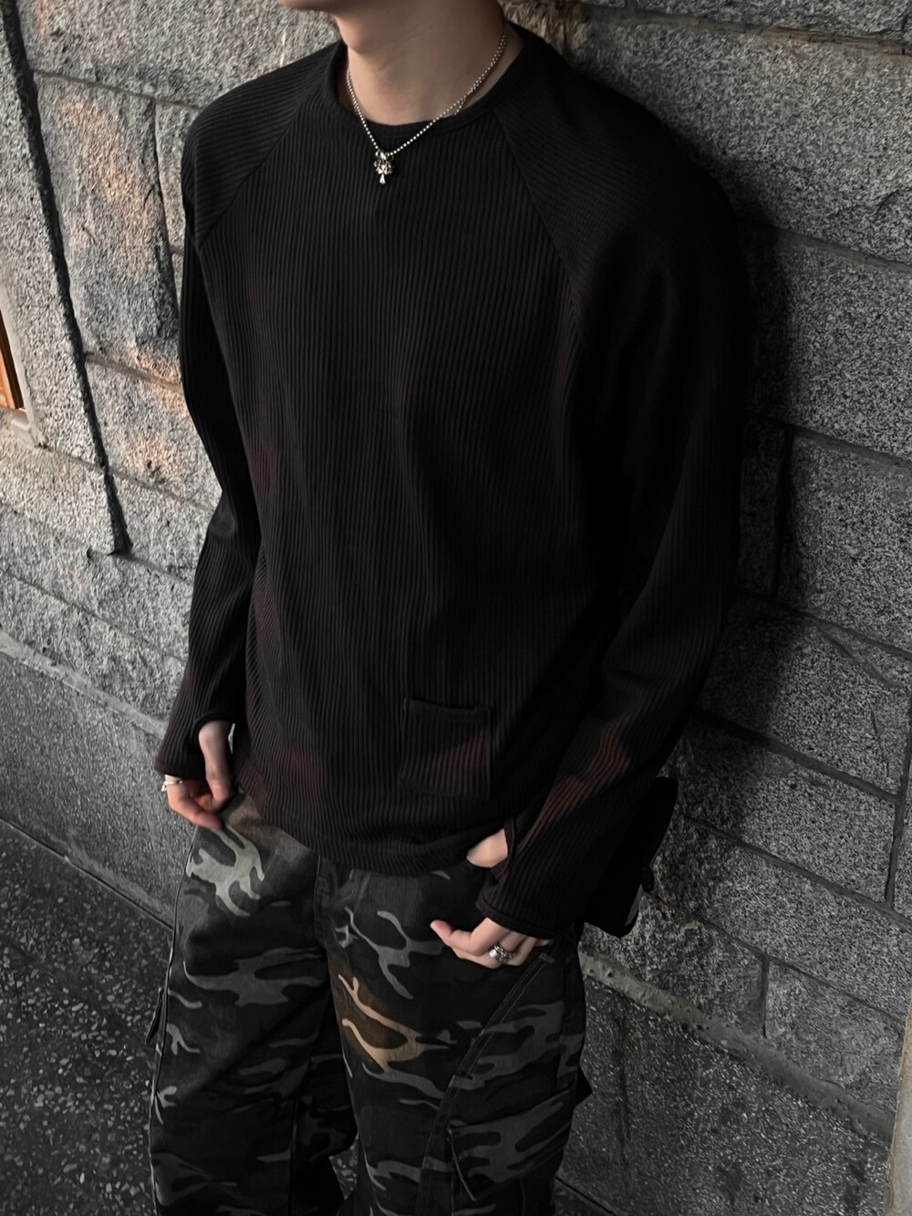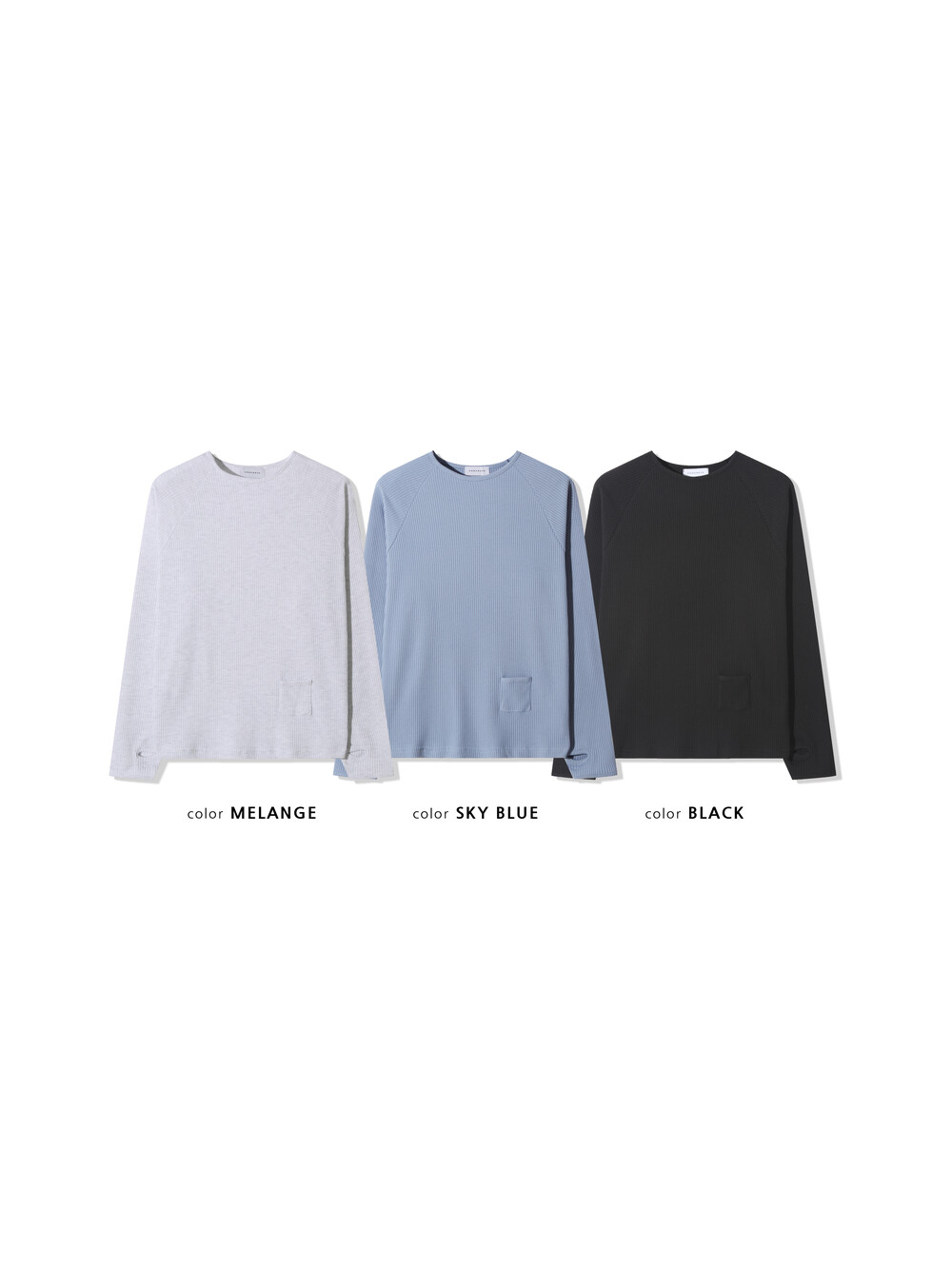 기본 와플 쭉티에 워머 디테일이 깔끔하게 들어간 티셔츠입니다
