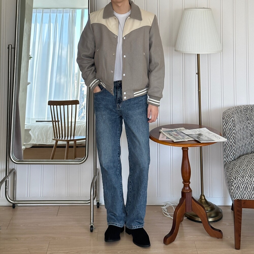 미니멀 바시티 자켓 스타디움 울 블루종 (2color)