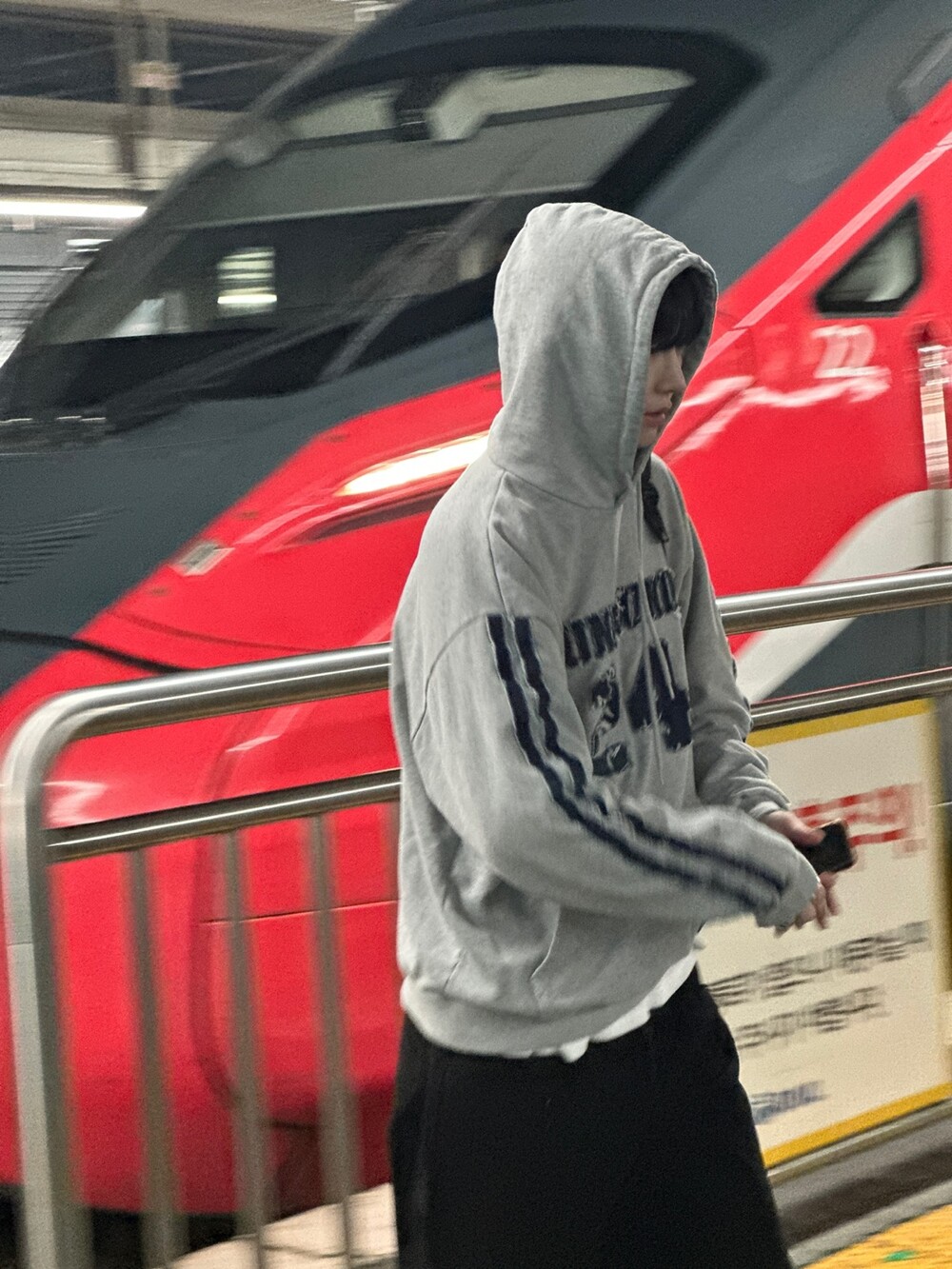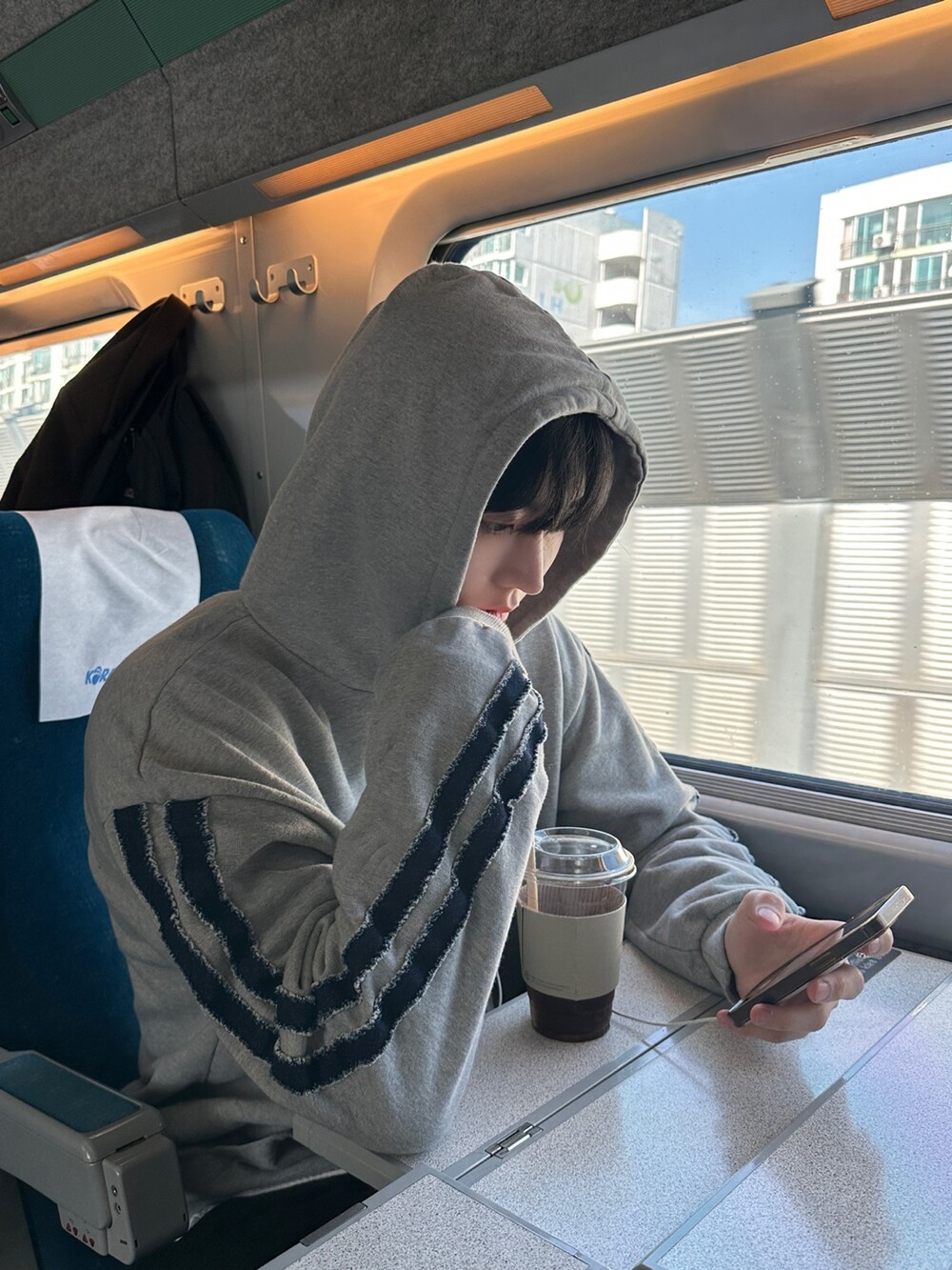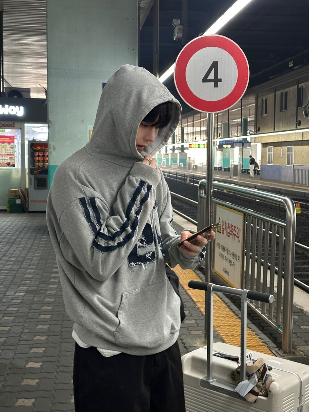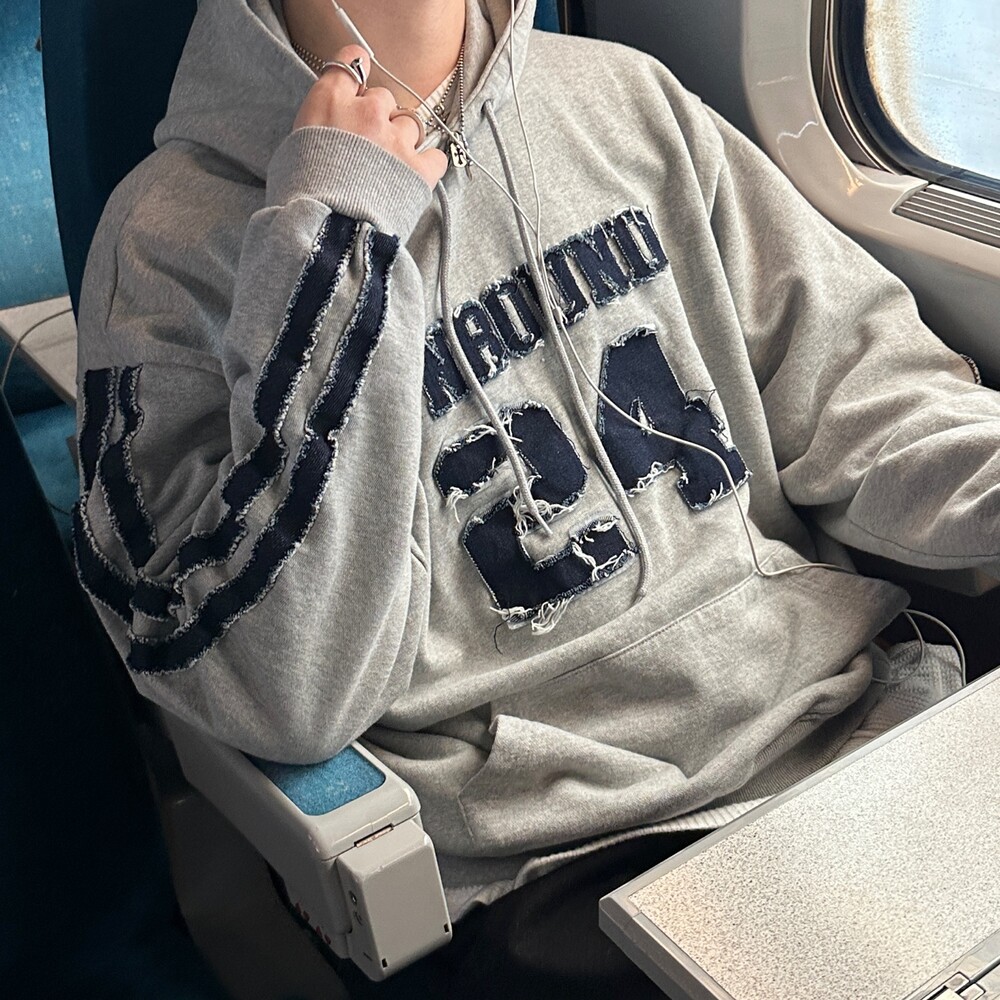 트랙디테일과 앞판 디테일이 데님으로 포인트 준 부분이