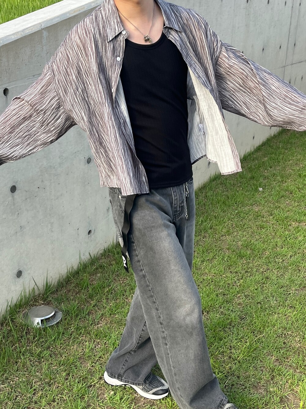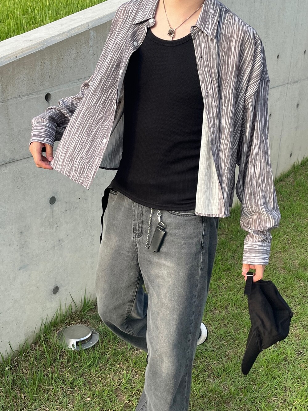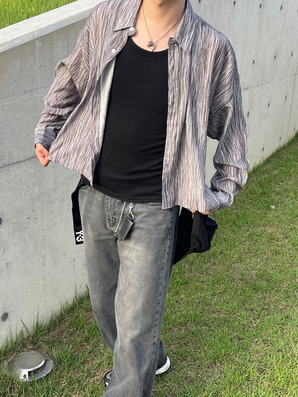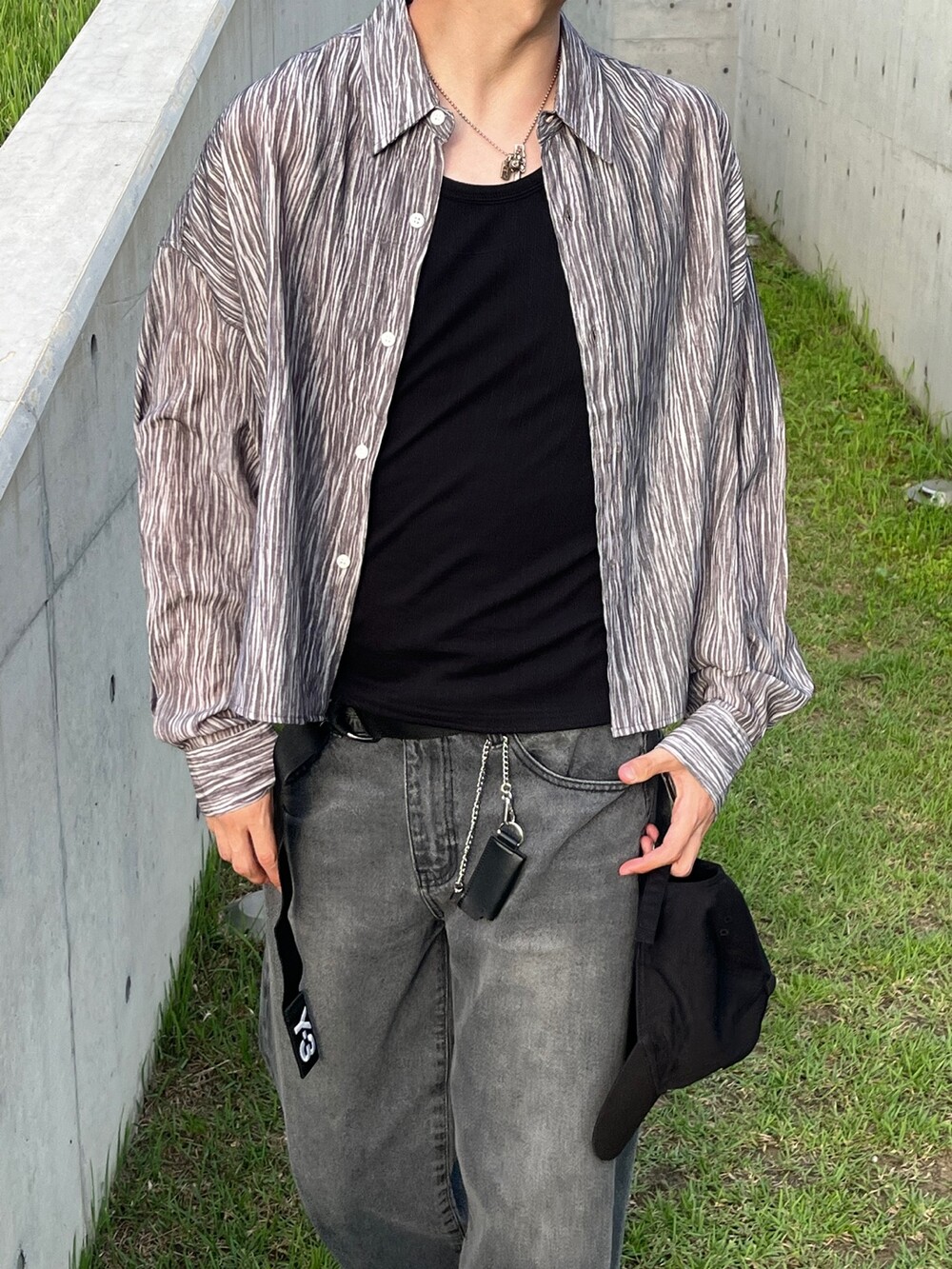트렌디한 크롭기장감의 링클 셔츠입니다 :)