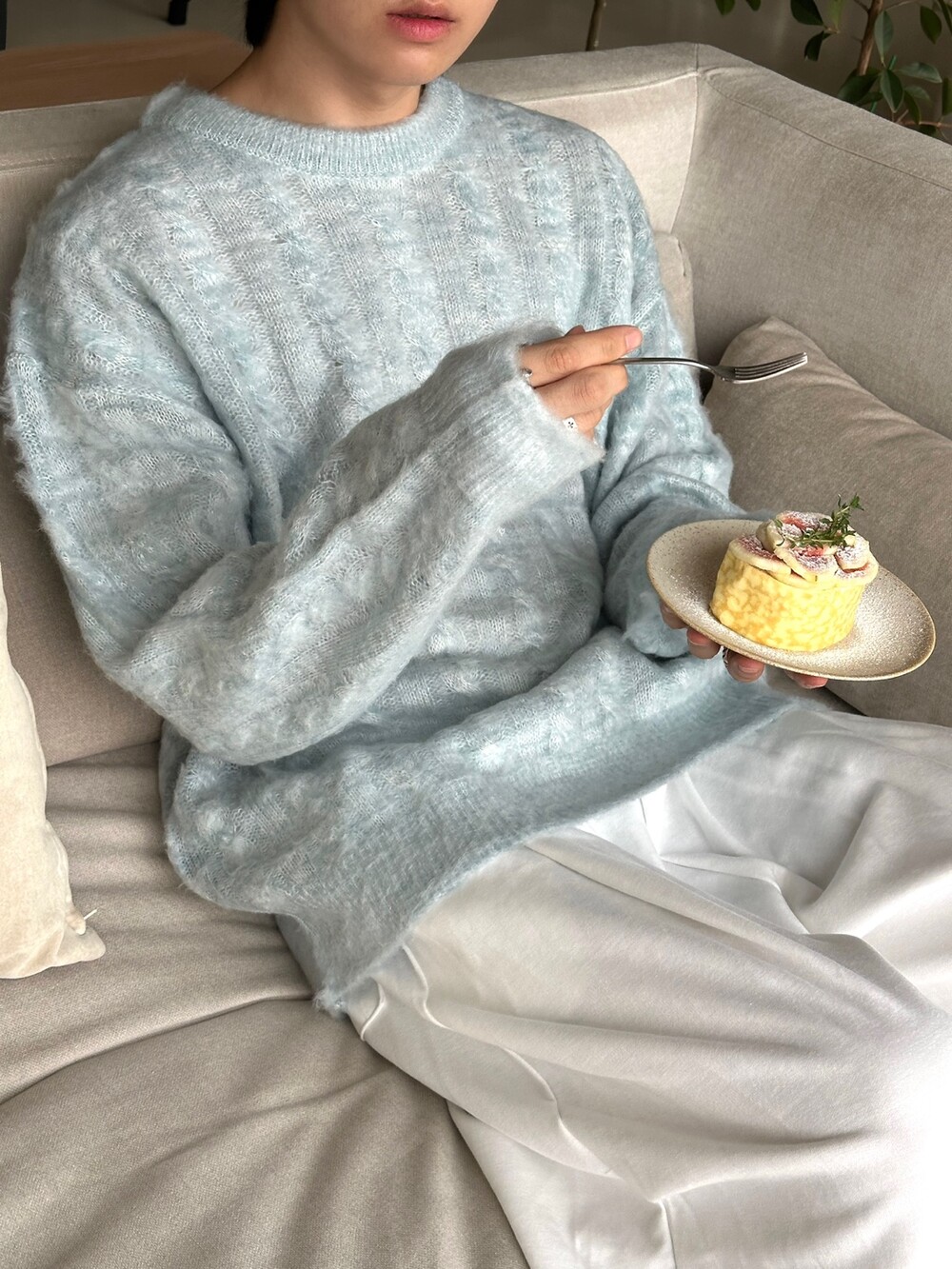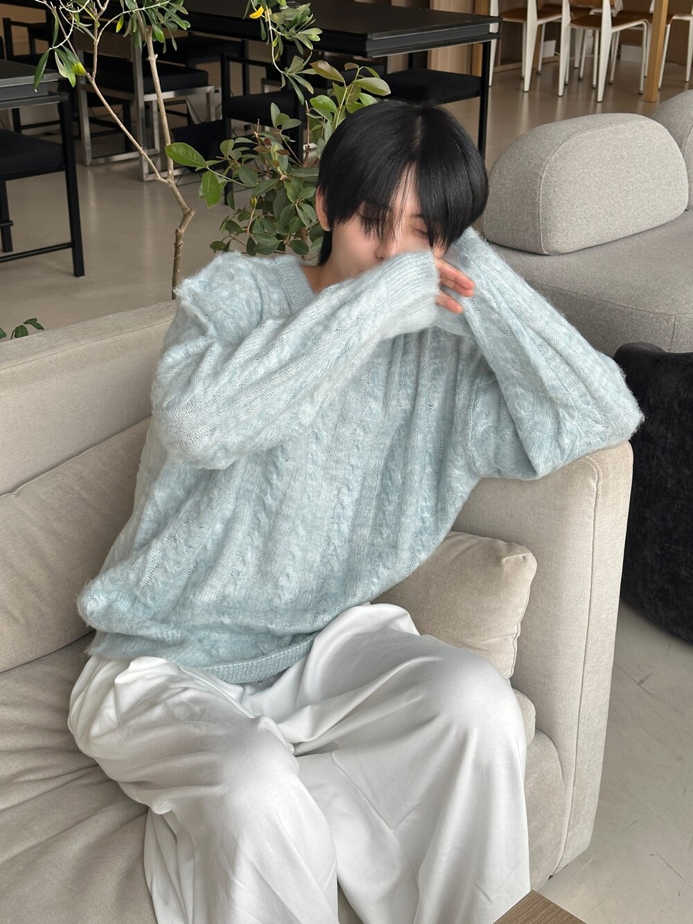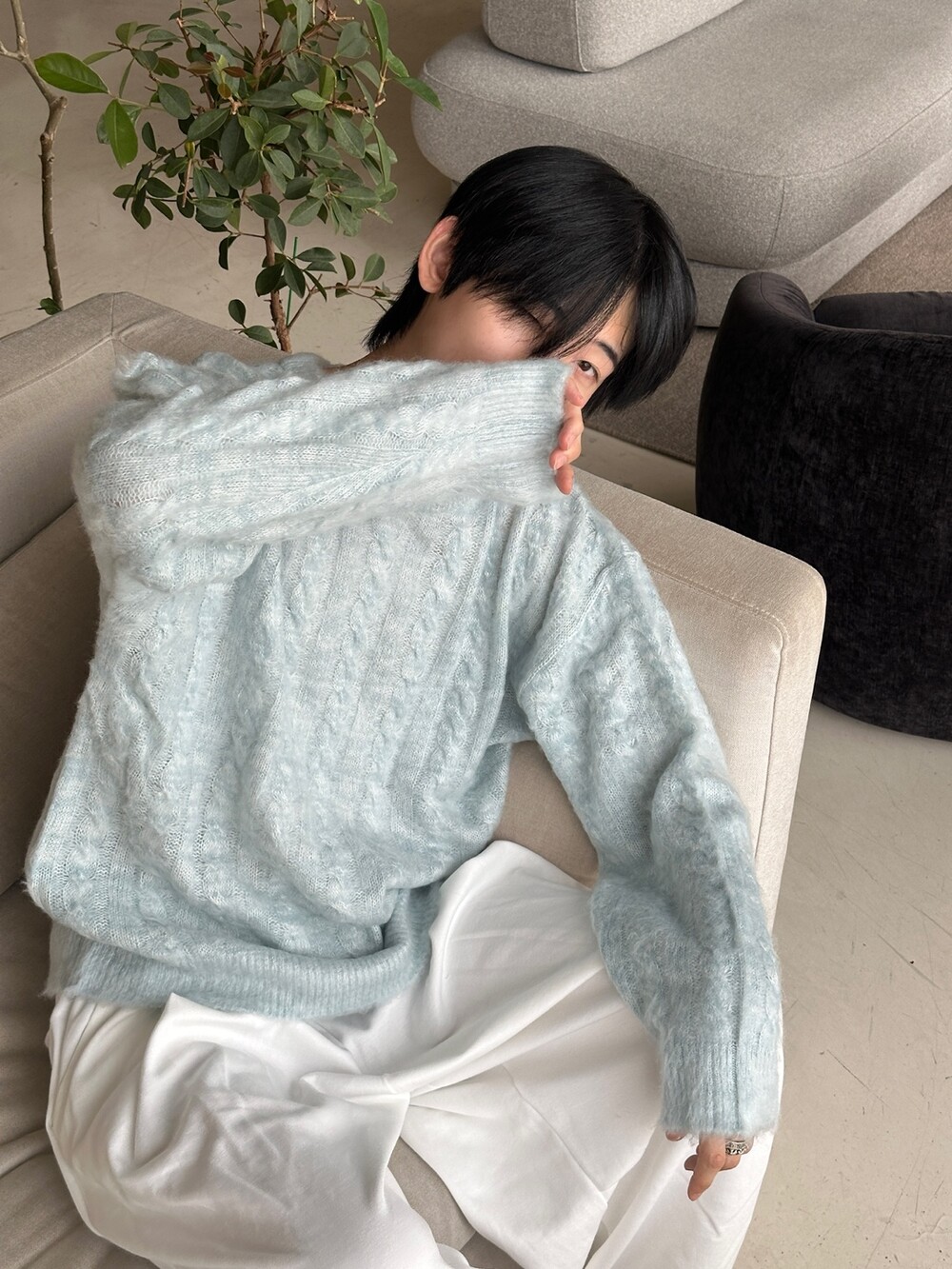 색감에 반해 데려온 포근한 꽈배기 니트입니다 :)