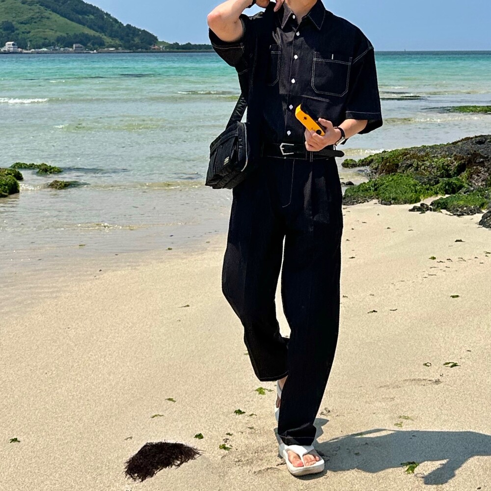 페이크 데님 셋업 팬츠 (2color)