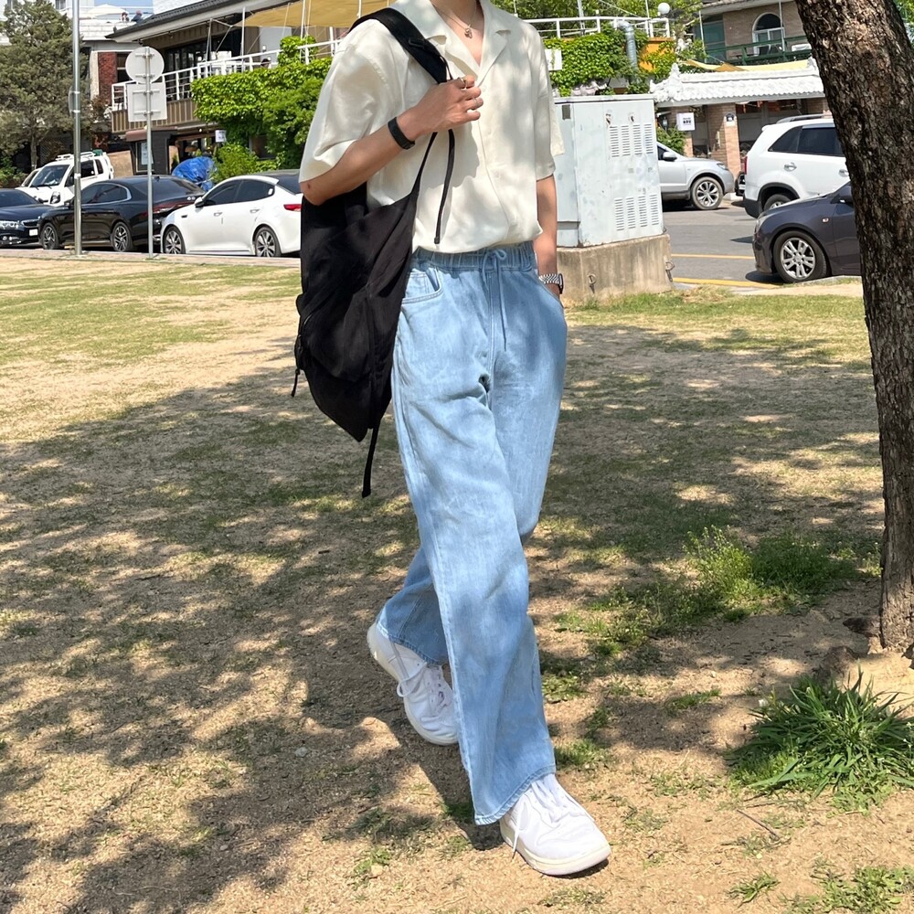 쿨 린넨 밴딩 와이드 팬츠
