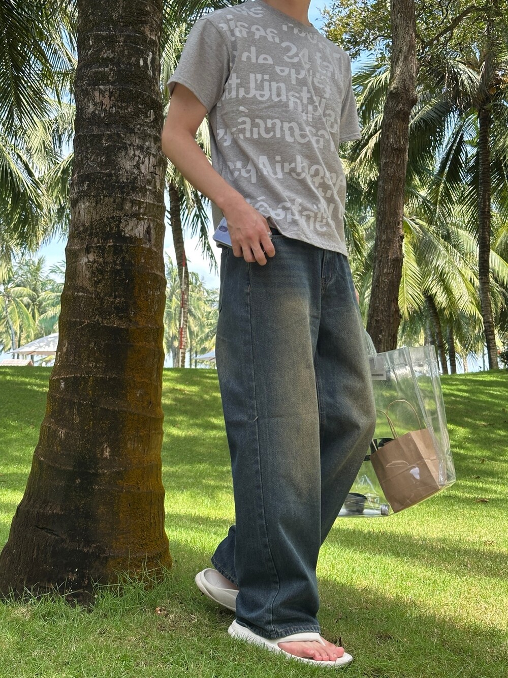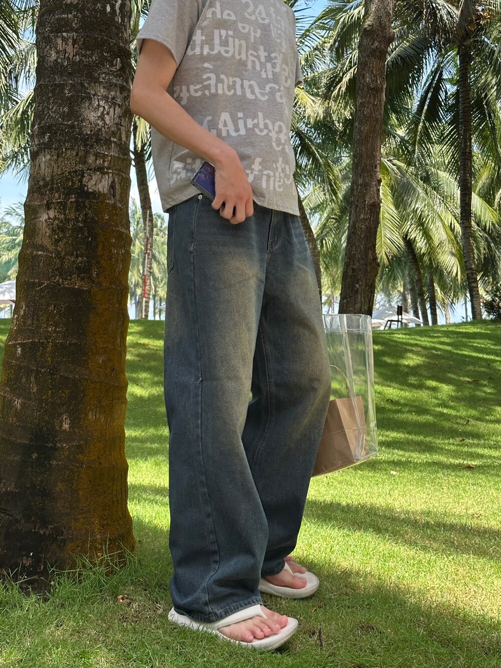 이랒로 쭉 떨어지는 와이드한 실루엣으로 어디에나 착용하기 좋습니다