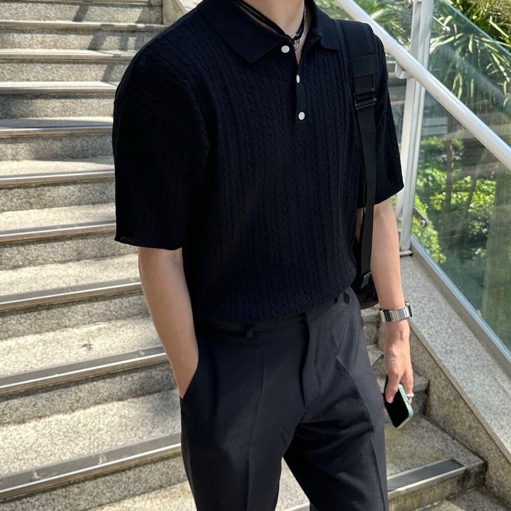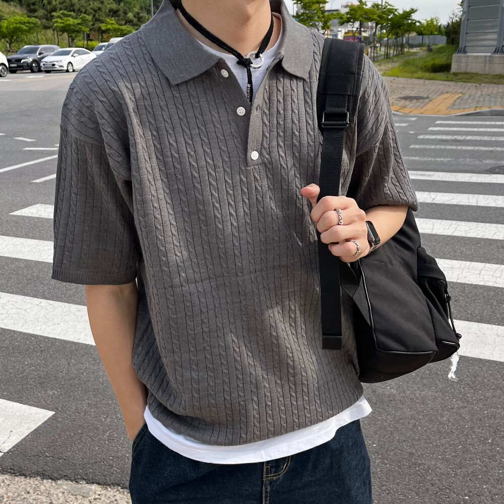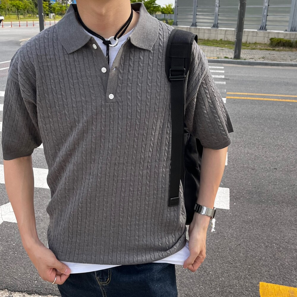 꽈배기 카라 반팔니트 (5color)