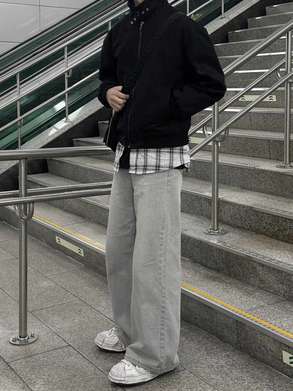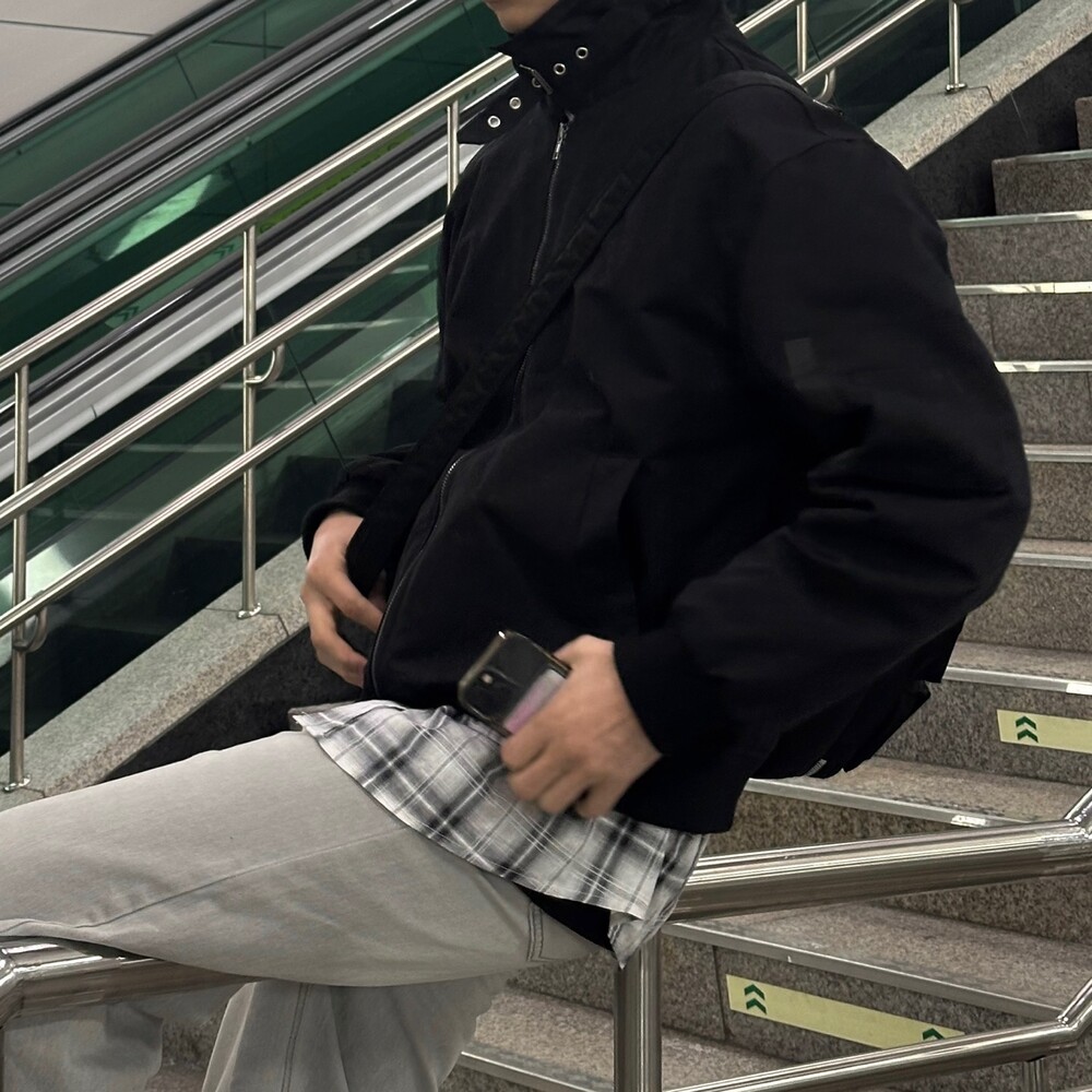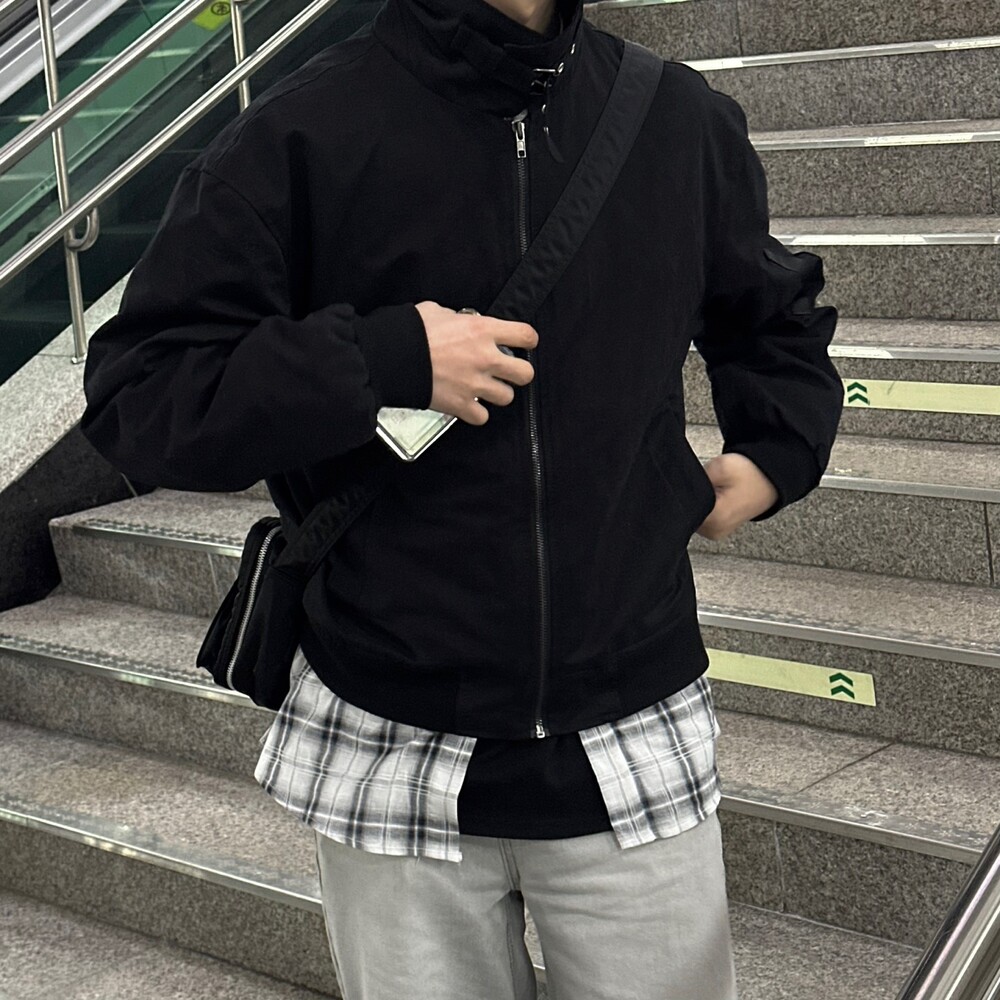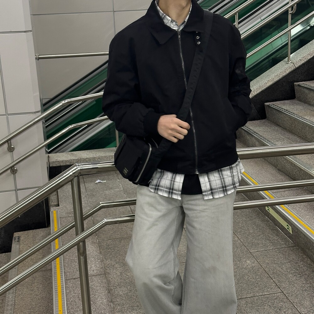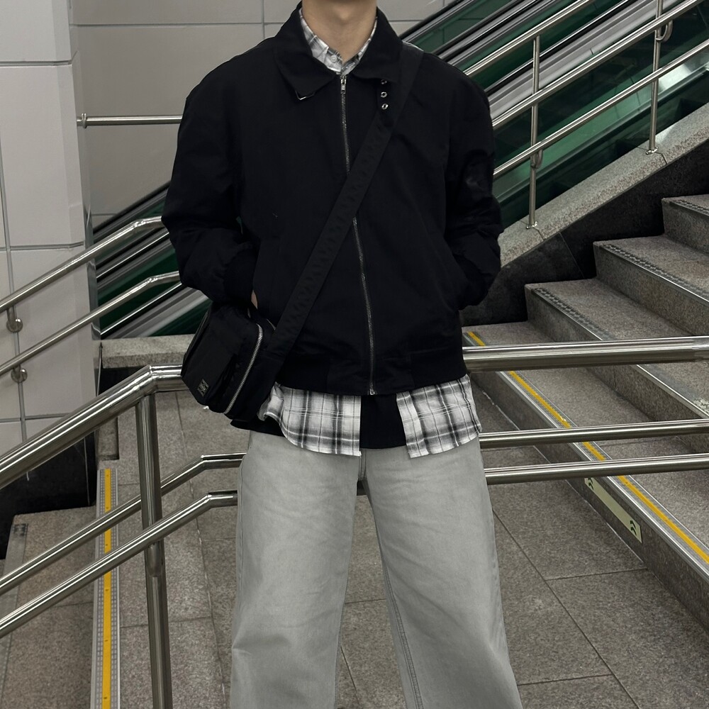 너무 잘 잡히는 크롭기장의 항공점퍼 핏에