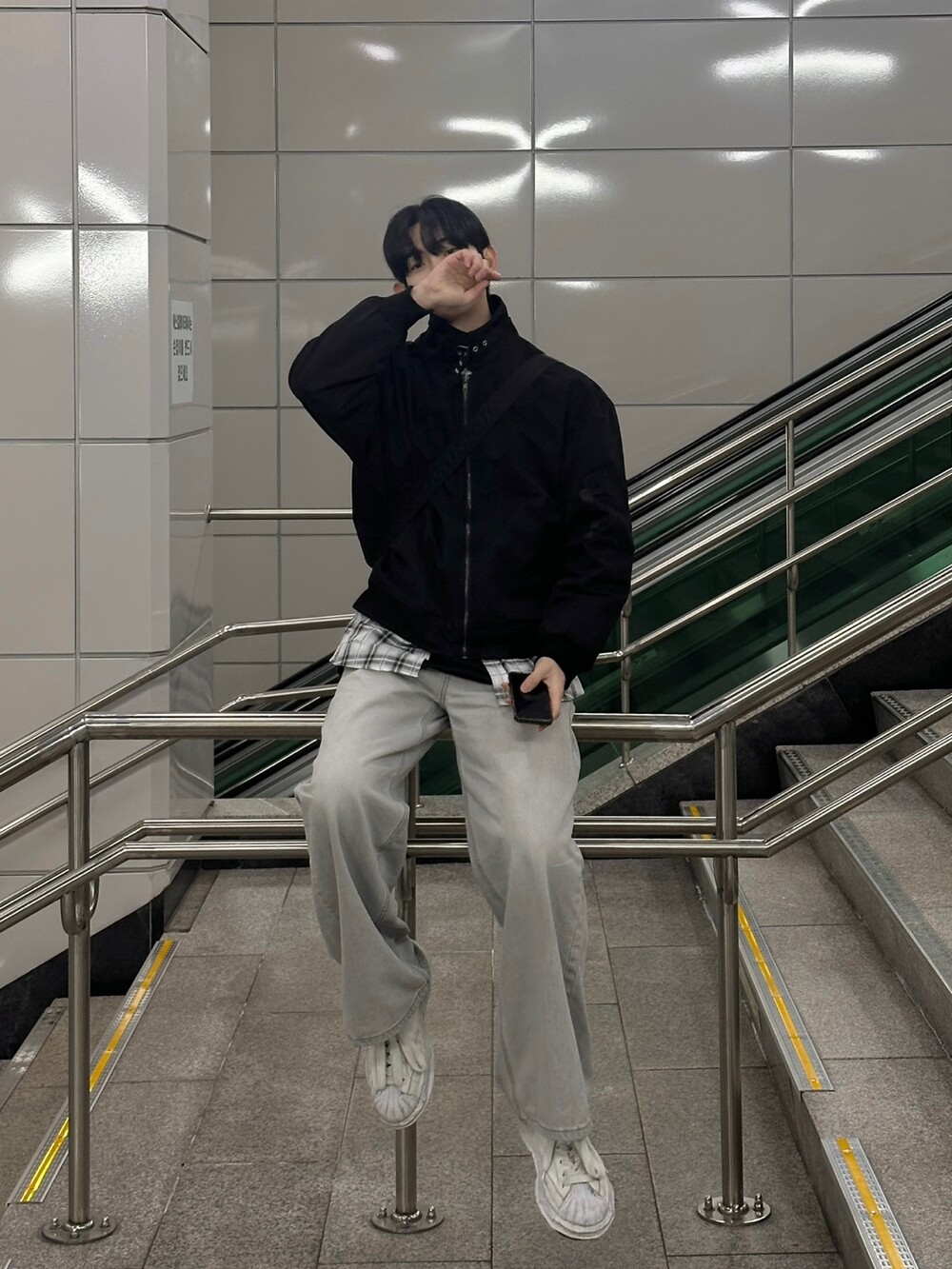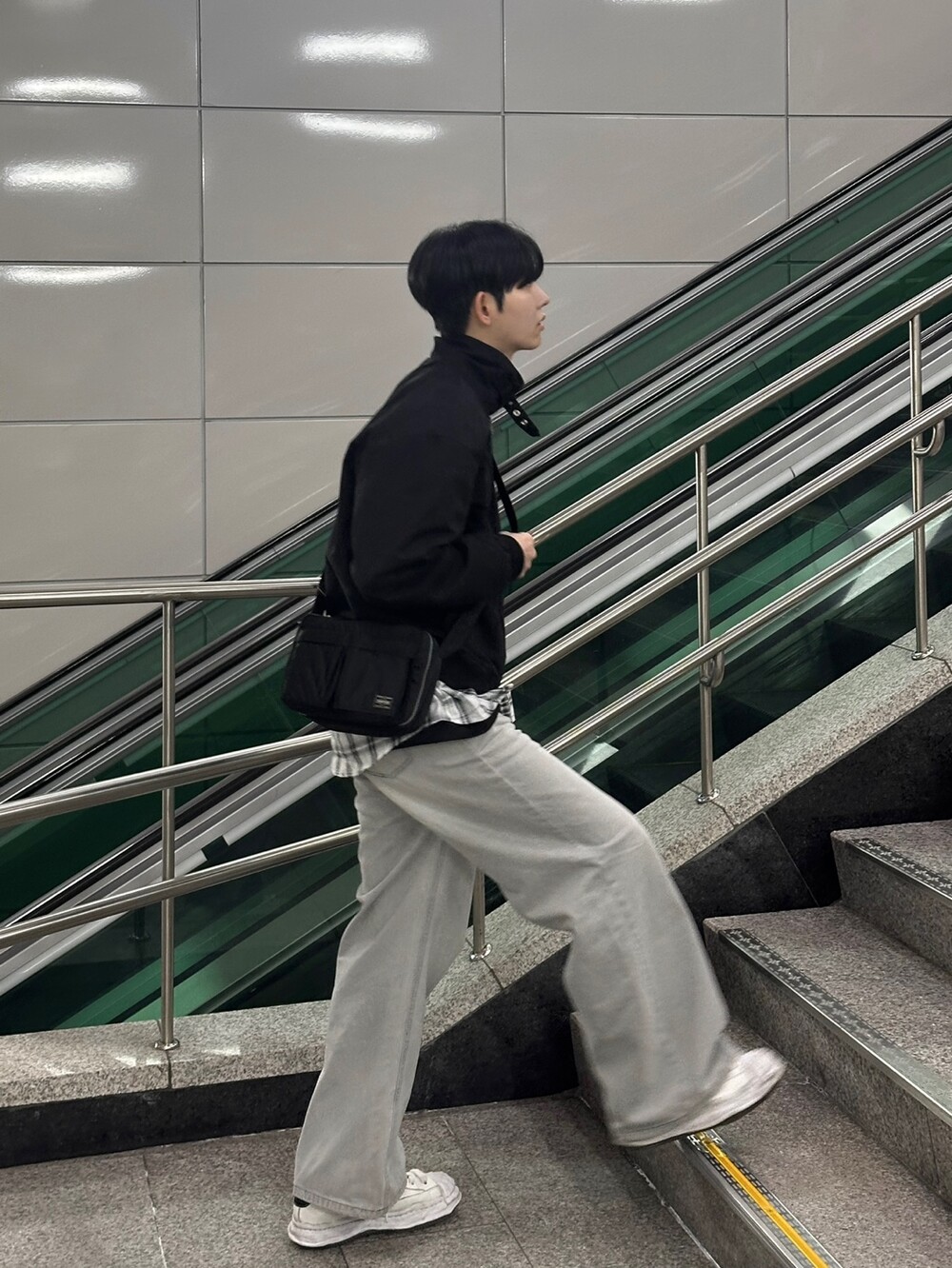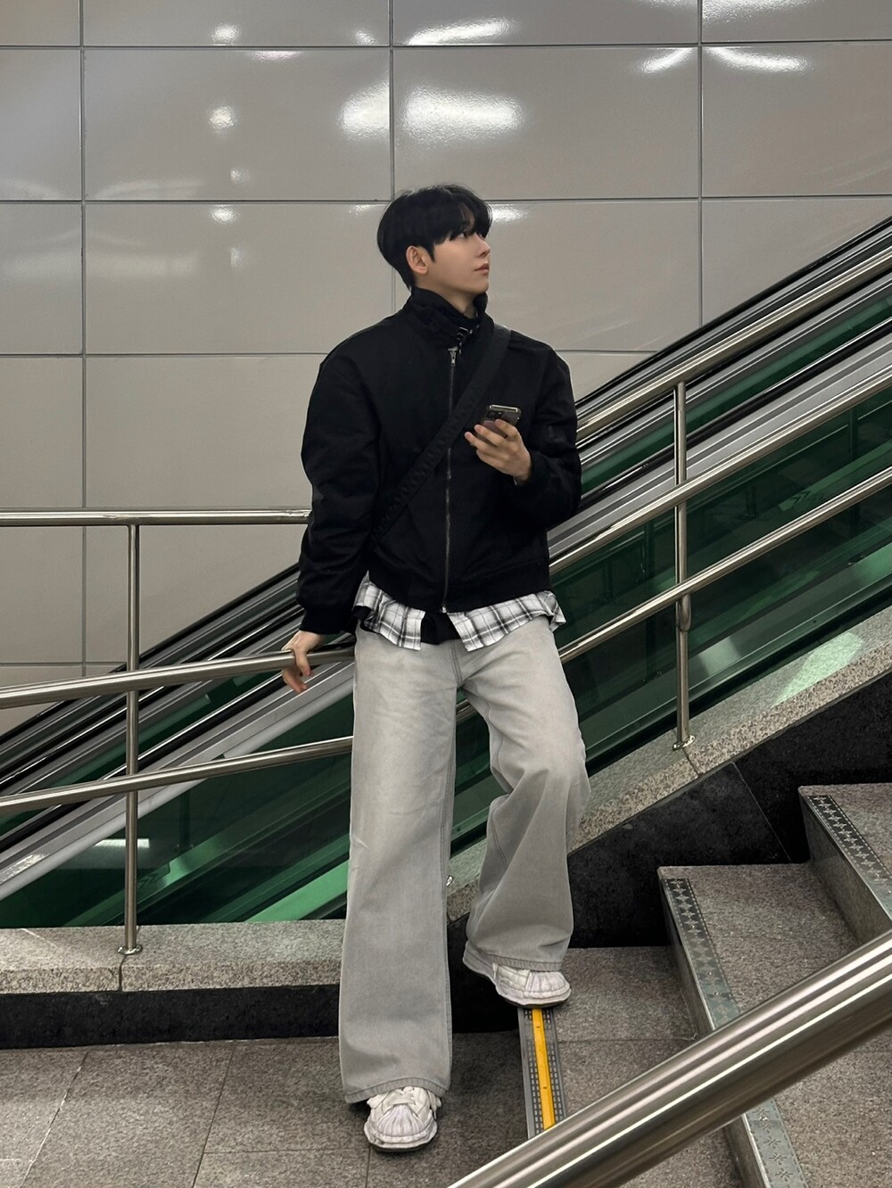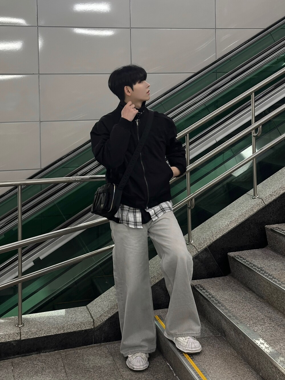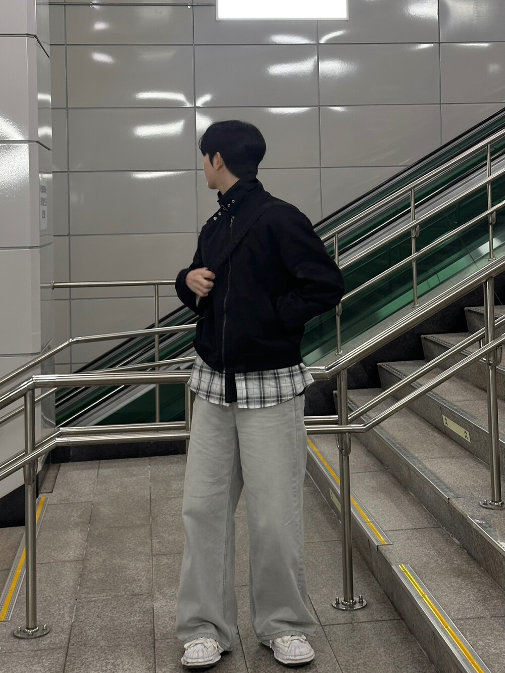 너무 잘 잡히는 크롭기장의 항공점퍼 핏에