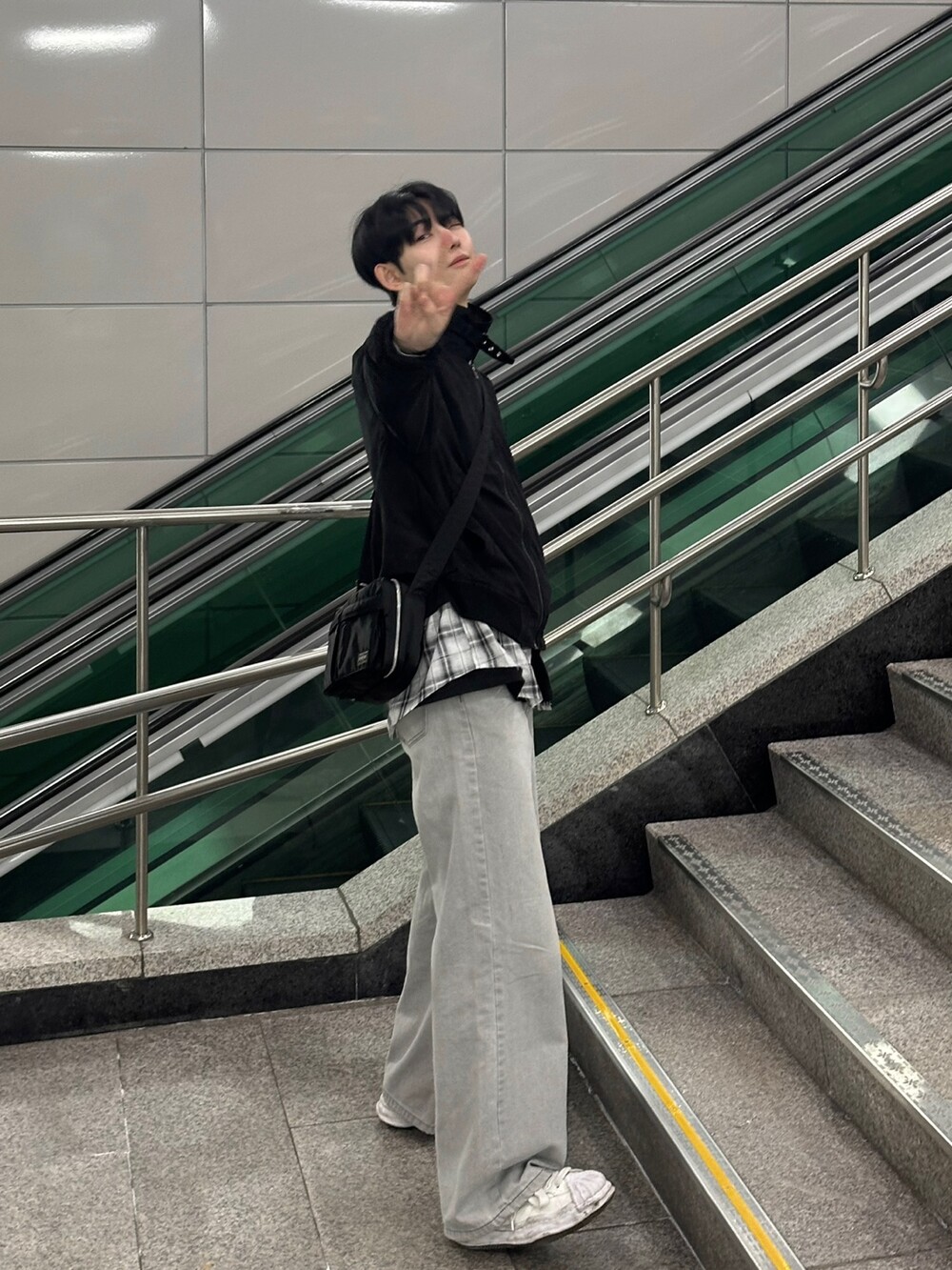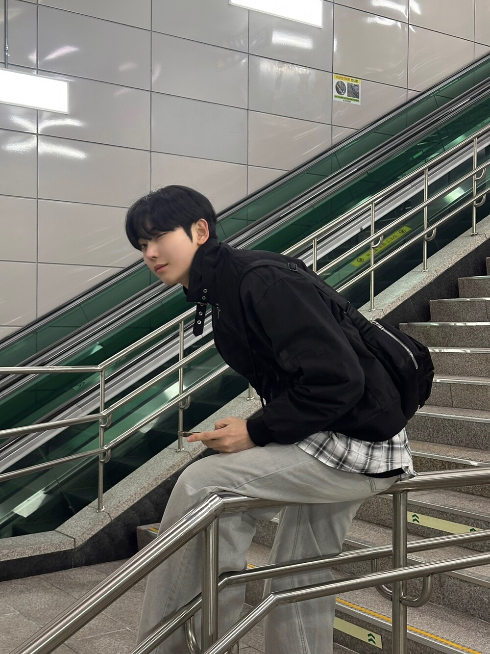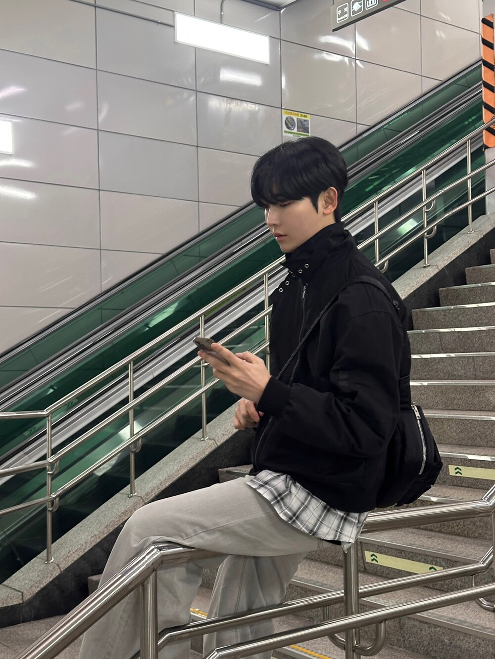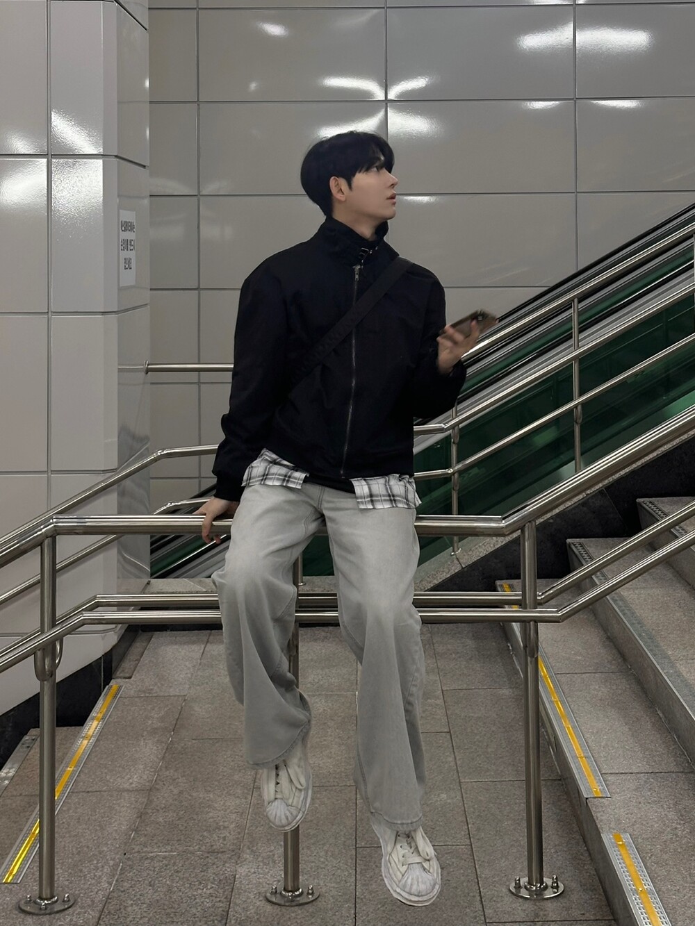 너무 잘 잡히는 크롭기장의 항공점퍼 핏에