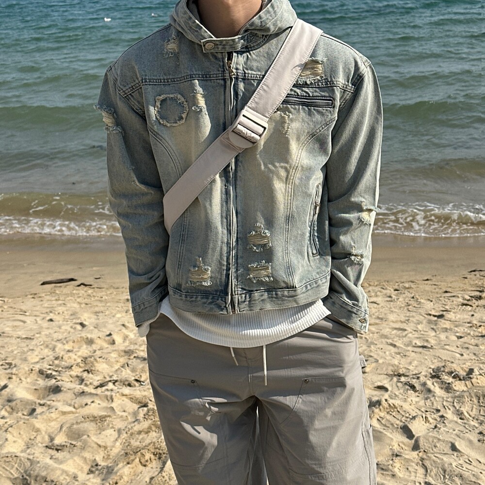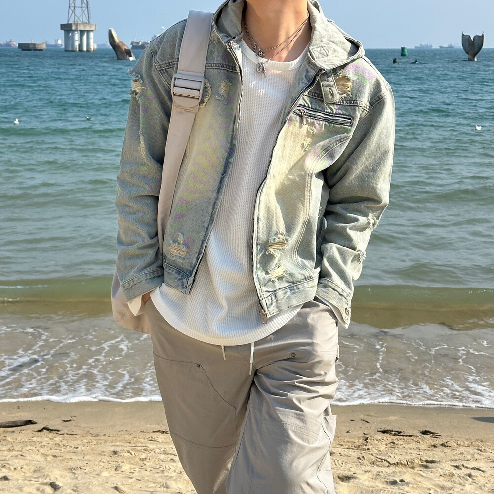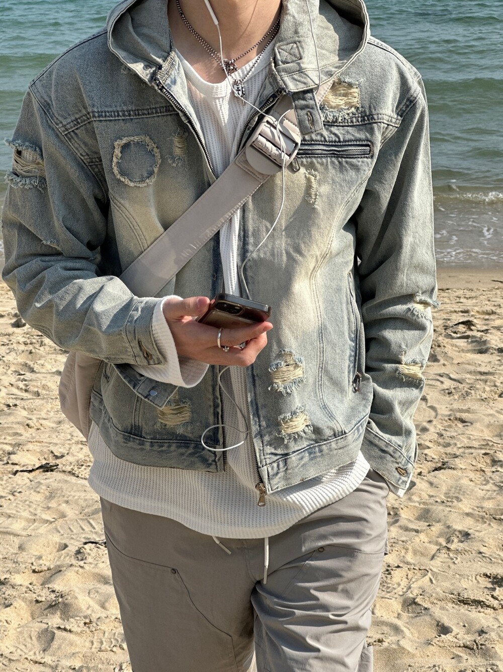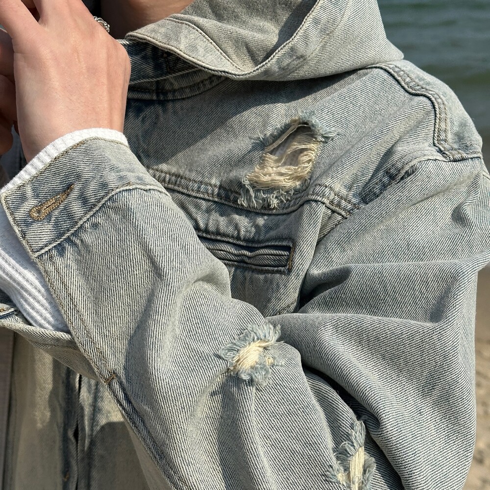 후드를 정말 좋아하는데 데님 후드에 빈티지한 크랙 데미지까지