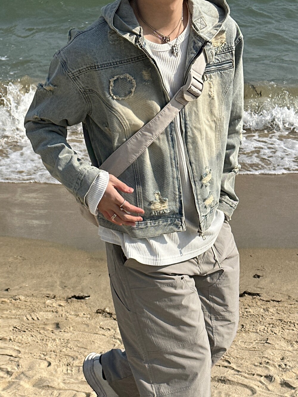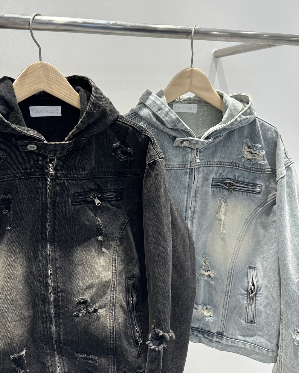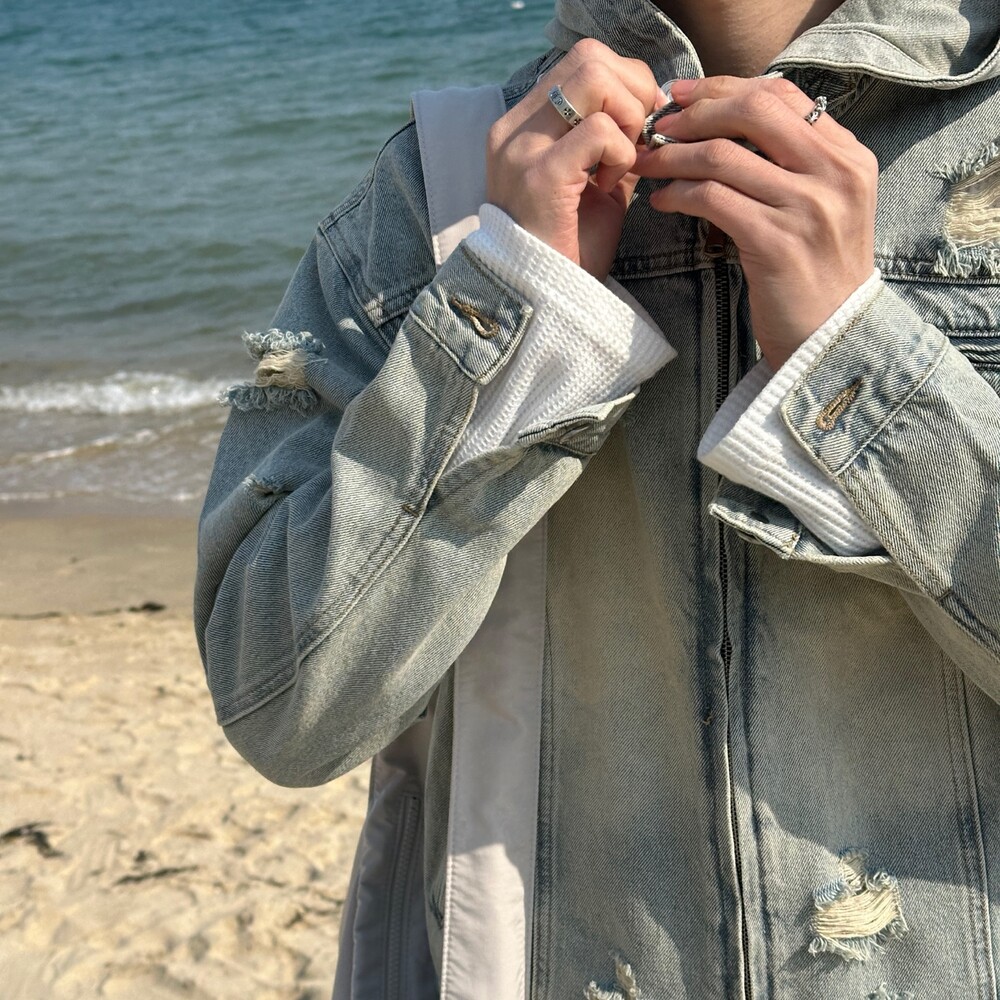 후드를 정말 좋아하는데 데님 후드에 빈티지한 크랙 데미지까지