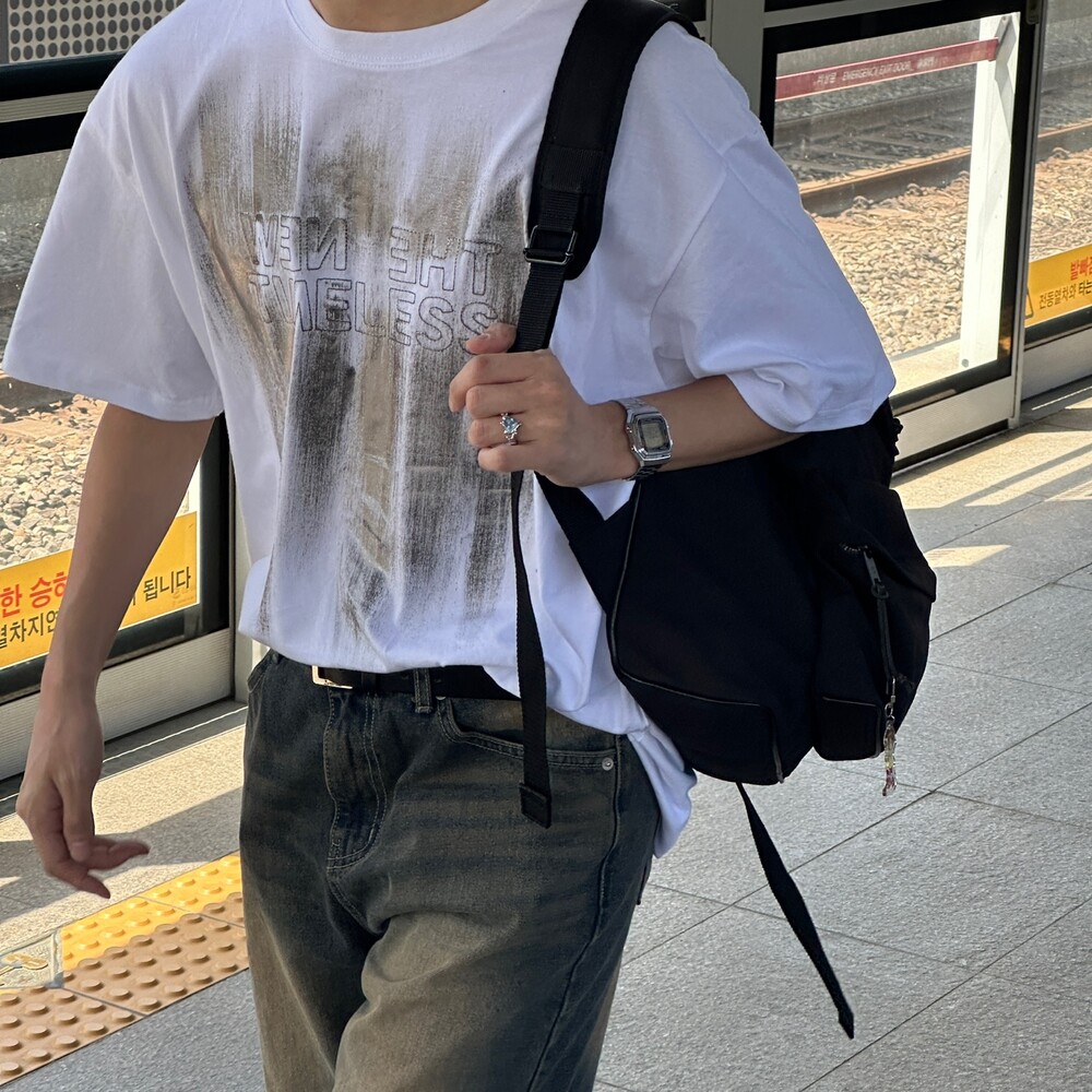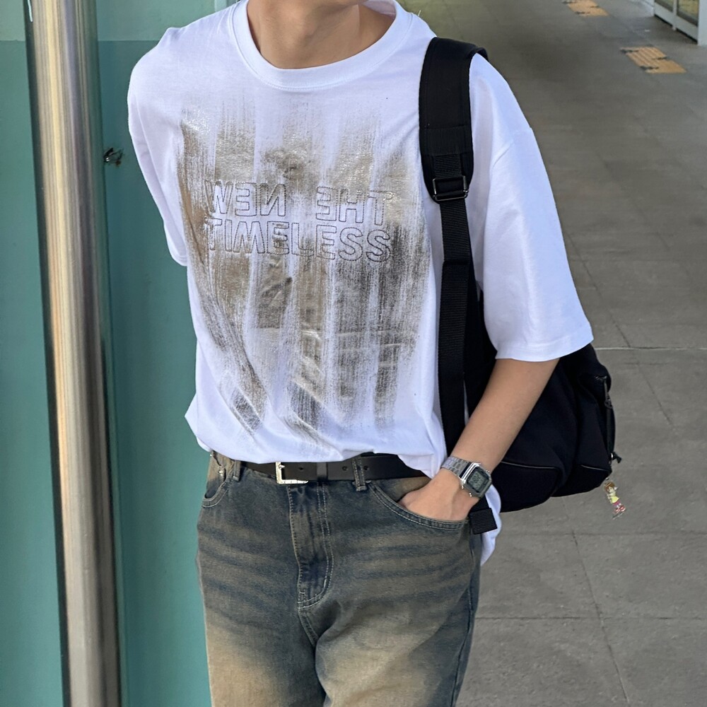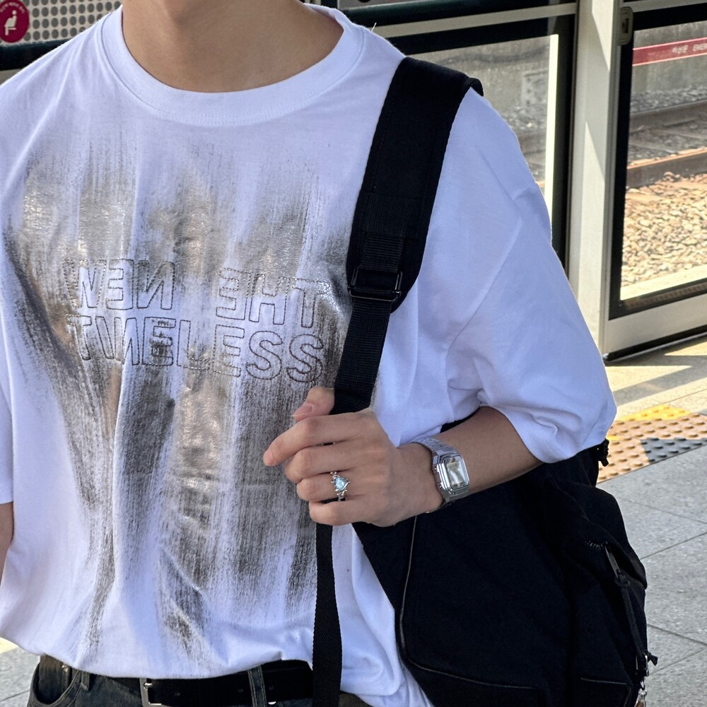 호일 나염 자수 샌드 워싱 티셔츠 (2color)