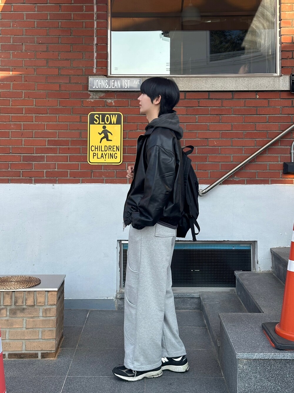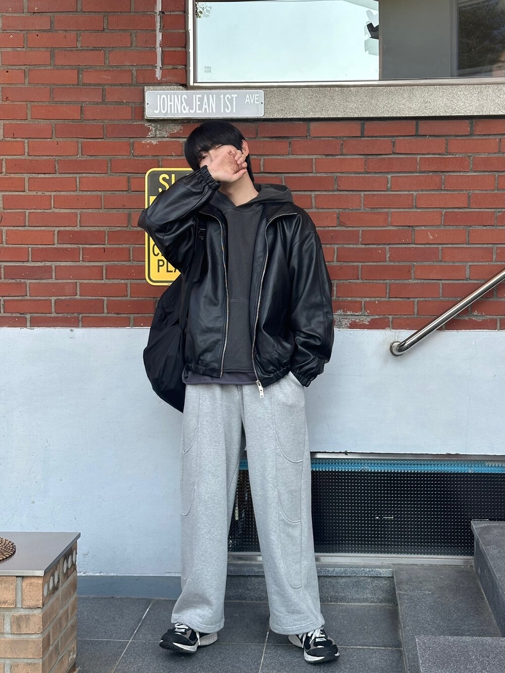 멋스럽게 데님팬츠와 코디하고 싶었지만 식상해서 스웻 팬츠랑