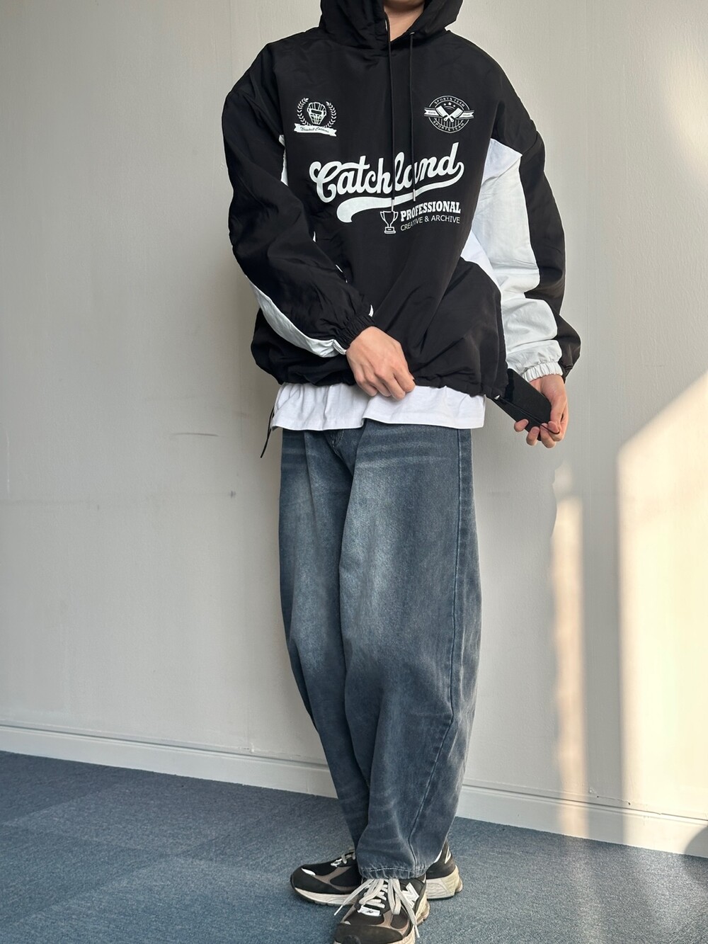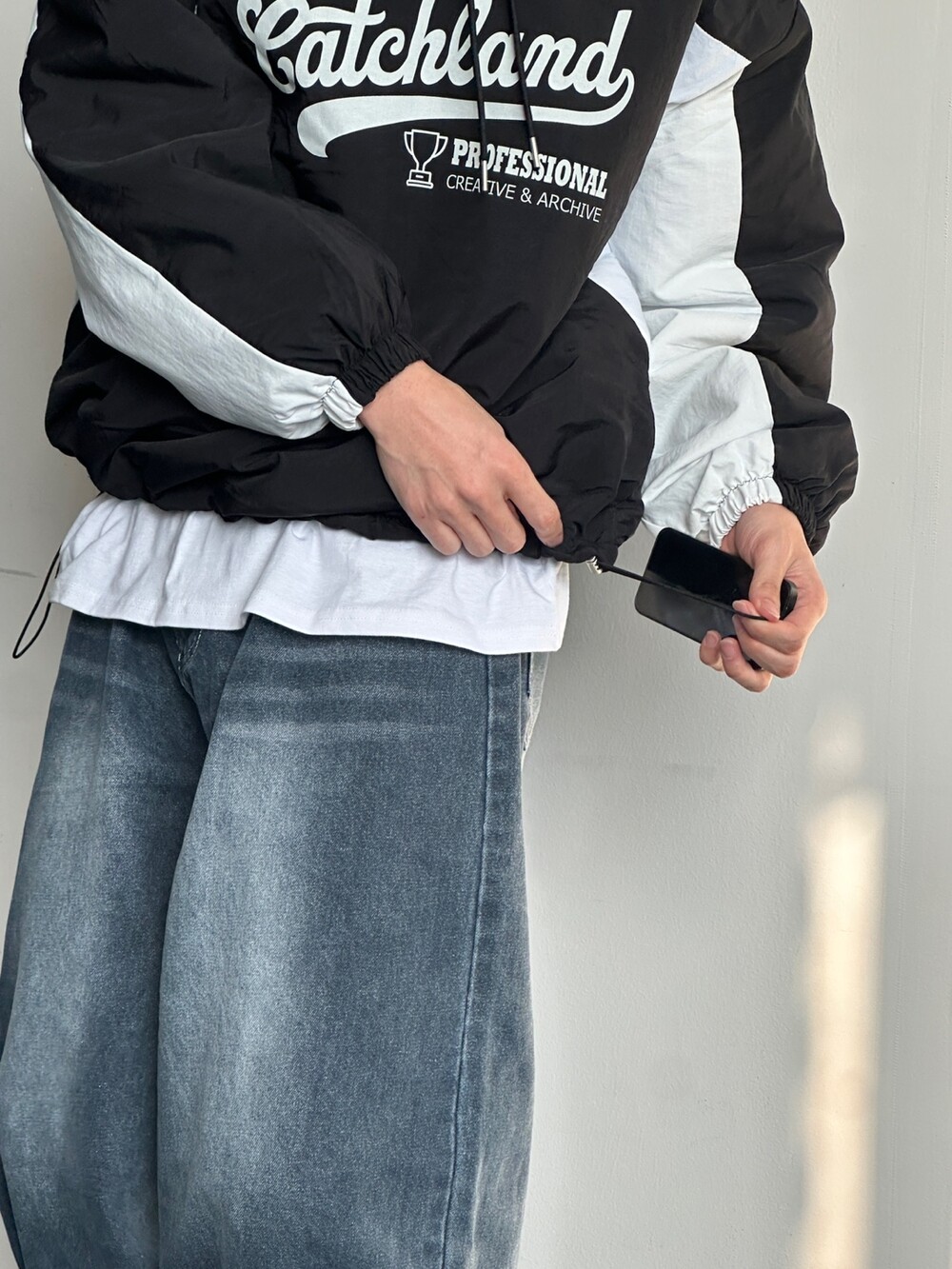 나일론 재질로 편하게 착용 가능하며 통이 넓어 속 안에 레이어드로