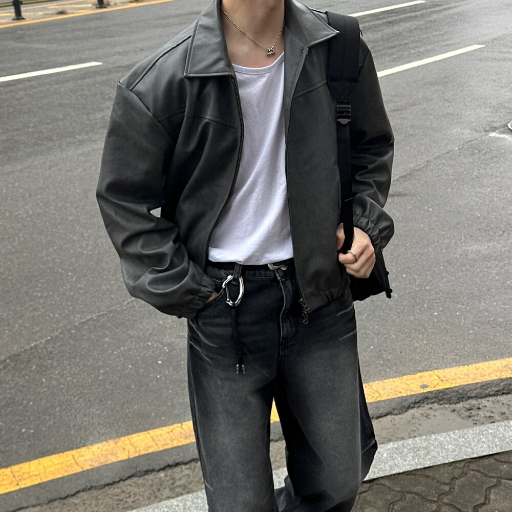 크랙 레더자켓 (2color)