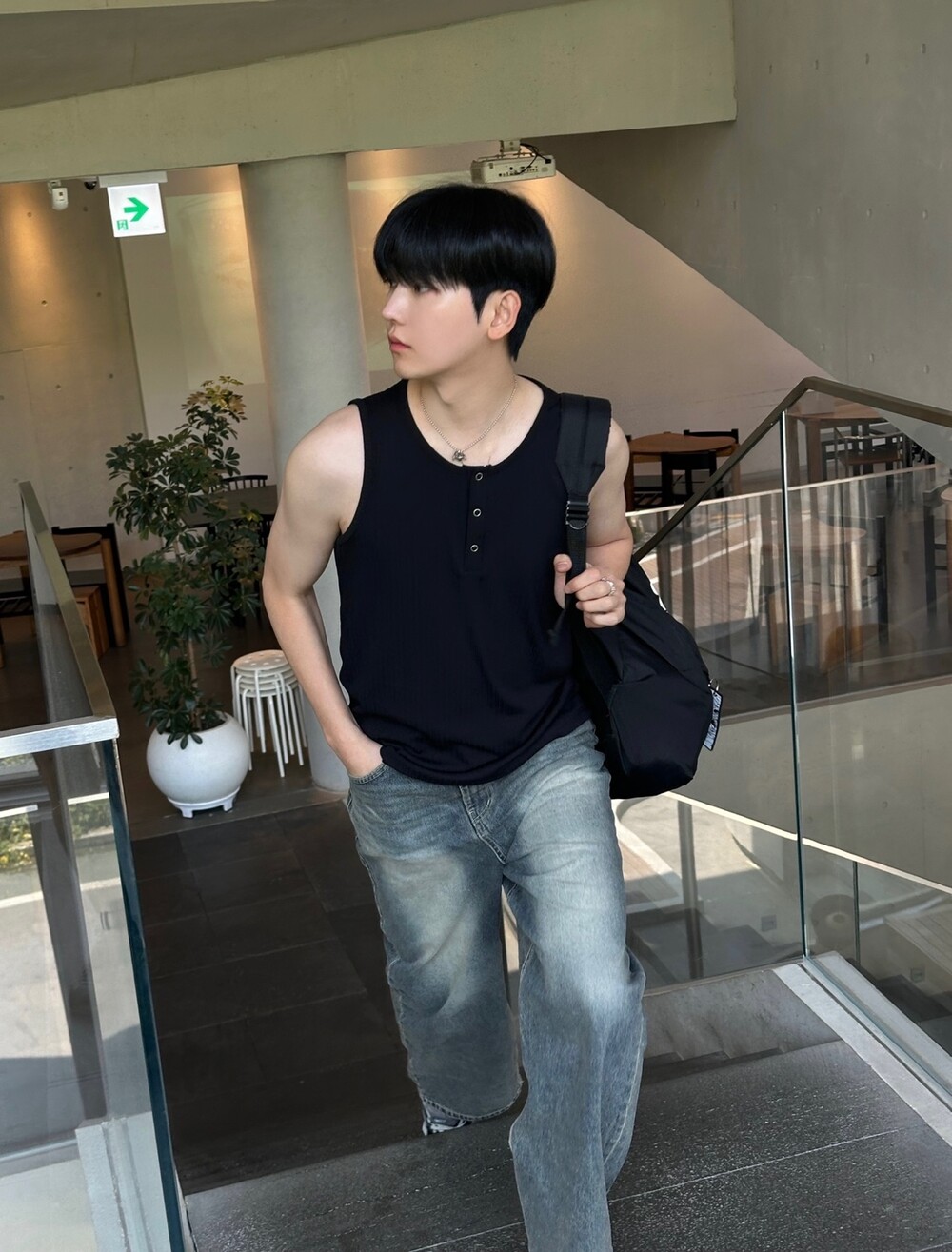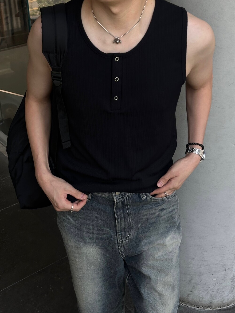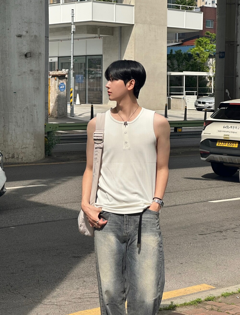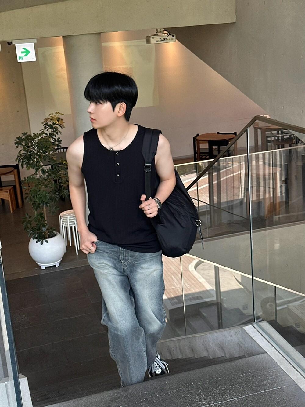 밋밋한 나시에 헨리넥 3버튼 디테일로 멋스러움 추가 :)