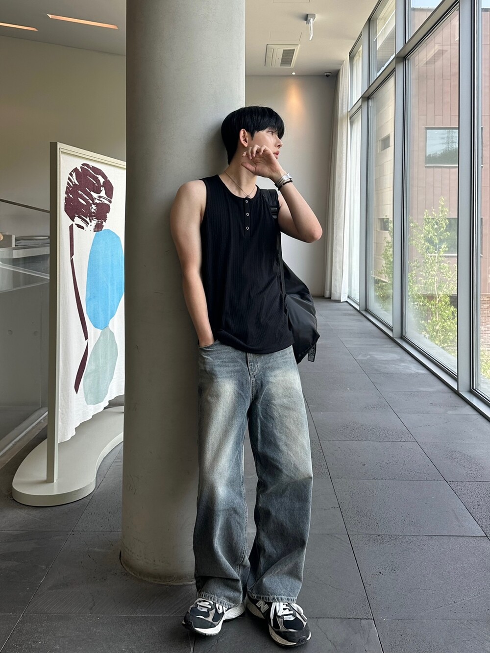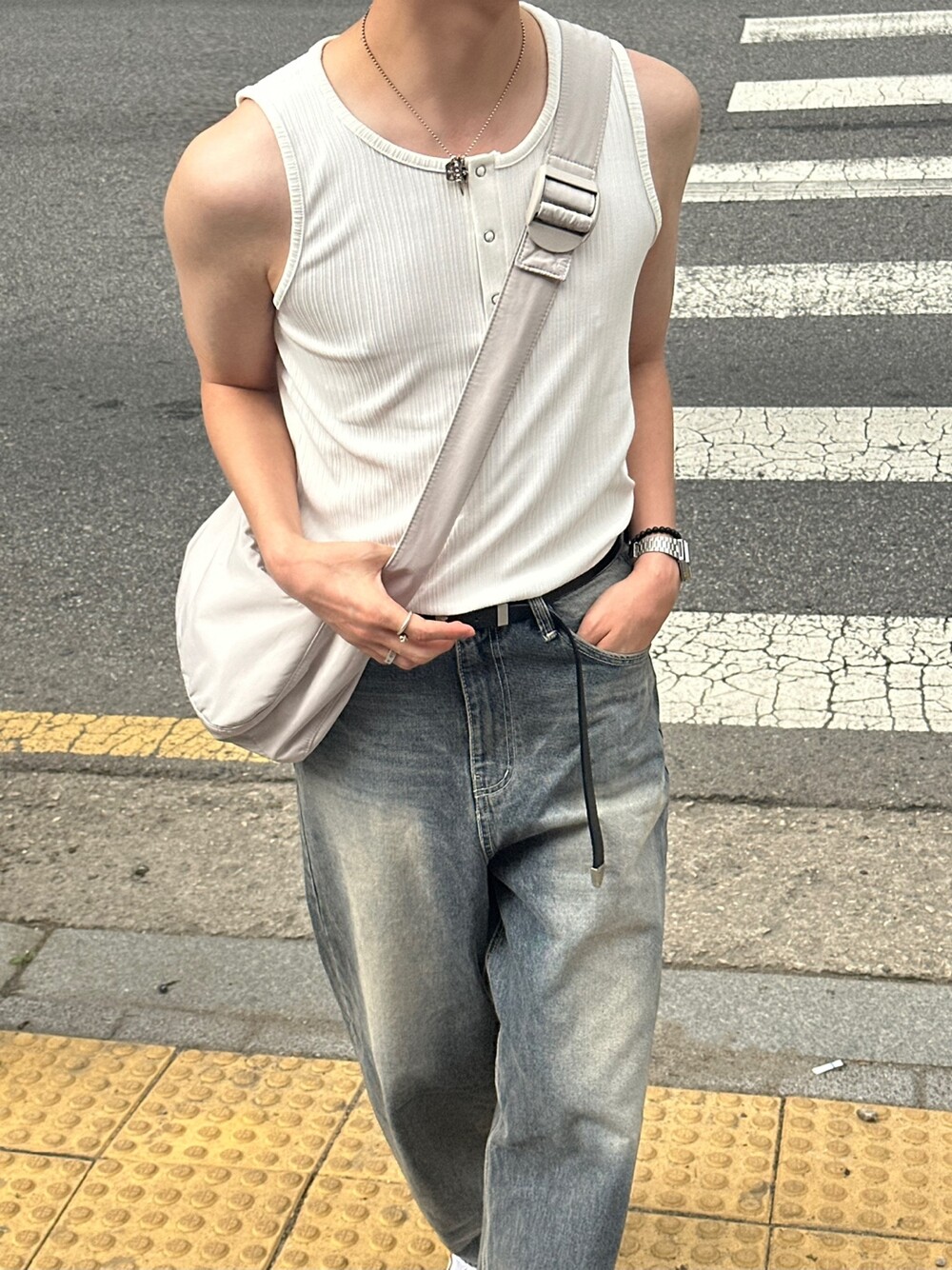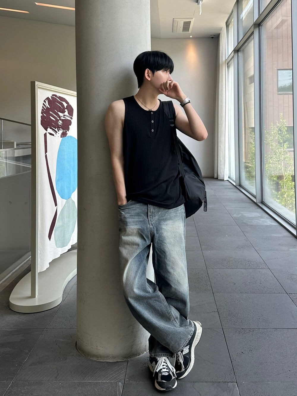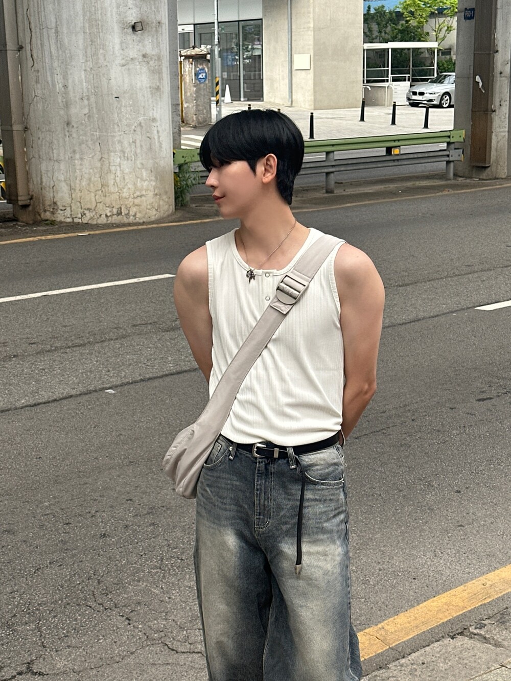 밋밋한 나시에 헨리넥 3버튼 디테일로 멋스러움 추가 :)