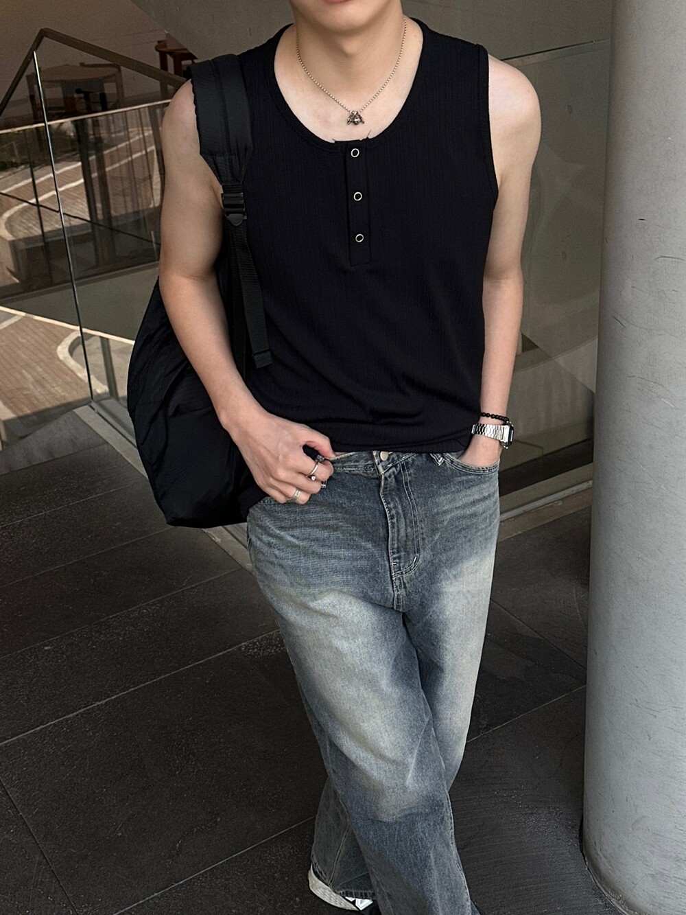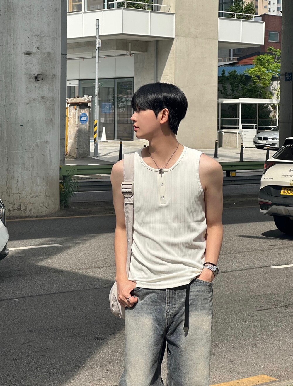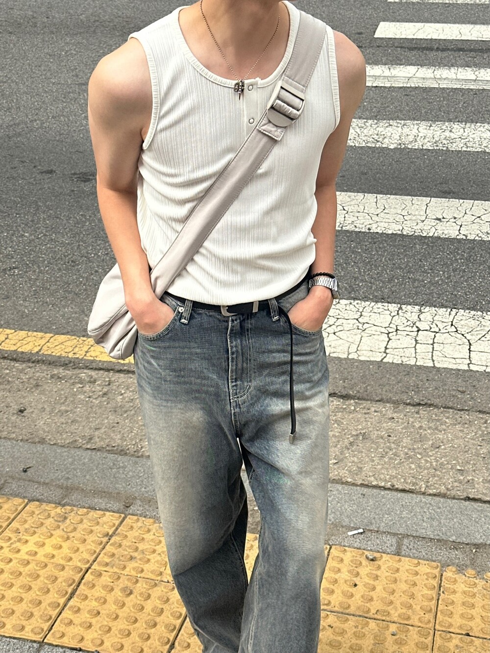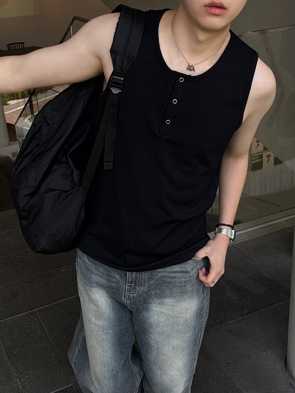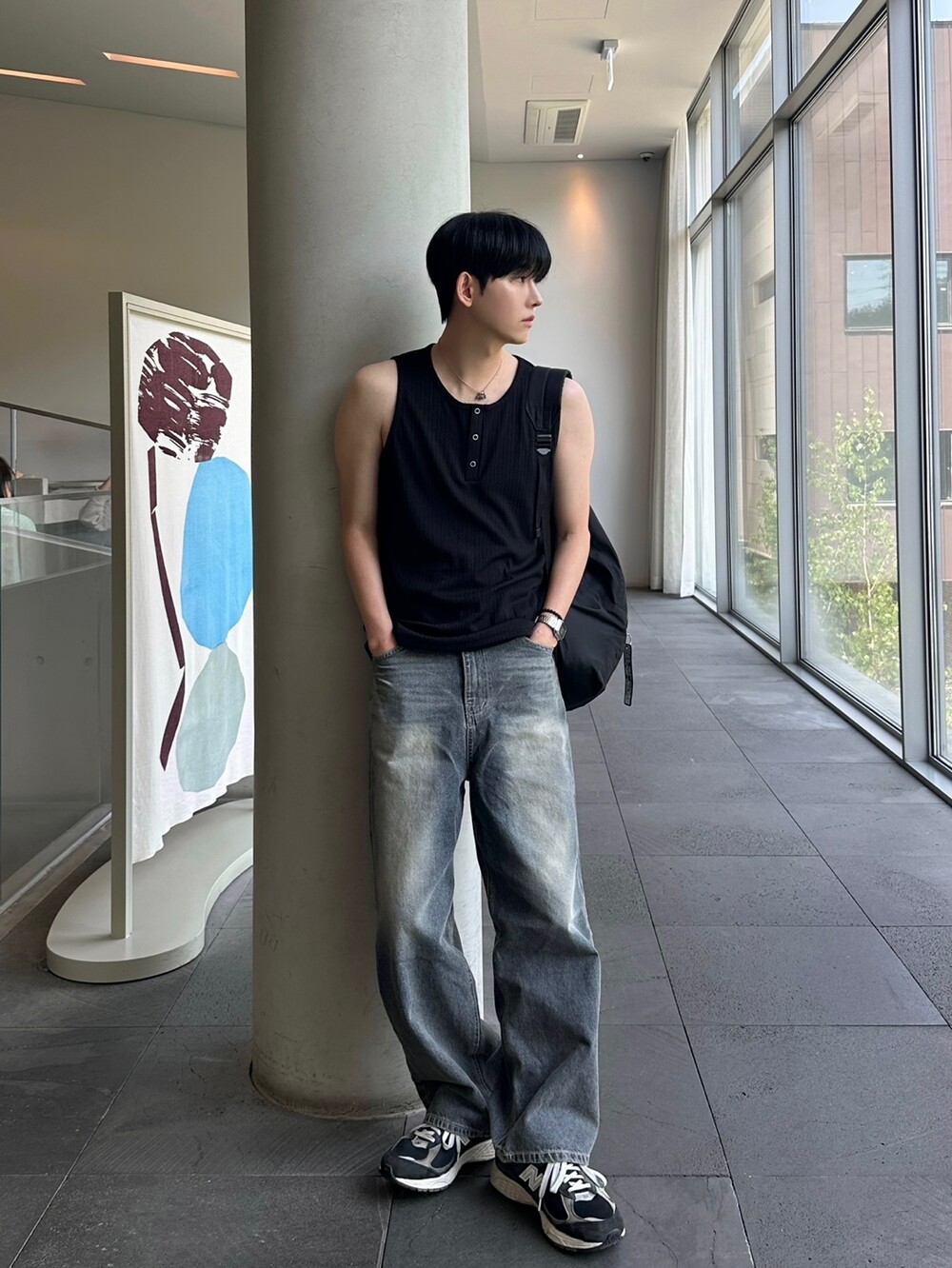 밋밋한 나시에 헨리넥 3버튼 디테일로 멋스러움 추가 :)