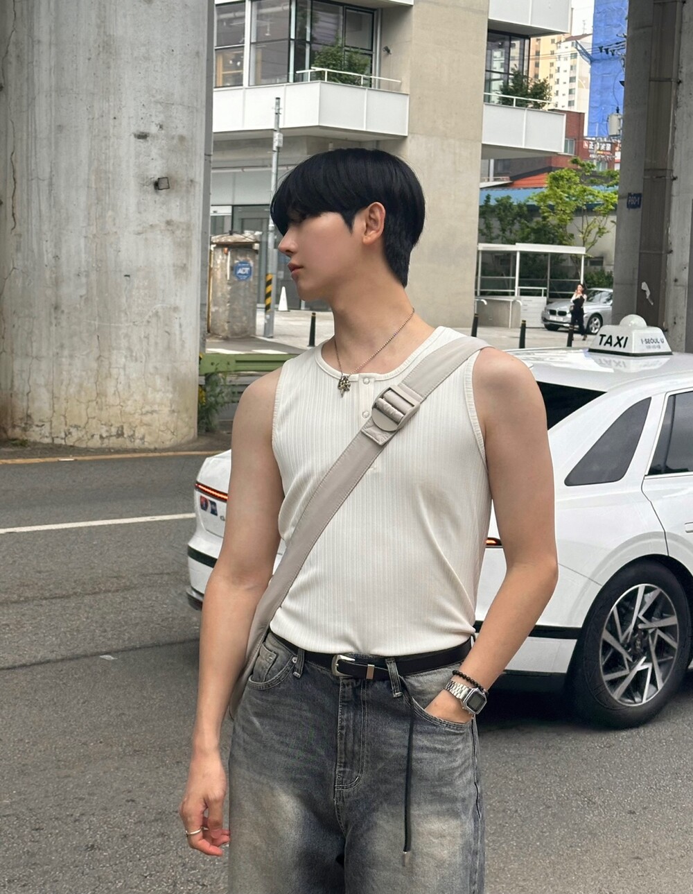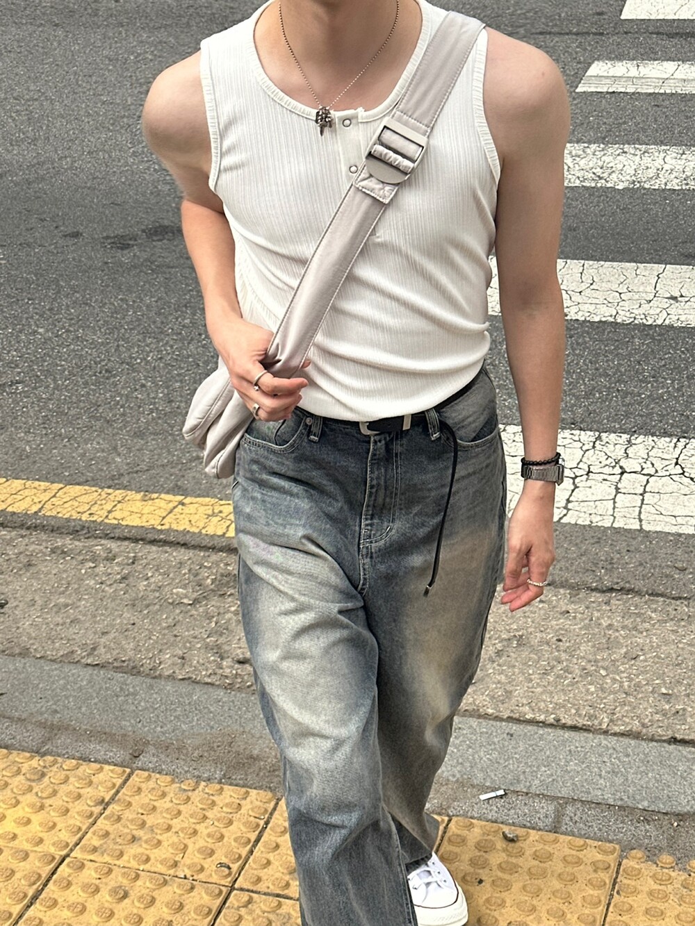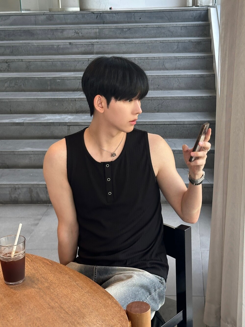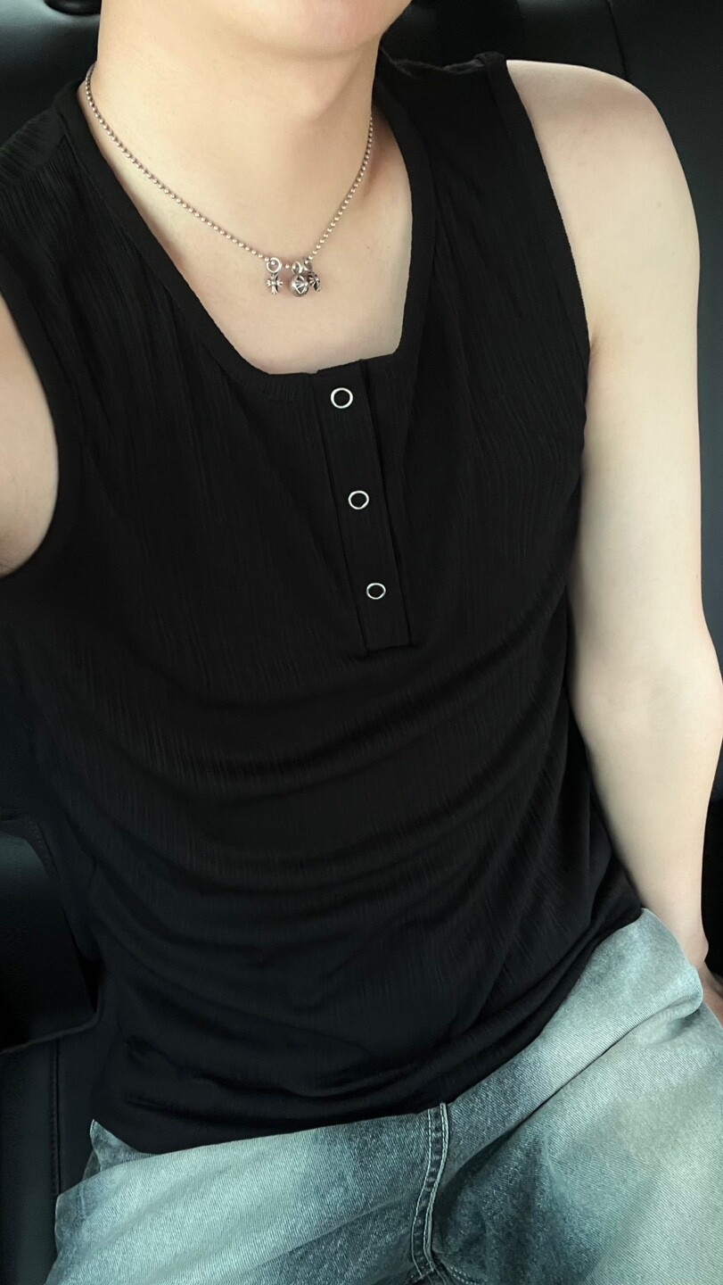 밋밋한 나시에 헨리넥 3버튼 디테일로 멋스러움 추가 :)