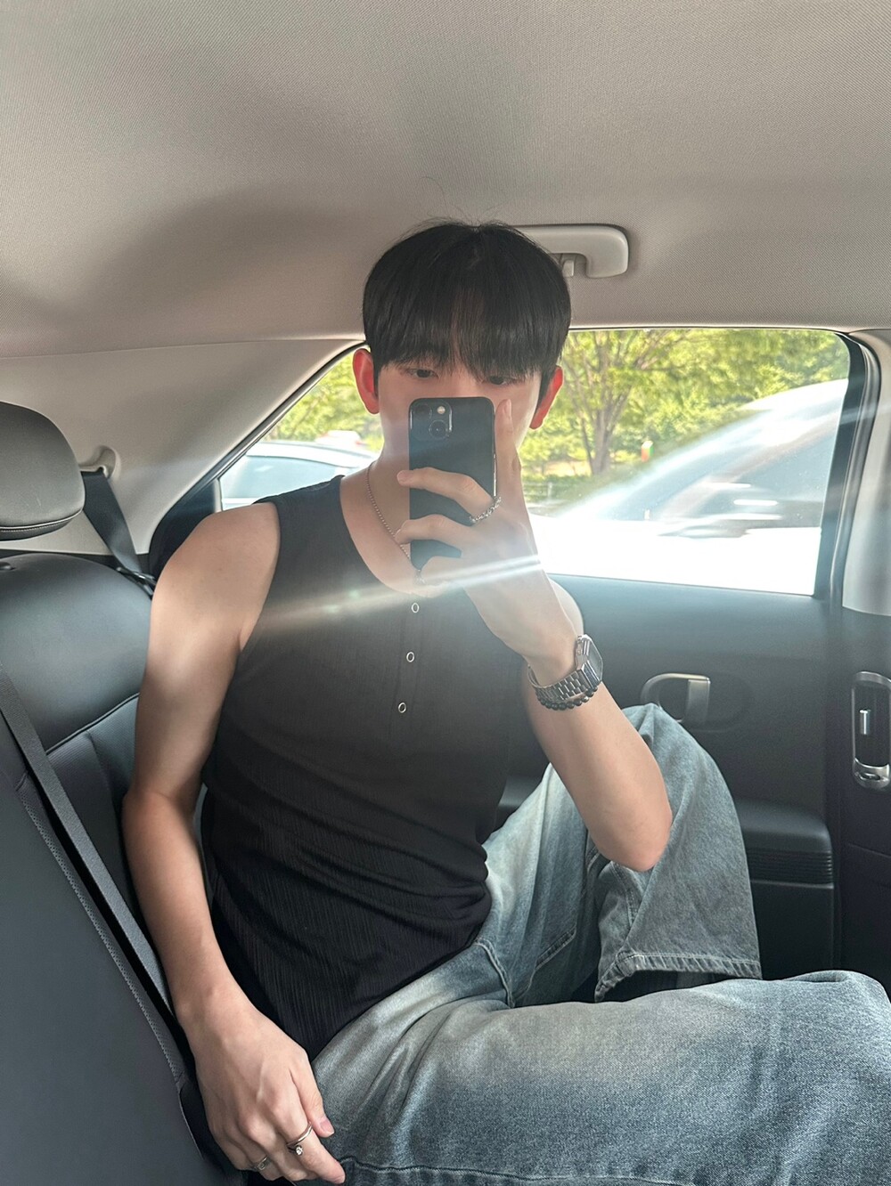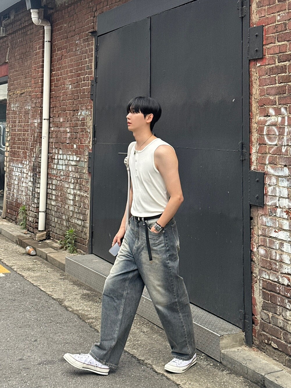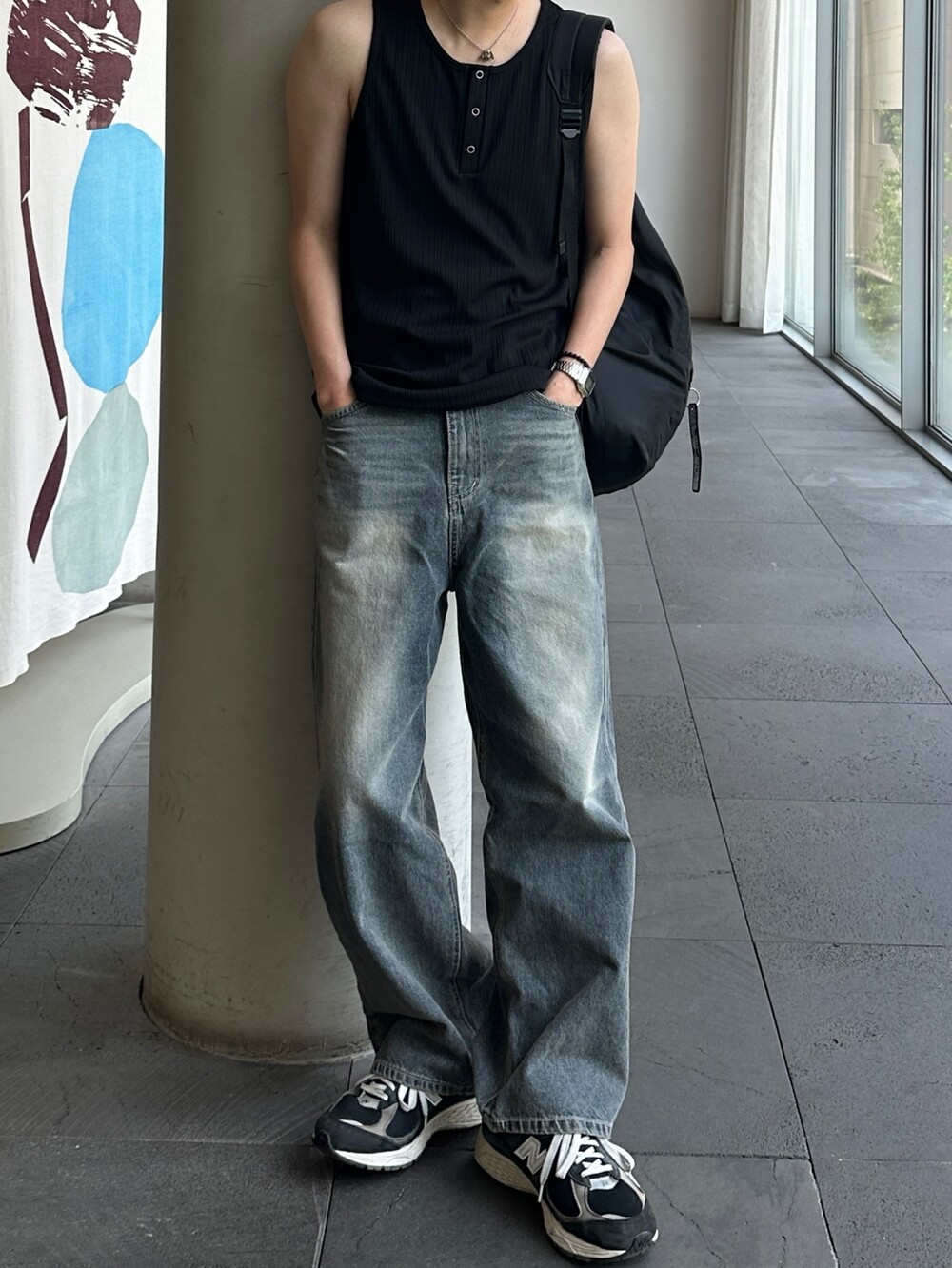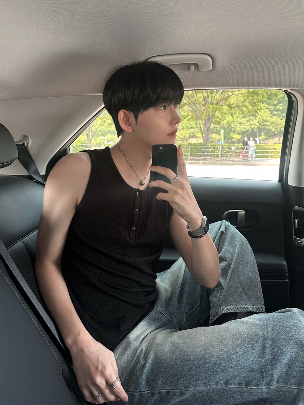 밋밋한 나시에 헨리넥 3버튼 디테일로 멋스러움 추가 :)